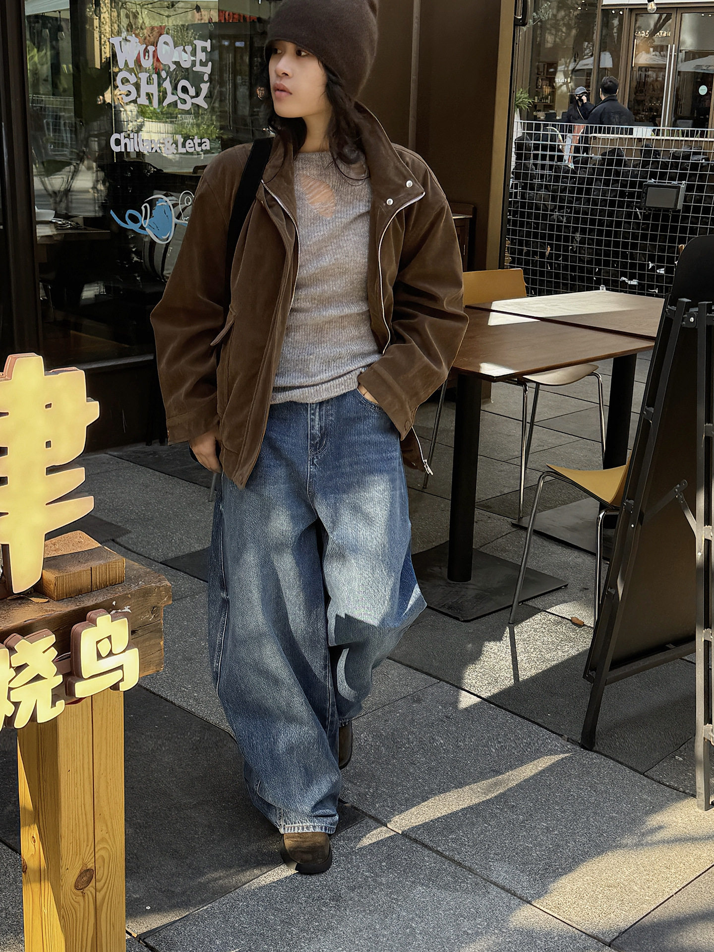 【トップス】春秋冬 Oversize レトロ 刺繍 ゆったり フード付き デニム パーカー【FCシリーズ】【15~20日発送】