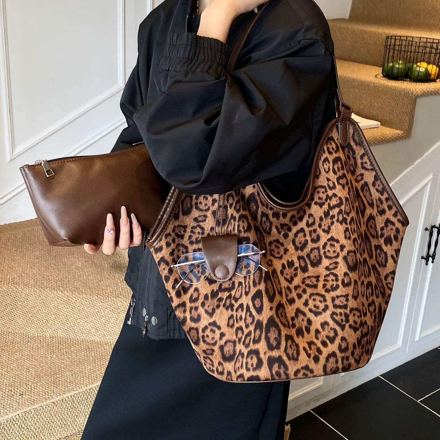 【グッズ】レオパードショルダー 秋冬 大容量 通勤 軽量 お洒落バッグ