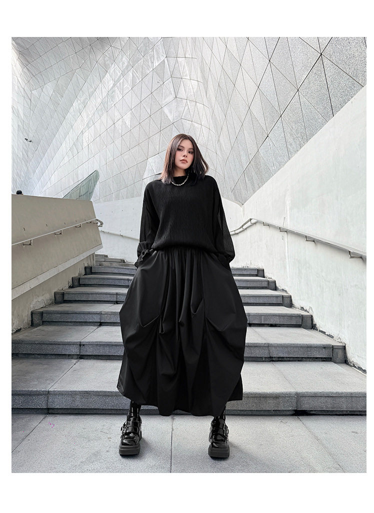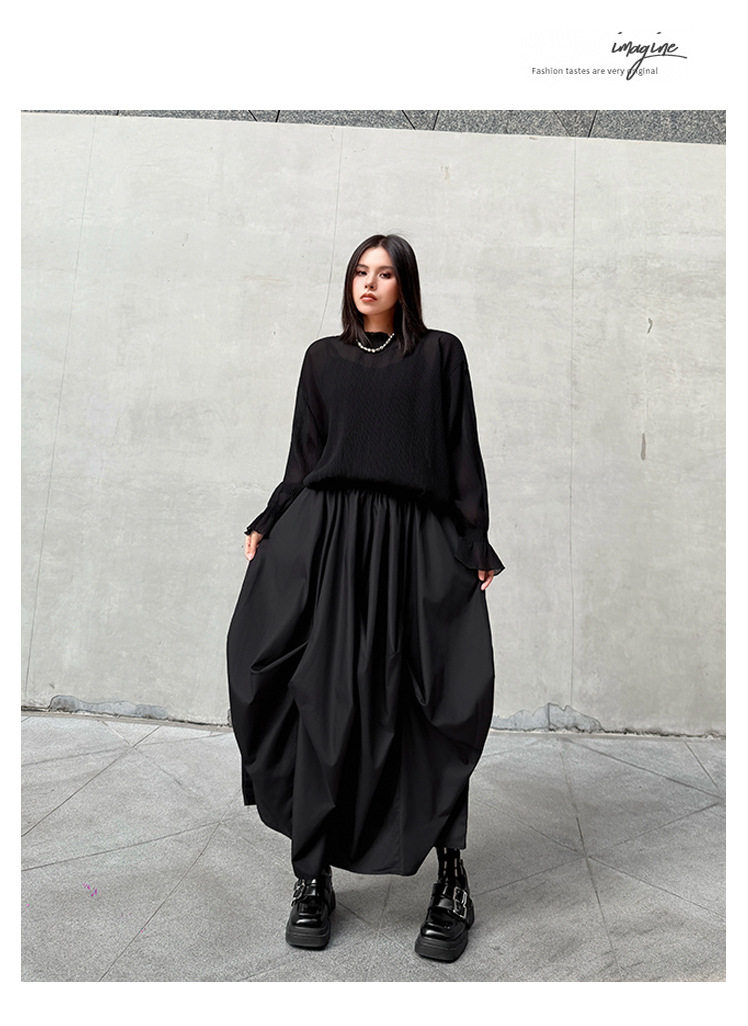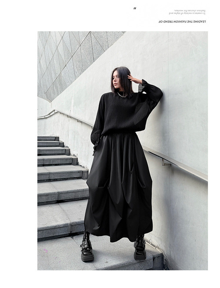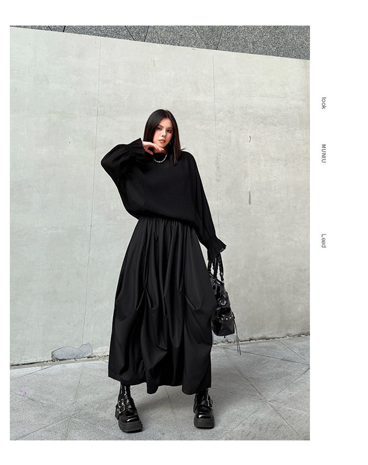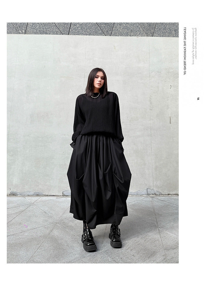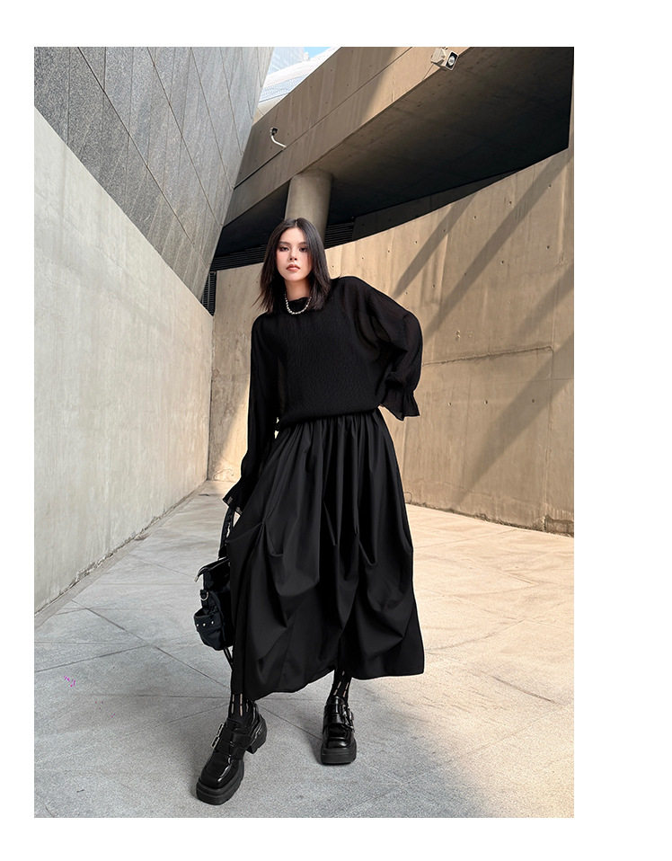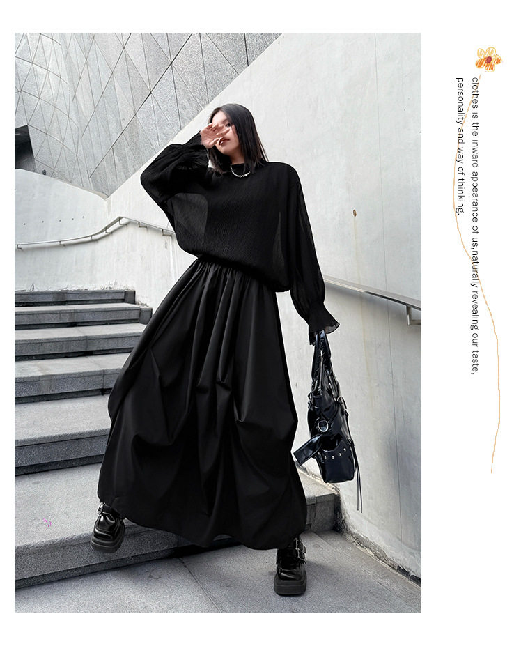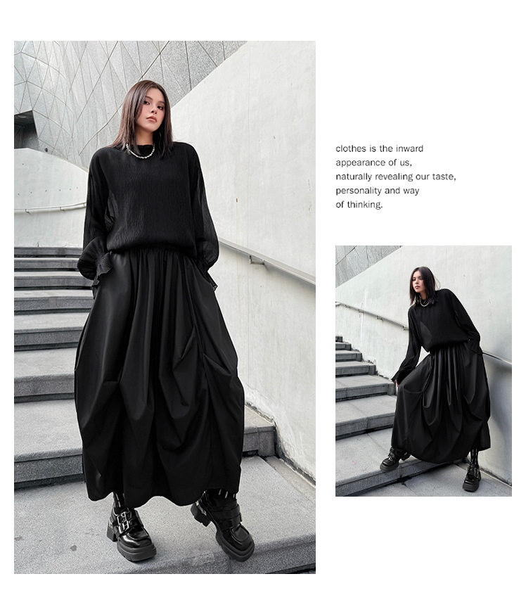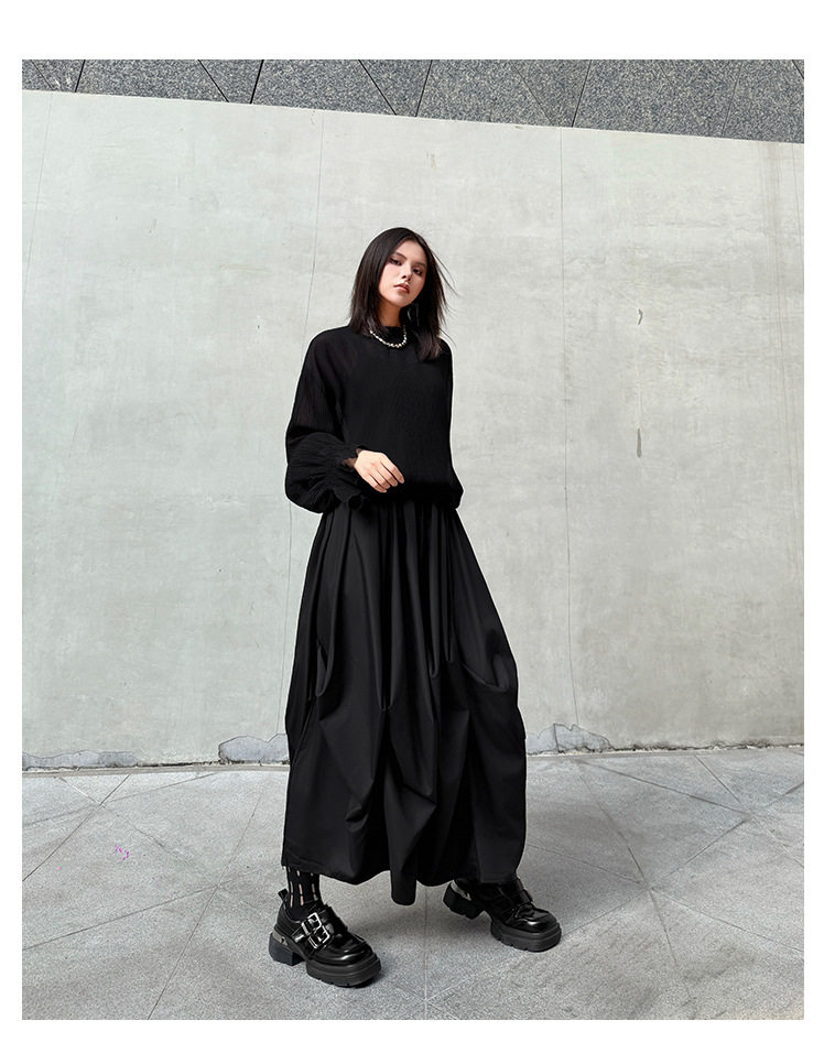 【商品名】【ボトムス】日系ダーク風 切替 プリーツ ハイウエスト スカート ゆったり 美脚 万能 ロングスカート【AHシリーズ】
