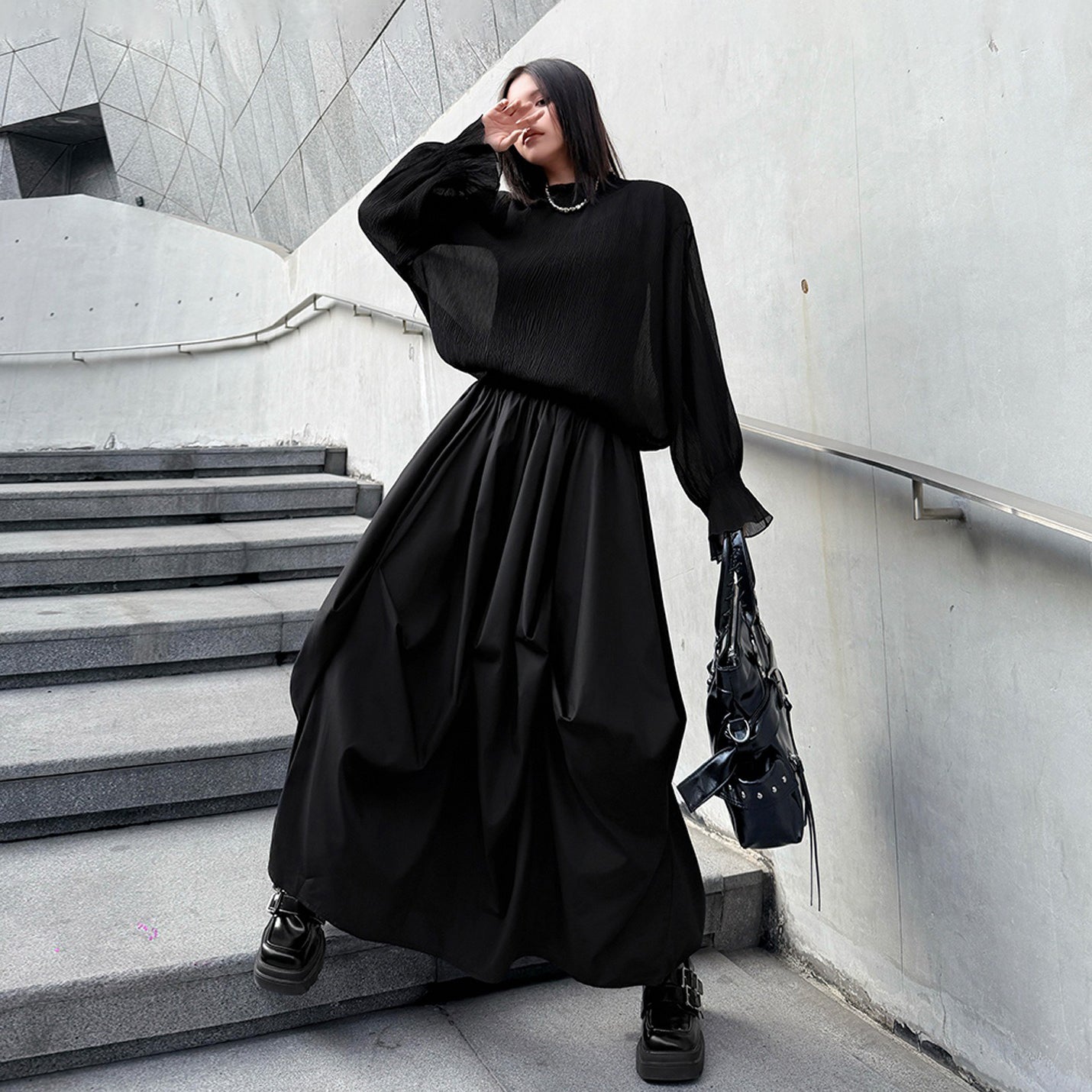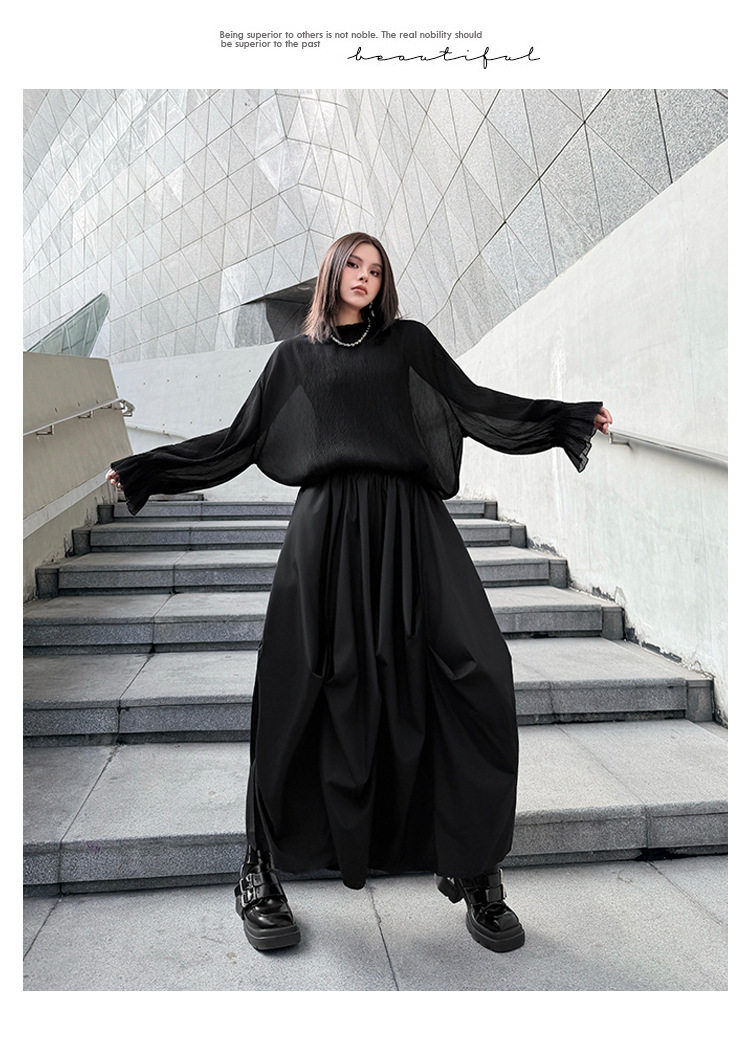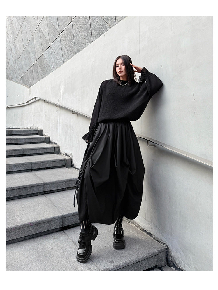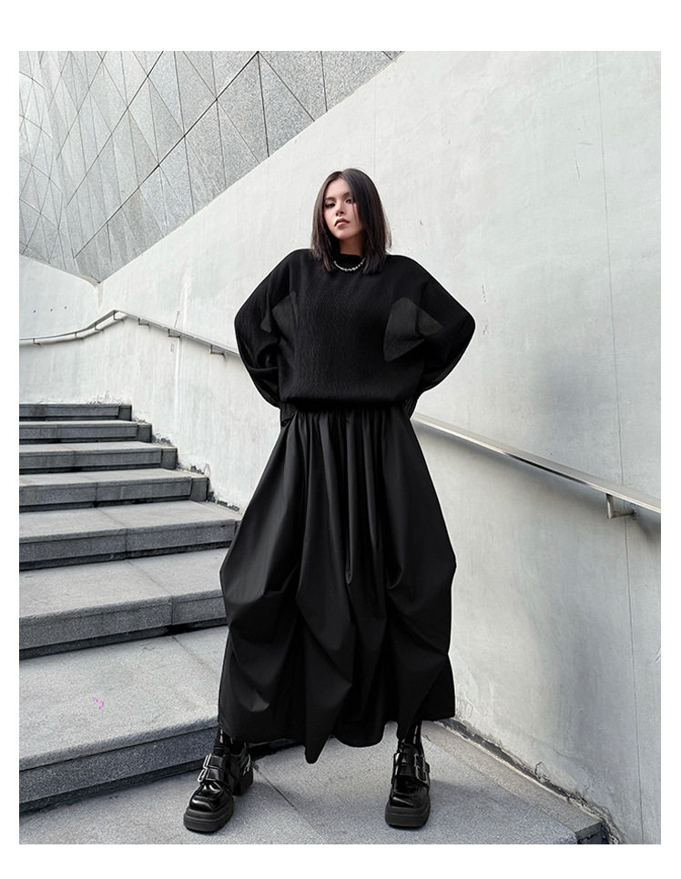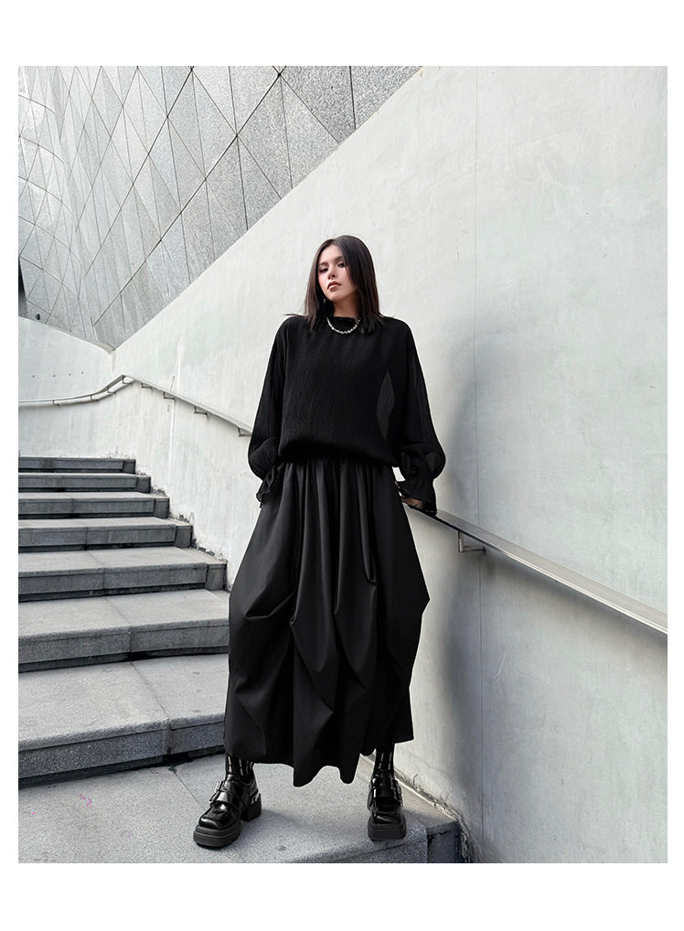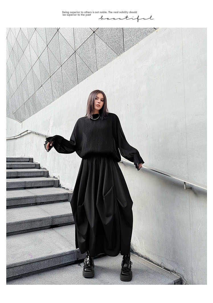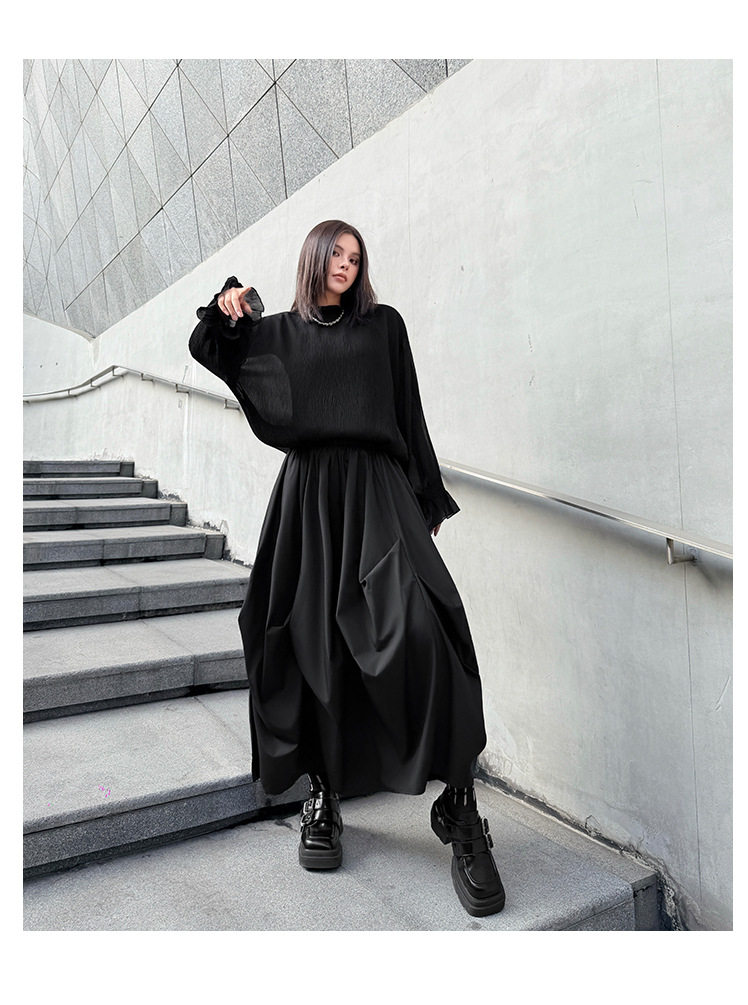 【商品名】【ボトムス】日系ダーク風 切替 プリーツ ハイウエスト スカート ゆったり 美脚 万能 ロングスカート【AHシリーズ】