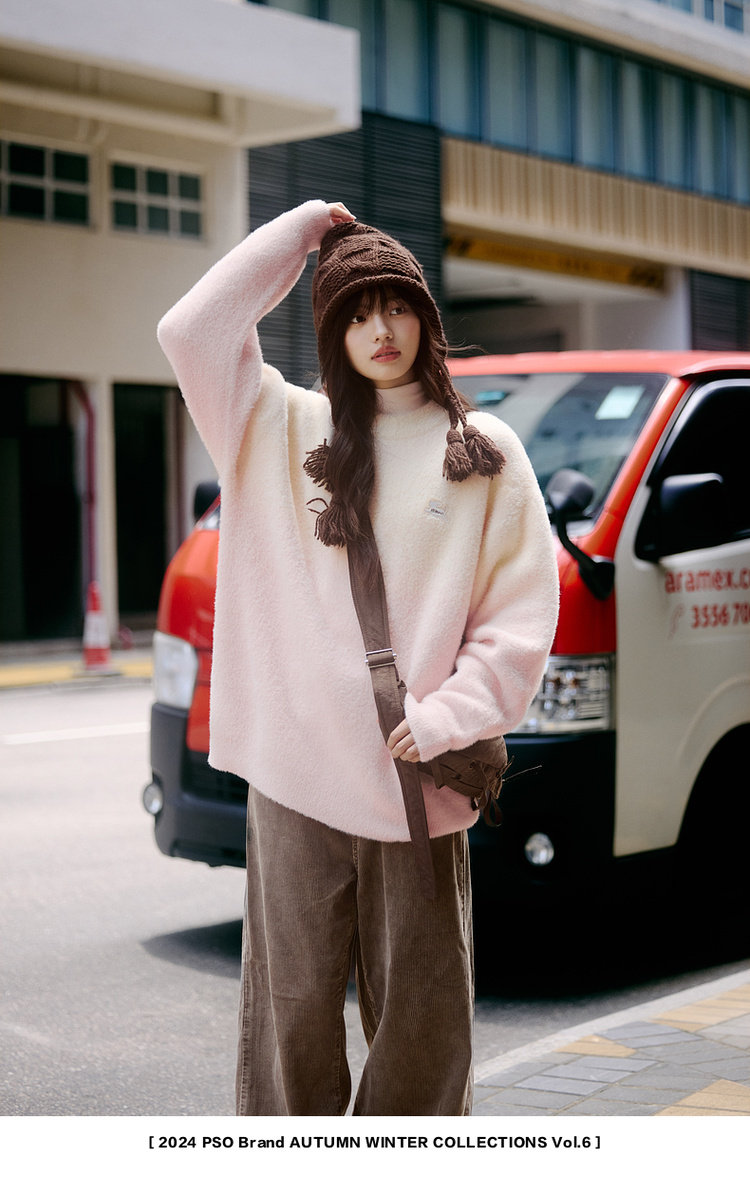 【トップス】ふわふわ カートゥーン柄 フード付きニットセーター レディース 新作 オーバーサイズ BF風 韓国風 ゆるニット【FCシリーズ】