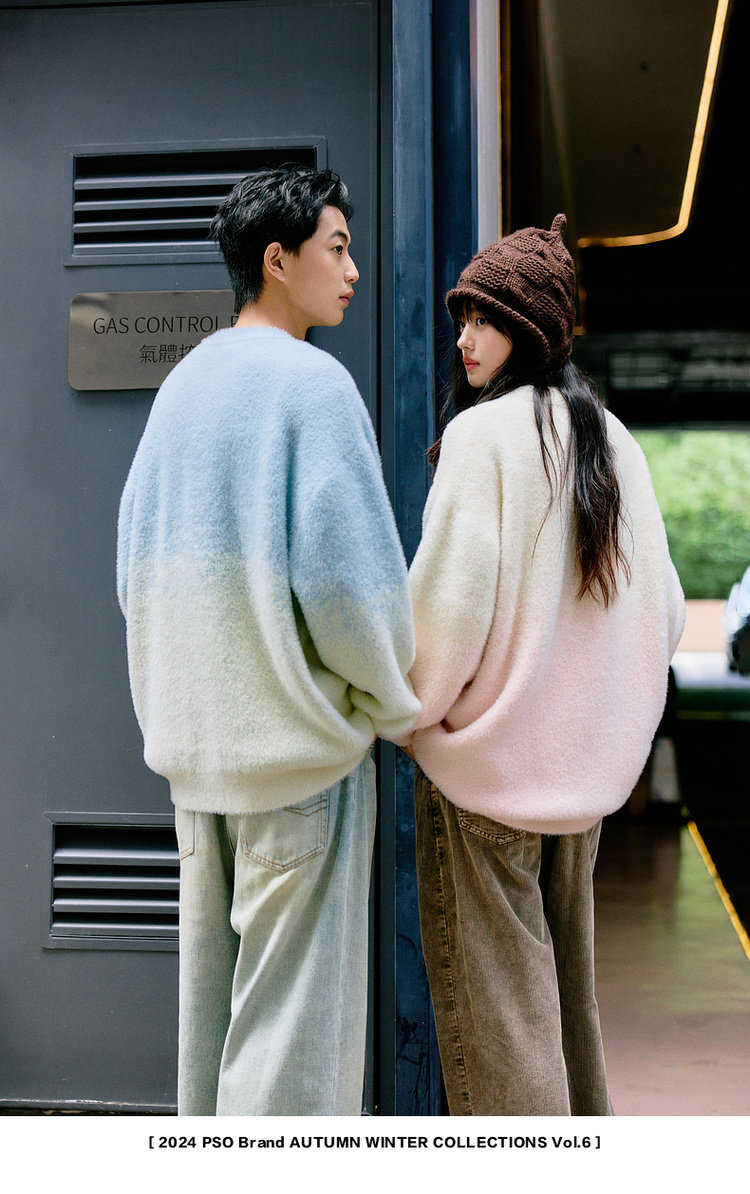 【トップス】男女兼用 可愛い子犬グラデーション クルーネック ニットセーター レディース オーバーサイズ カジュアル【FCシリーズ】