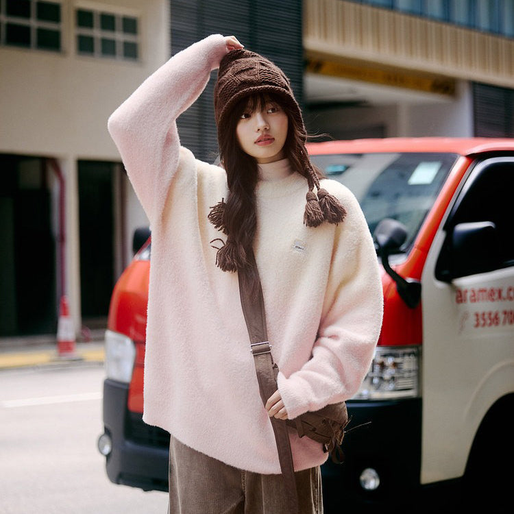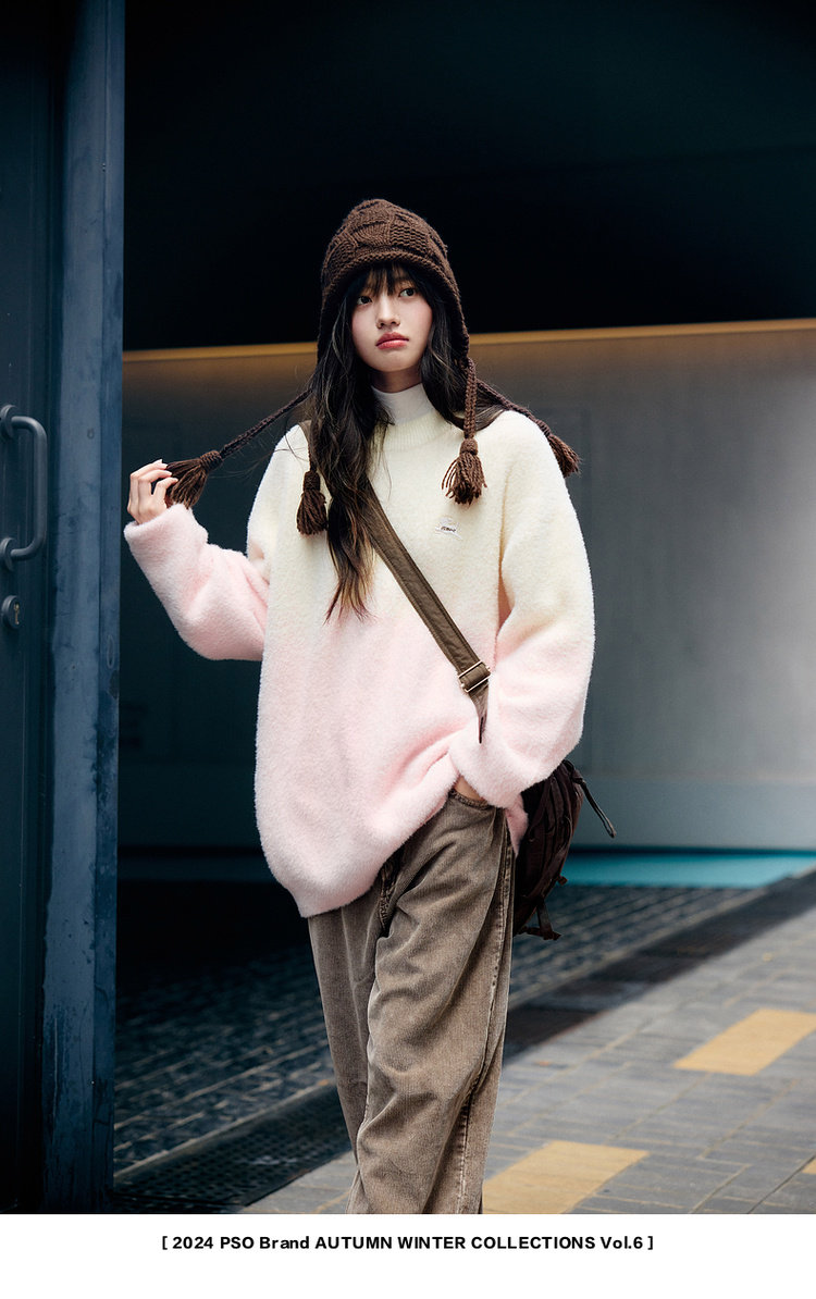 【トップス】ふわふわフェイクミンクグラデーション フード付きニットセーター レディース 秋冬 高級感 オーバーサイズ トップス【FCシリーズ】