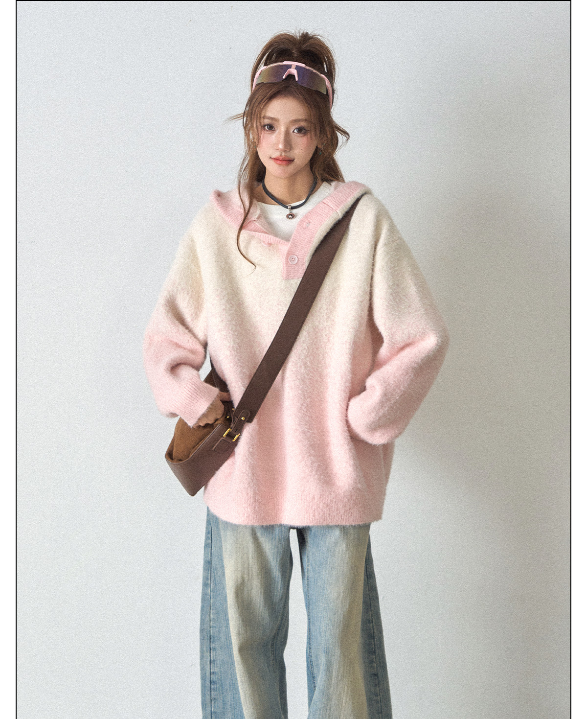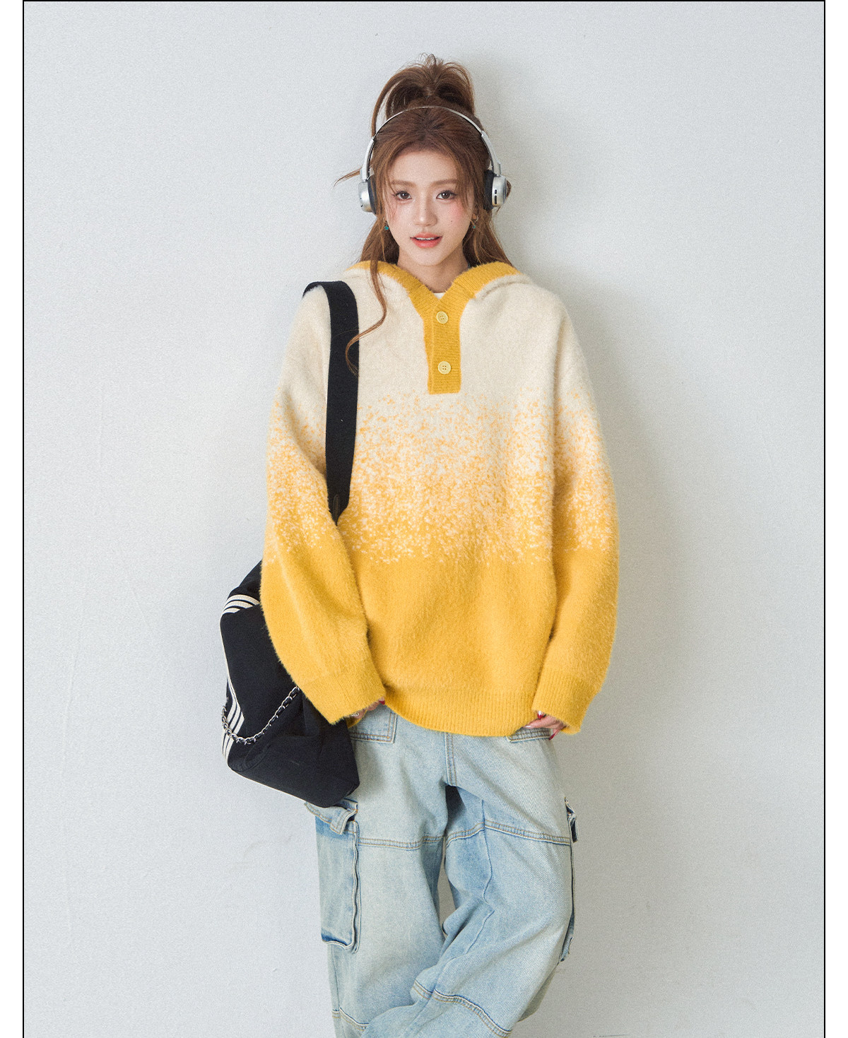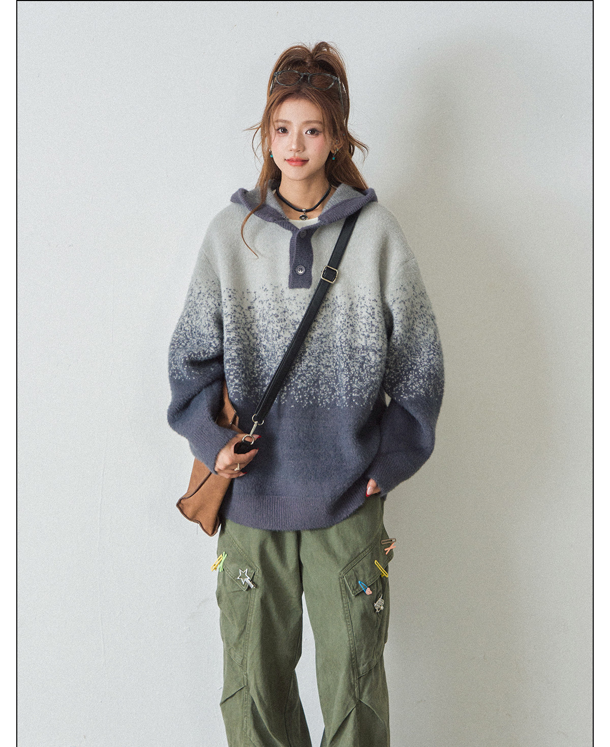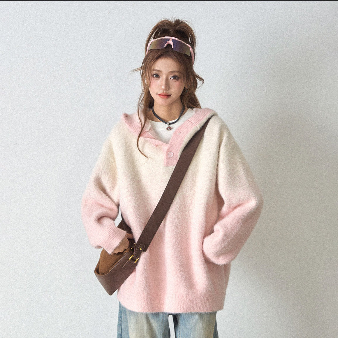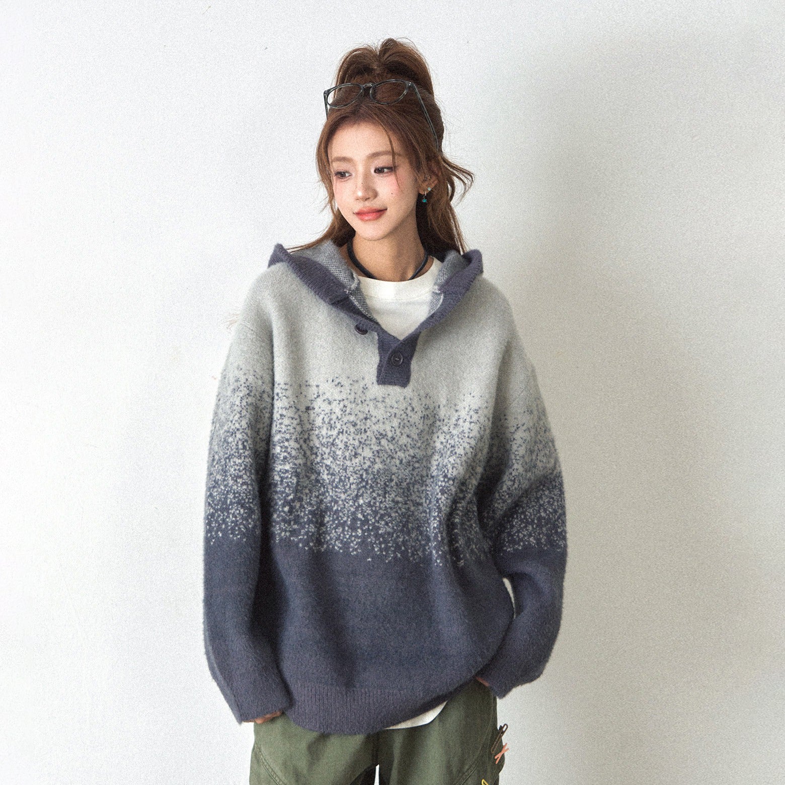 【商品名】【トップス】ふわふわフェイクミンクグラデーション フード付きニットセーター レディース 秋冬 高級感 オーバーサイズ トップス【FCシリーズ】