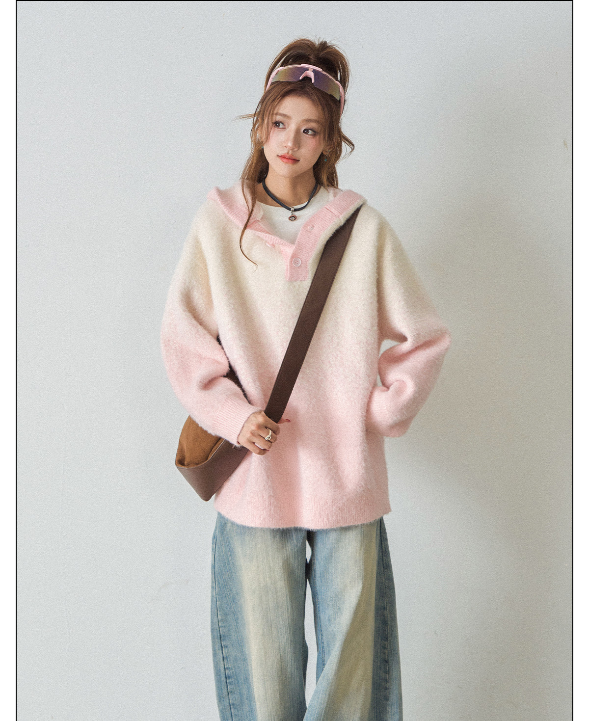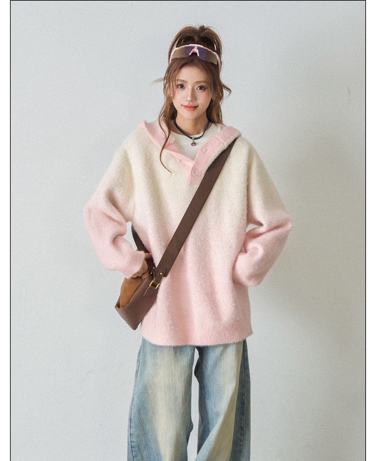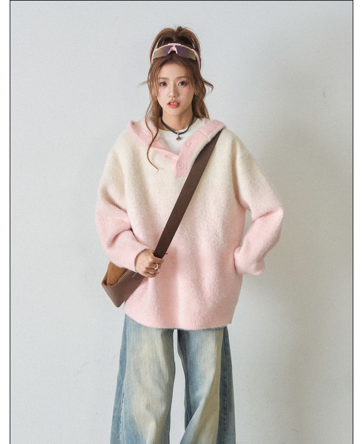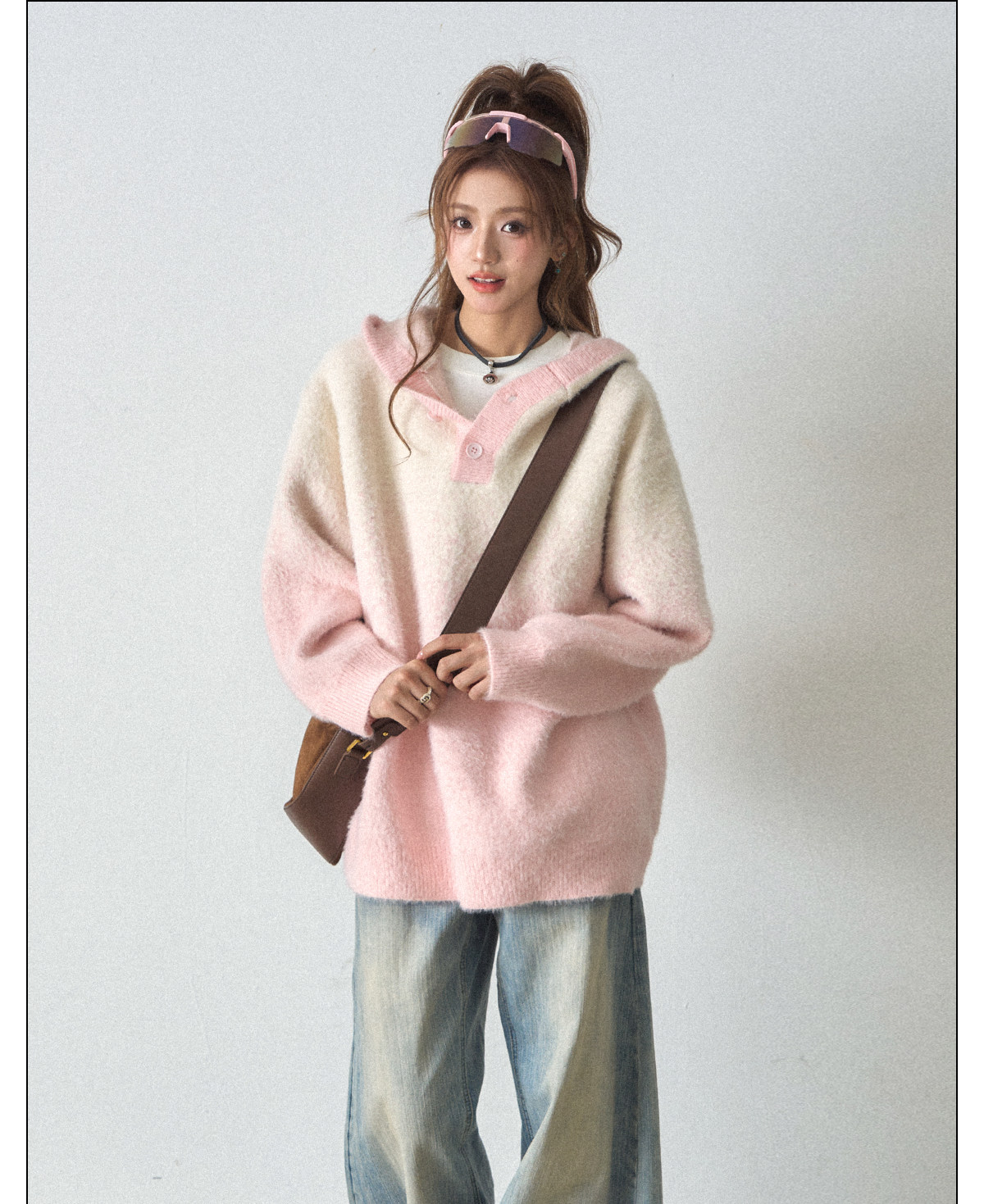 【商品名】【トップス】ふわふわフェイクミンクグラデーション フード付きニットセーター レディース 秋冬 高級感 オーバーサイズ トップス【FCシリーズ】