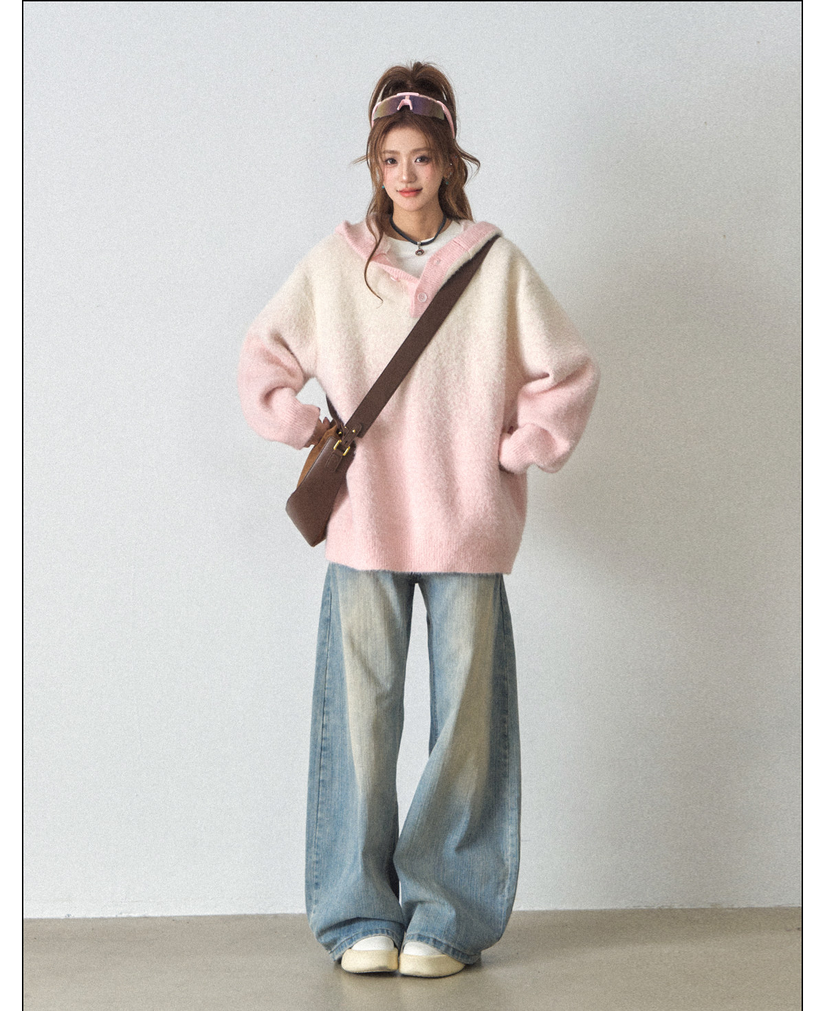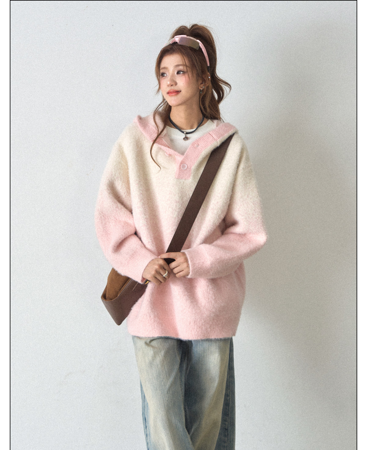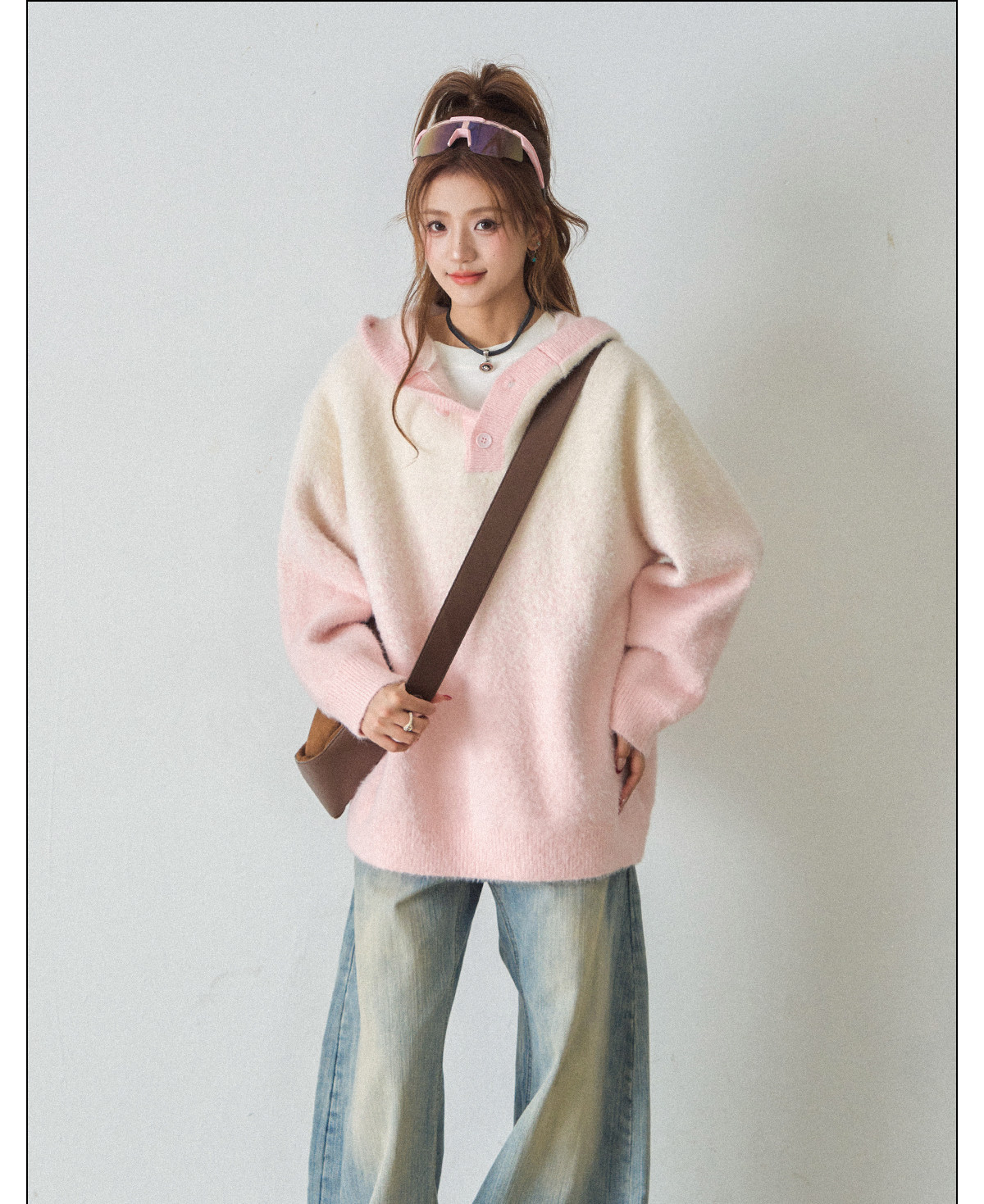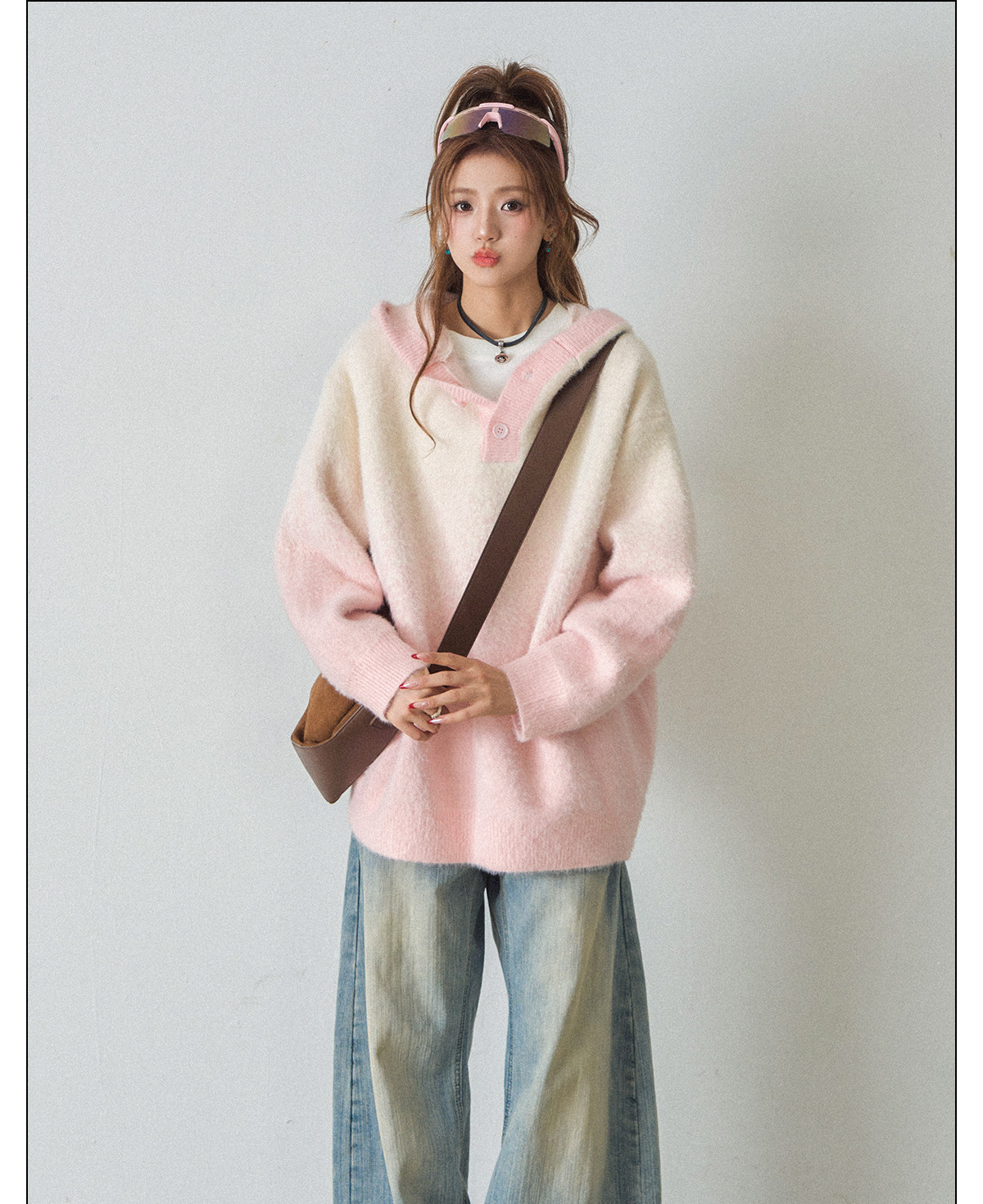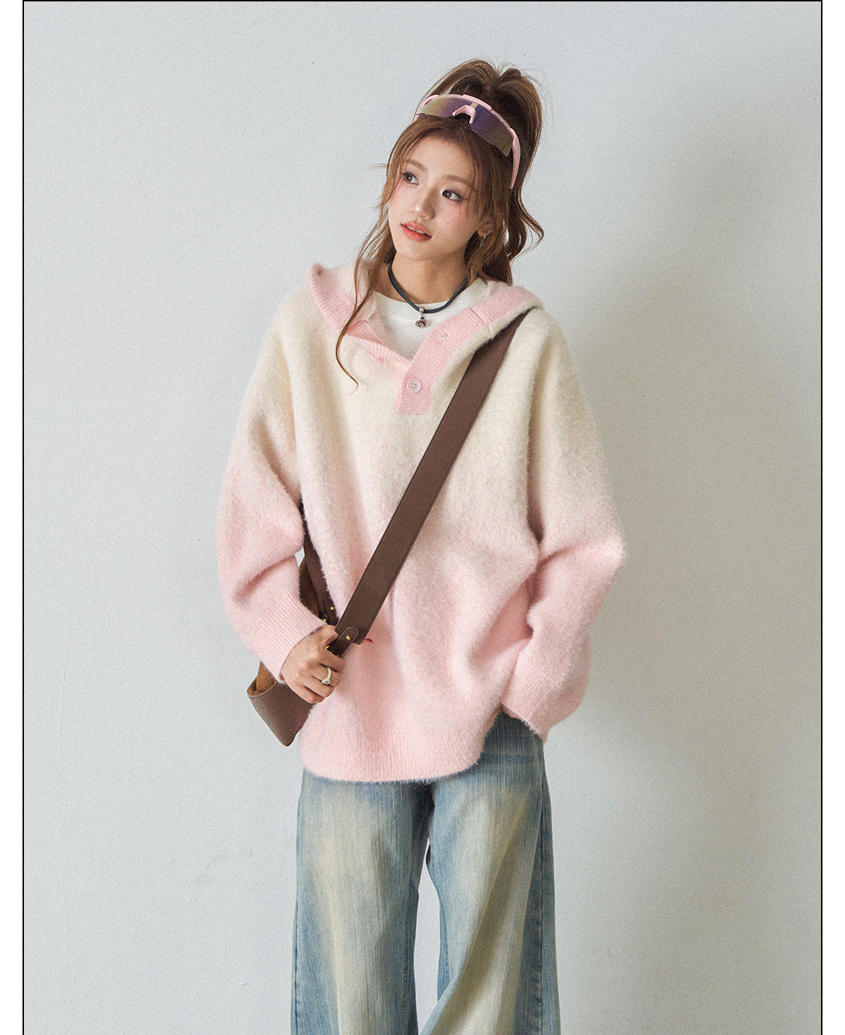 【商品名】【トップス】ふわふわフェイクミンクグラデーション フード付きニットセーター レディース 秋冬 高級感 オーバーサイズ トップス【FCシリーズ】