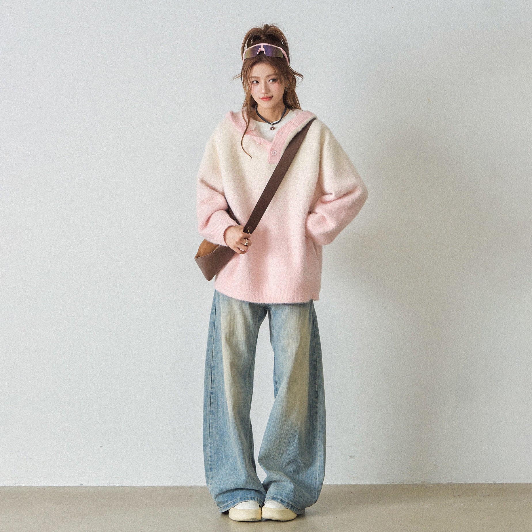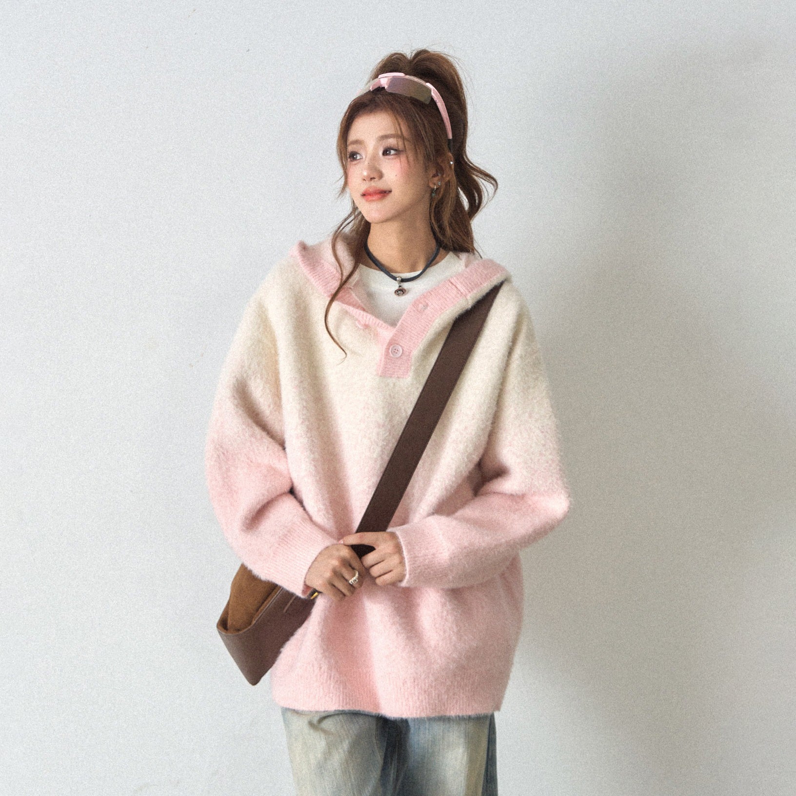 【トップス】ふわふわフェイクミンクグラデーション フード付きニットセーター レディース 秋冬 高級感 オーバーサイズ トップス【FCシリーズ】