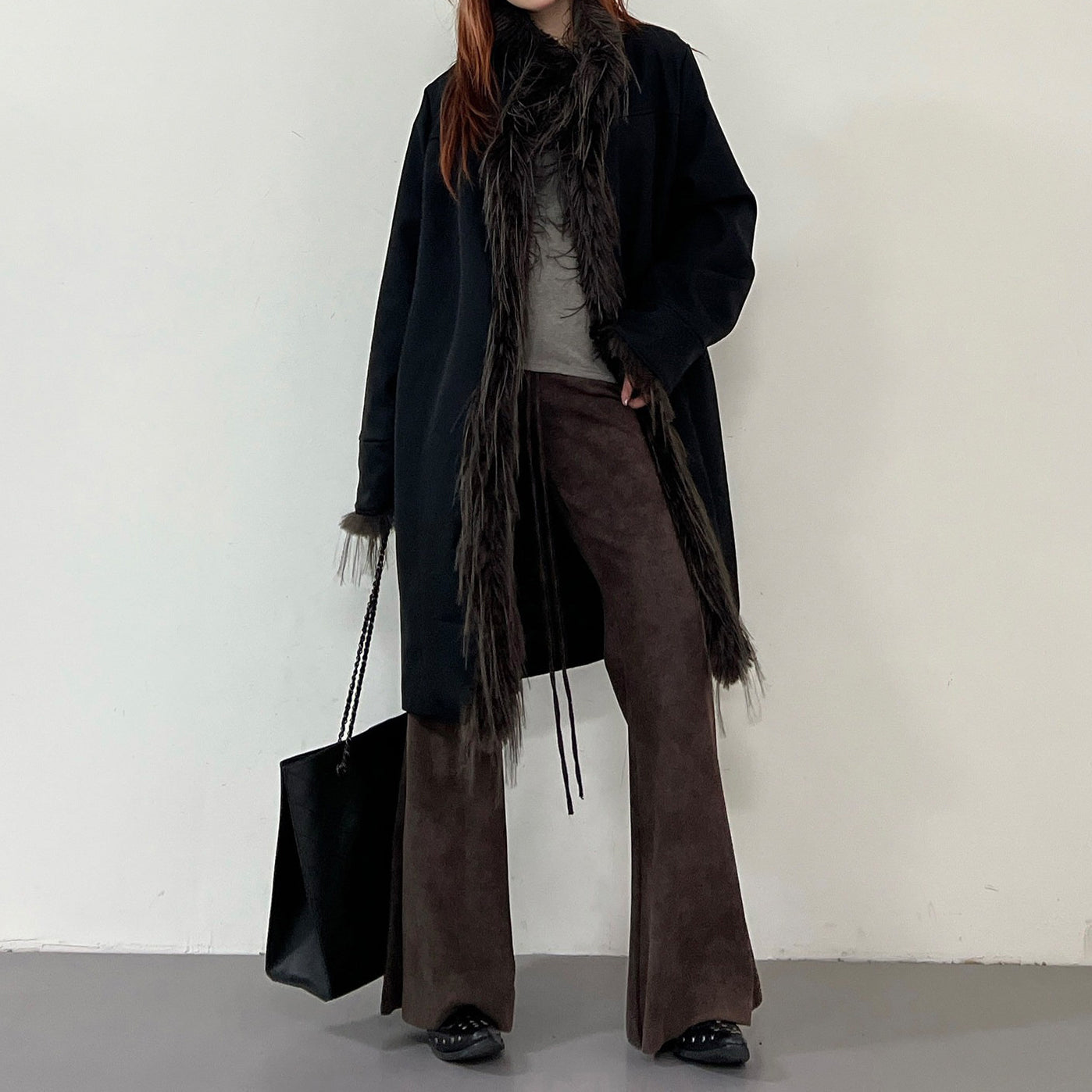 【アウター】新作 デザイン感 細見え ミディアム丈 綿入れコート フリンジ パーカー中綿ジャケット【FCシリーズ】【15~20日内発送】