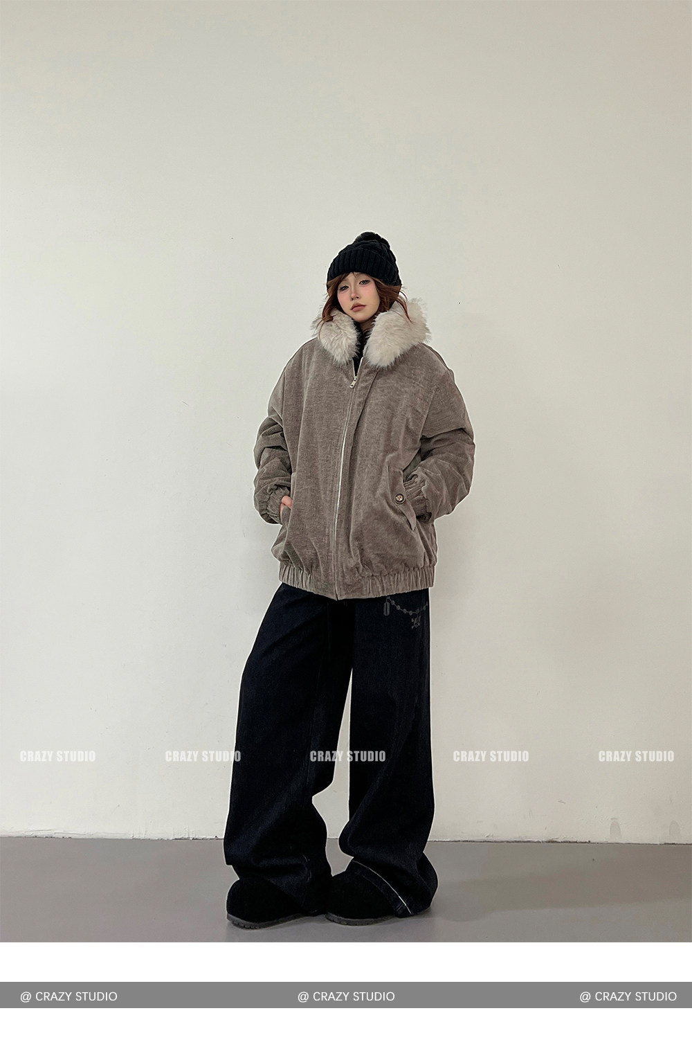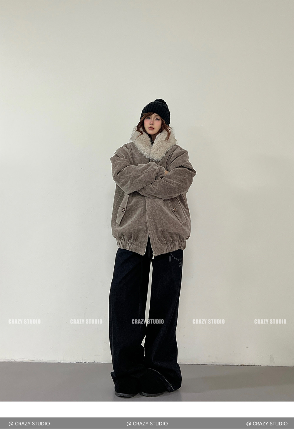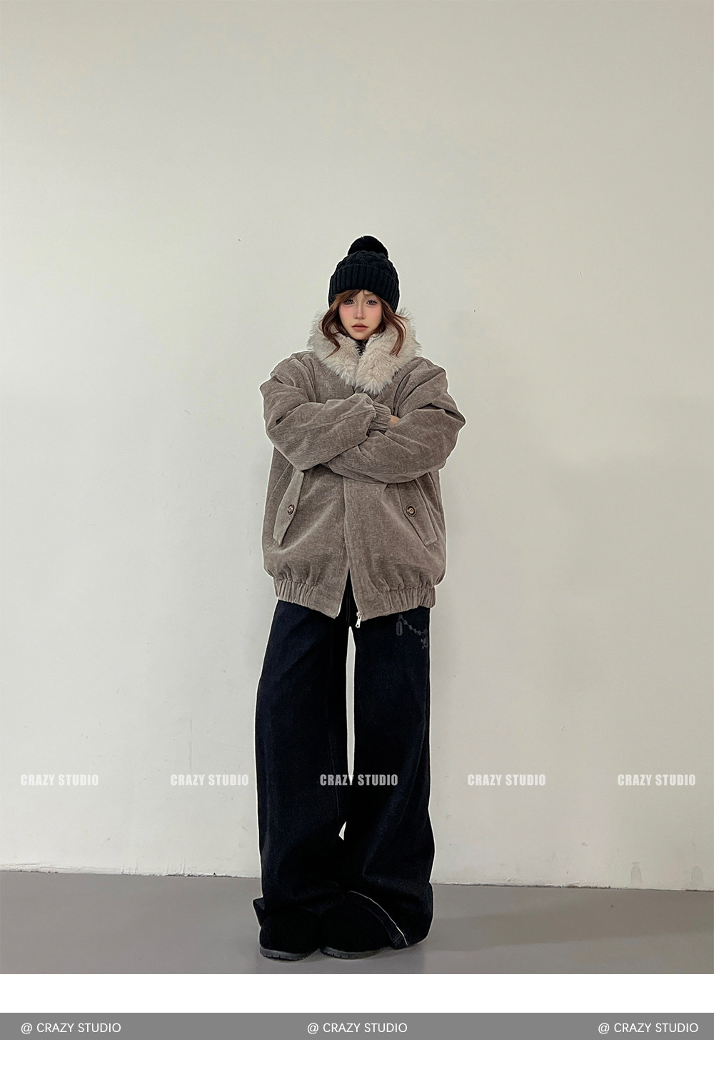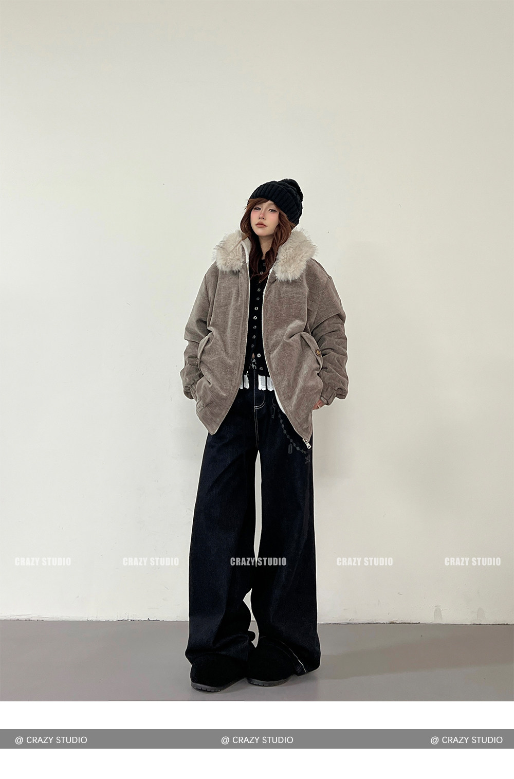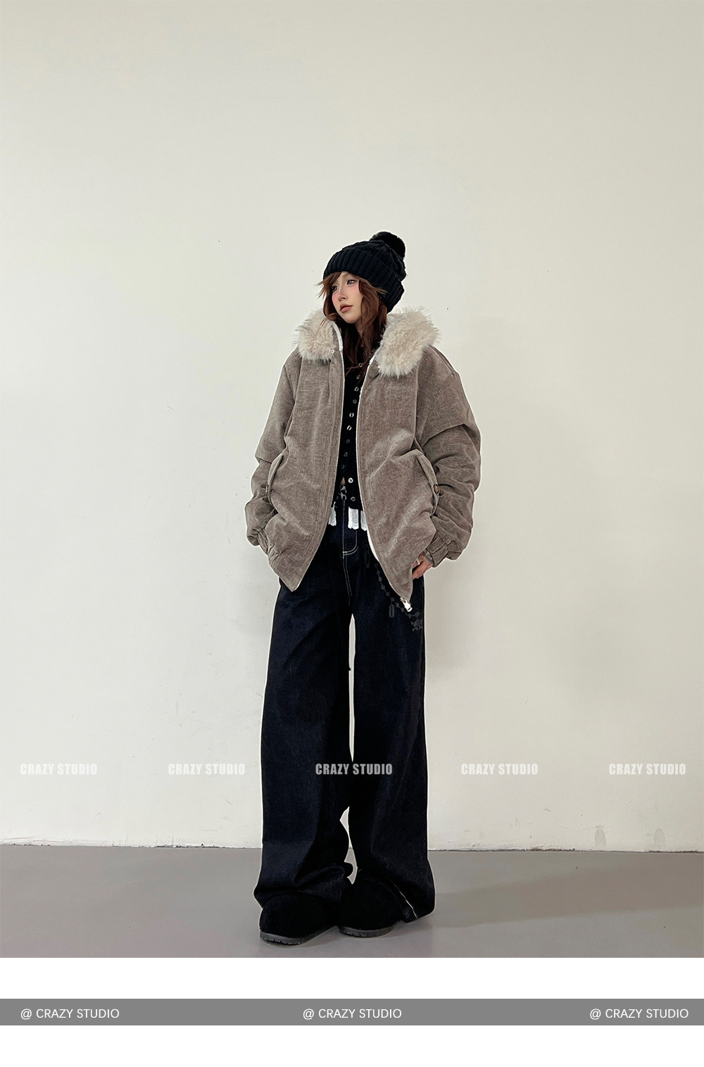 【商品名】【アウター】ヴィンテージ フード 中綿ジャケット レディース 秋冬 裏起毛 保温 オーバーサイズ ジップアップ【FCシリーズ】【20~25日内発送】