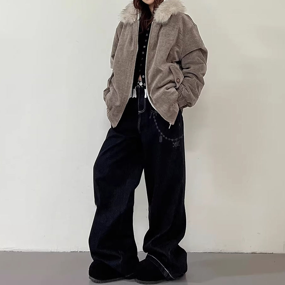 🔥冬の必須アウター🔥【アウター】秋冬 アメリカン カップル服 ルース レトロ 刺繍 フード付き コットン ジャケット【FCシリーズ】