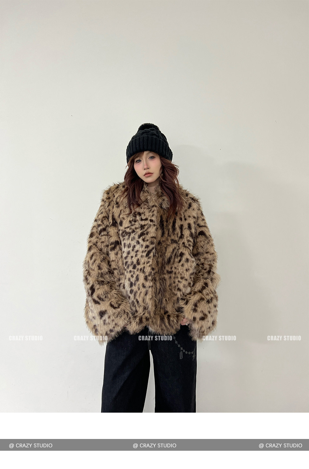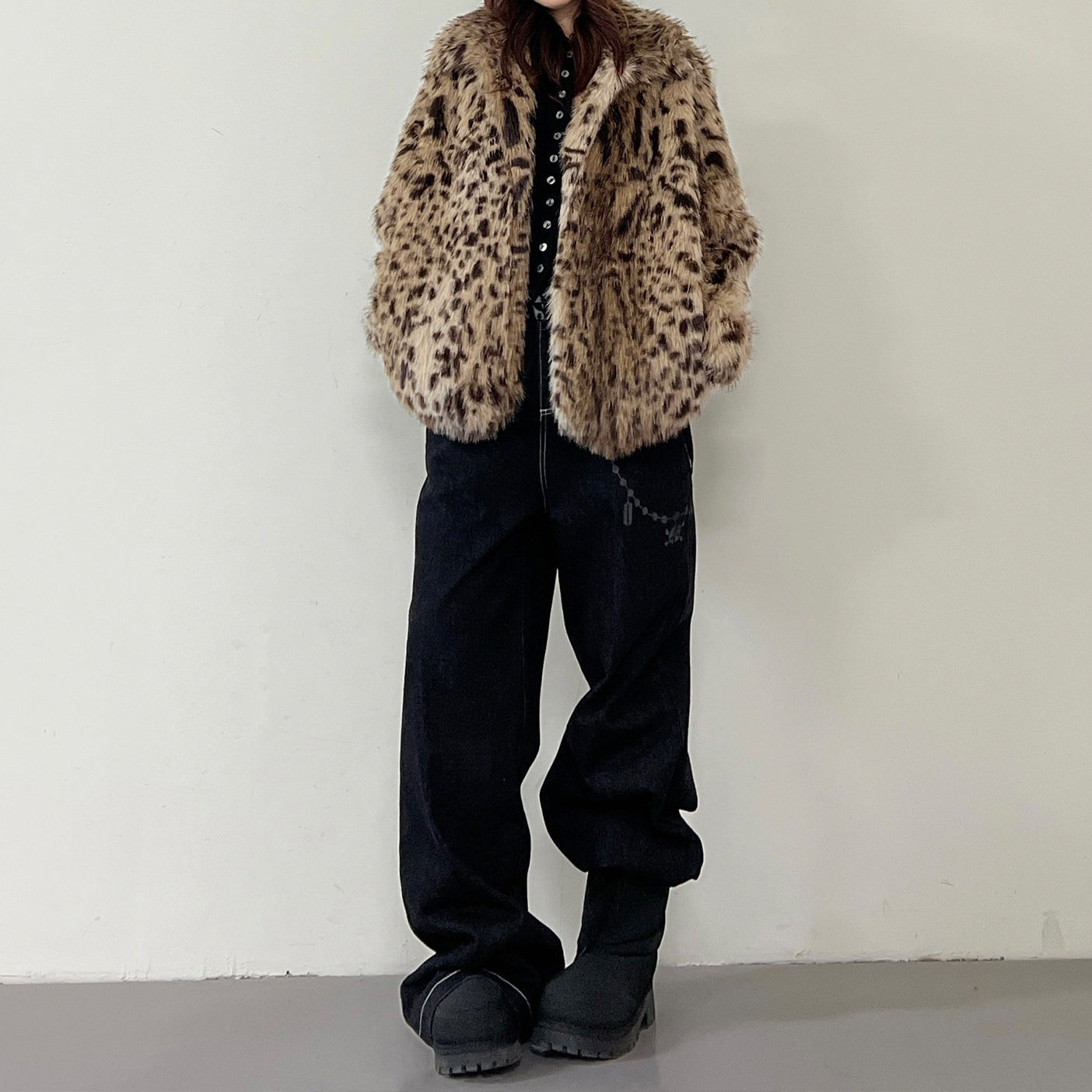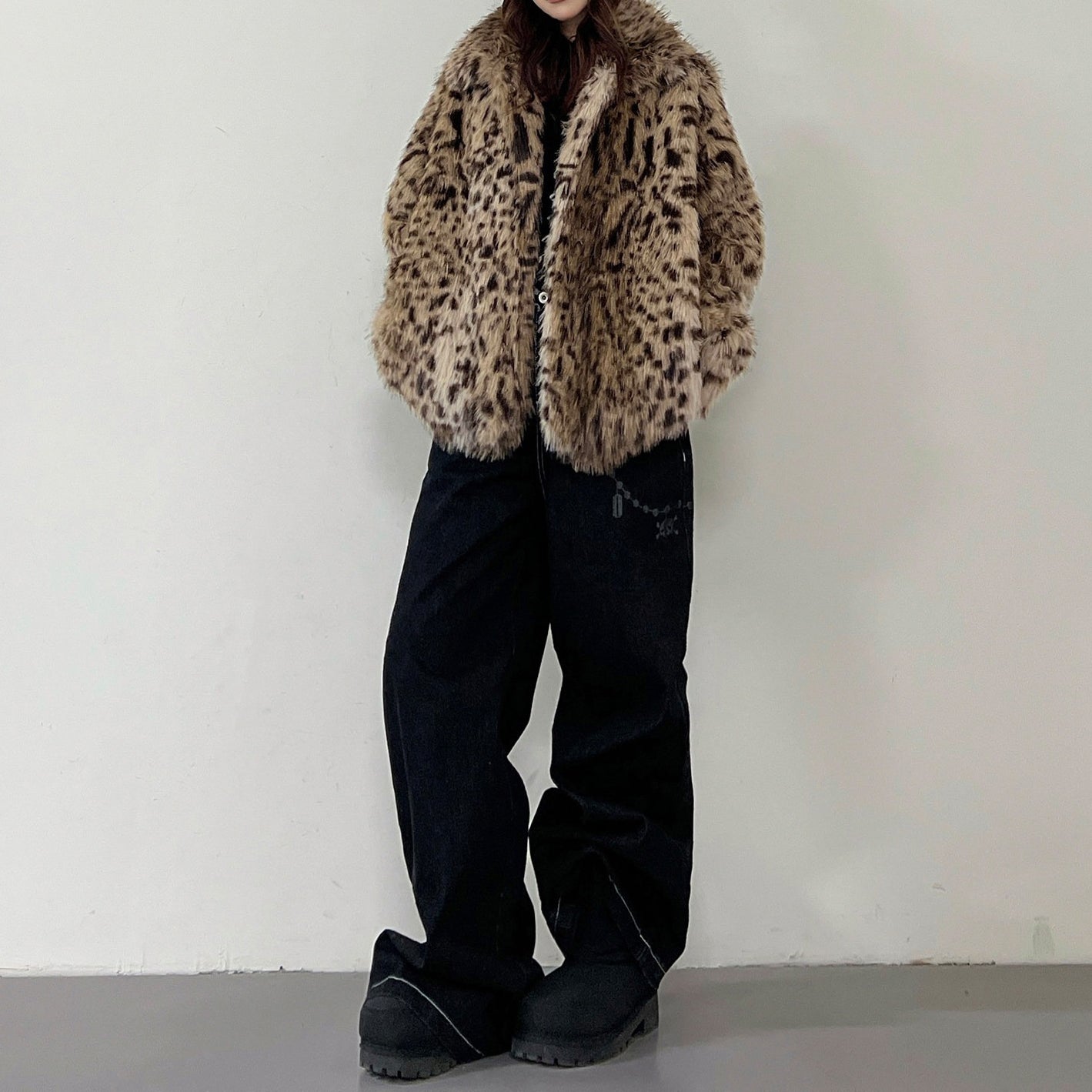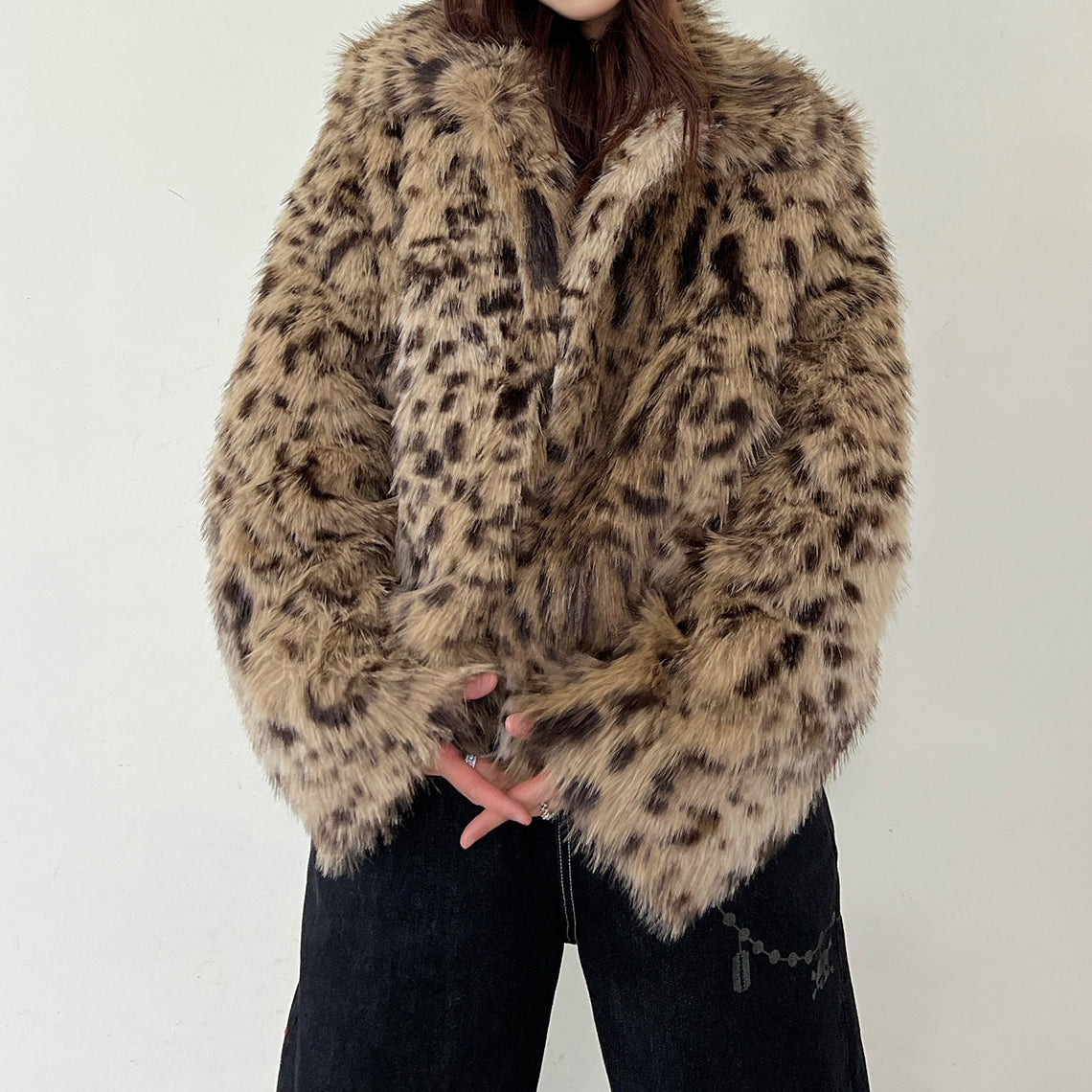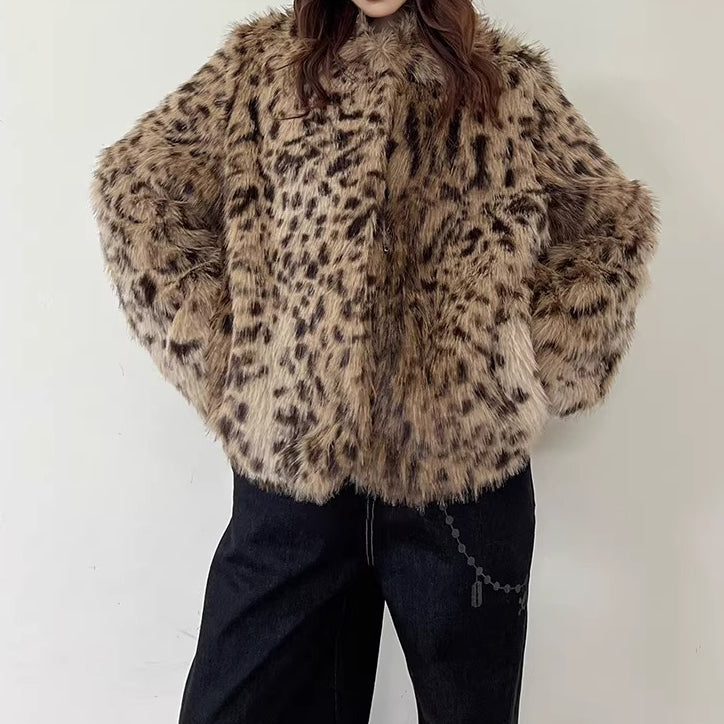 【商品名】【アウター】レオパード柄 エコファー フェイクミンク ボアジャケット レディースふわもこ オーバーサイズ ショート丈【FCシリーズ】【15~20日内発送】