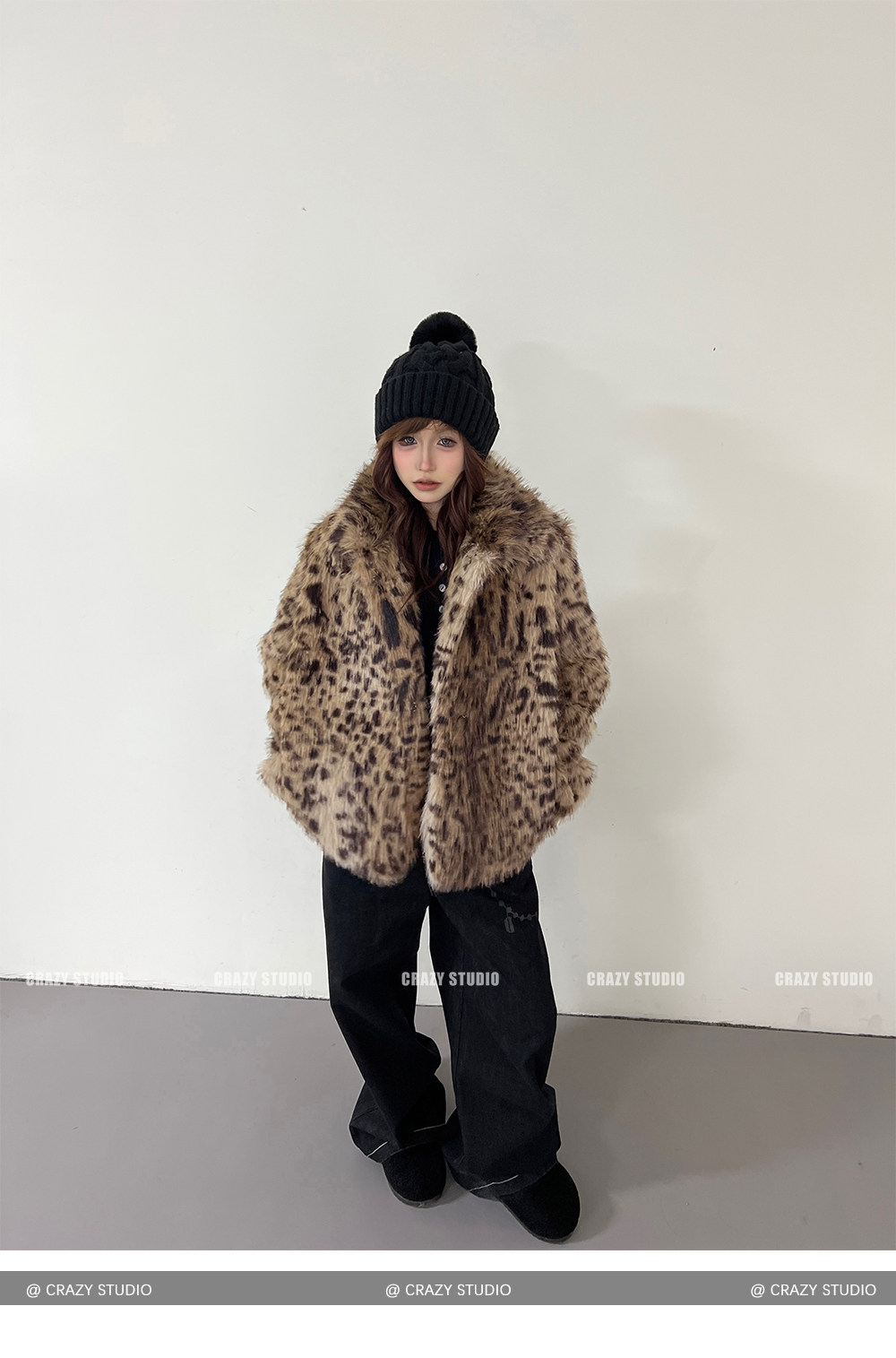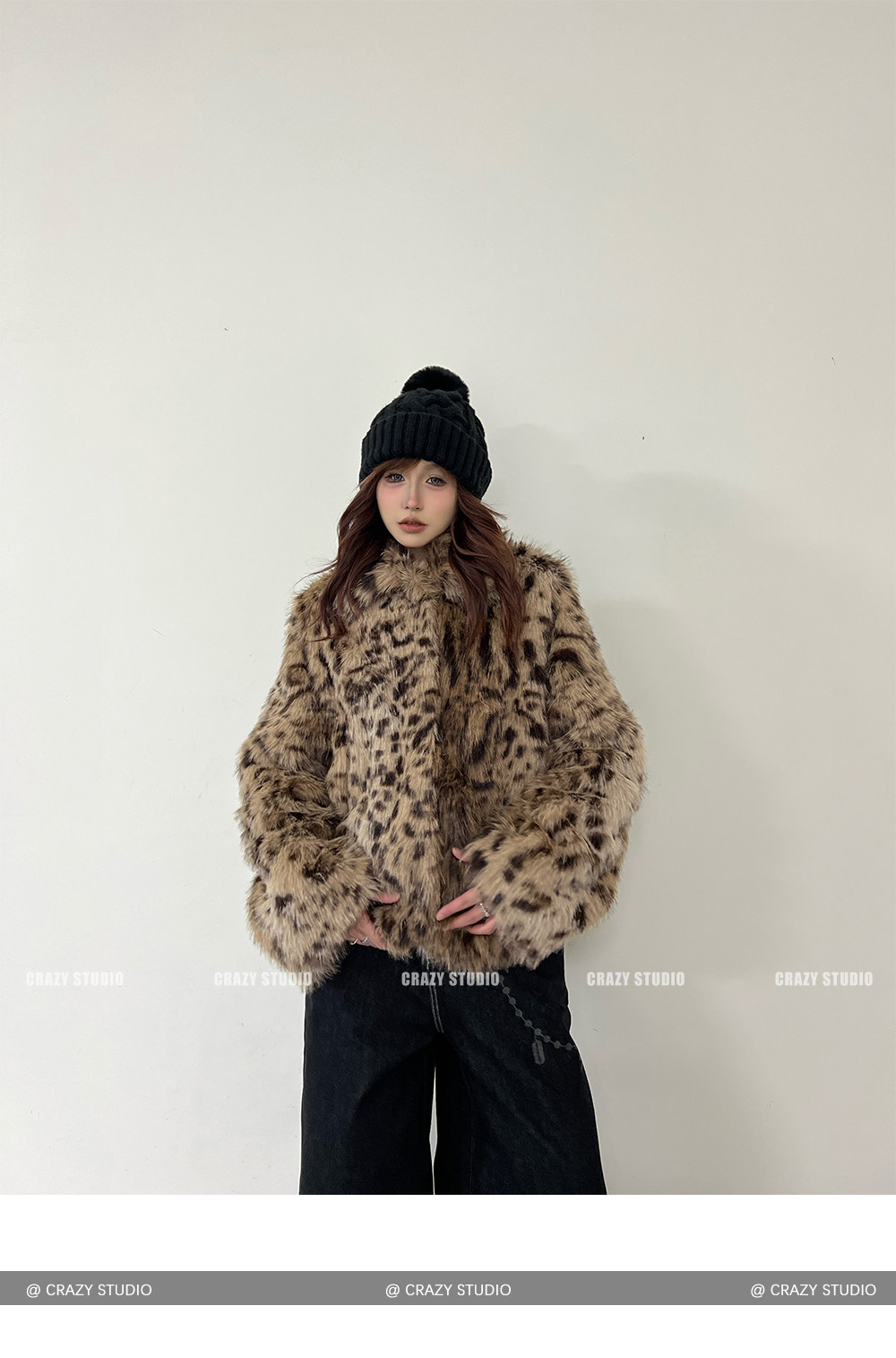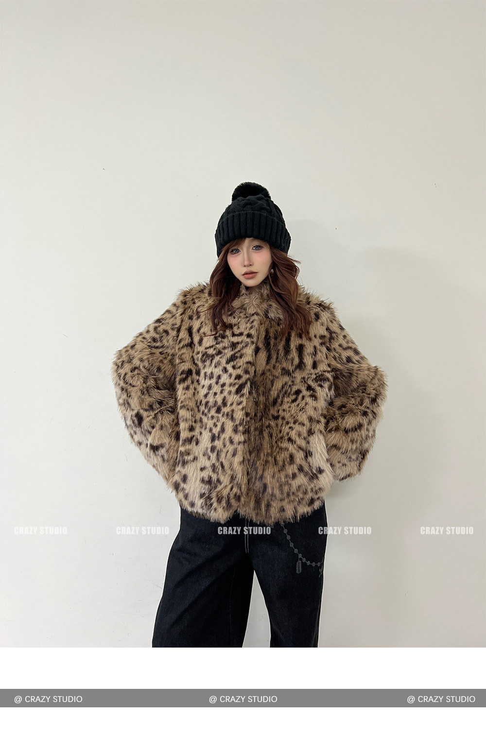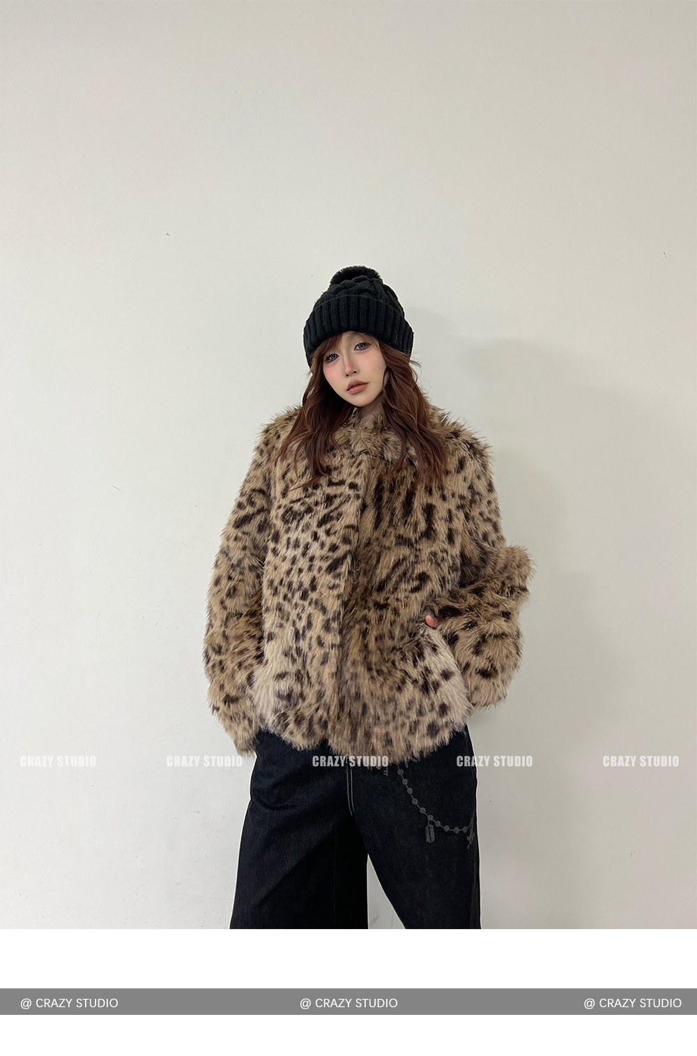 【商品名】【アウター】レオパード柄 エコファー フェイクミンク ボアジャケット レディースふわもこ オーバーサイズ ショート丈【FCシリーズ】【15~20日内発送】