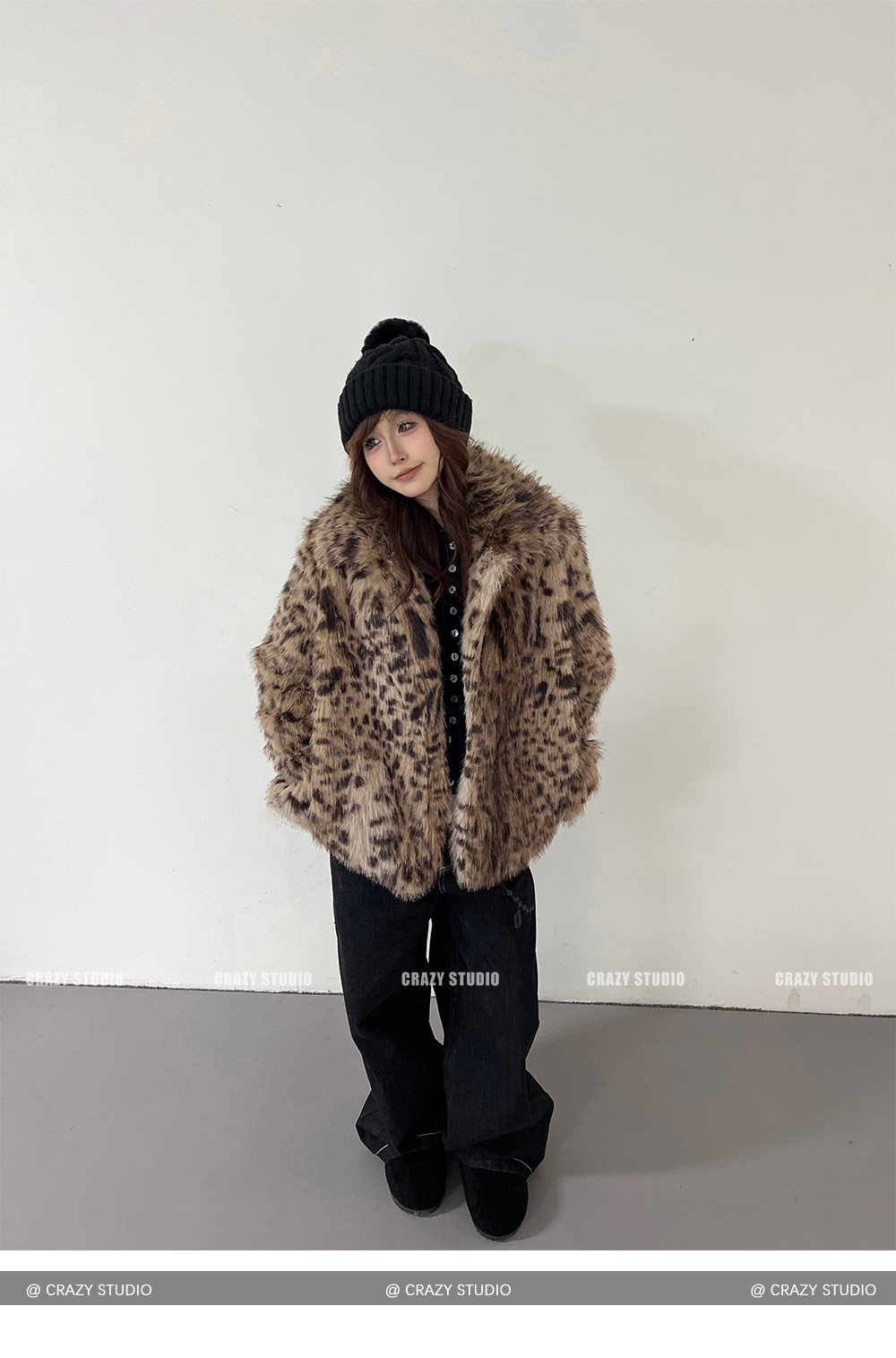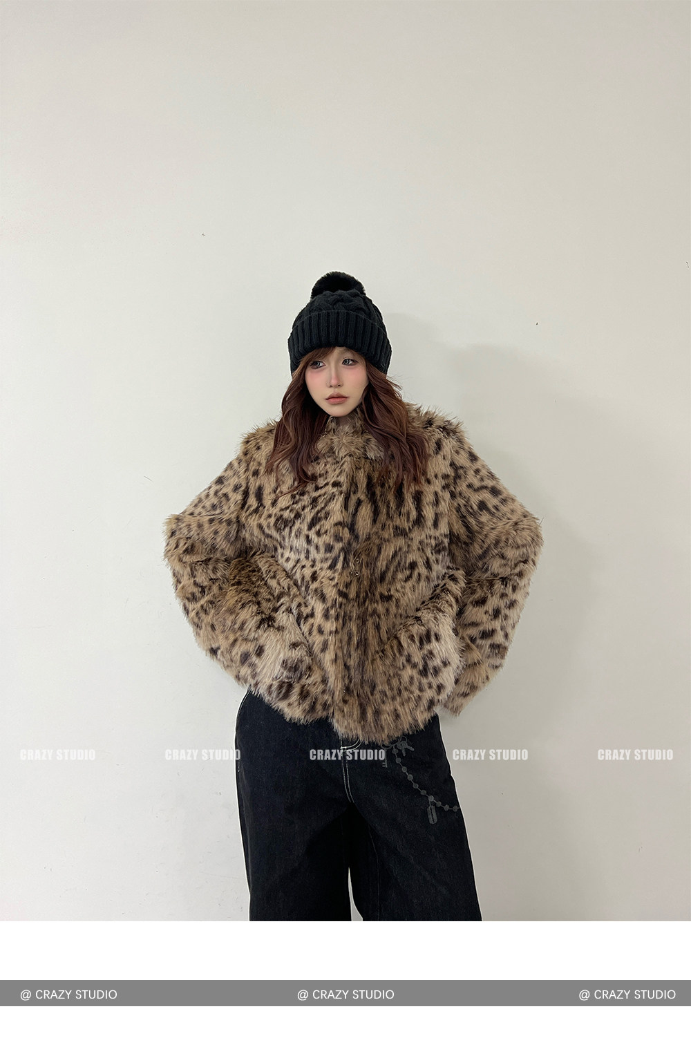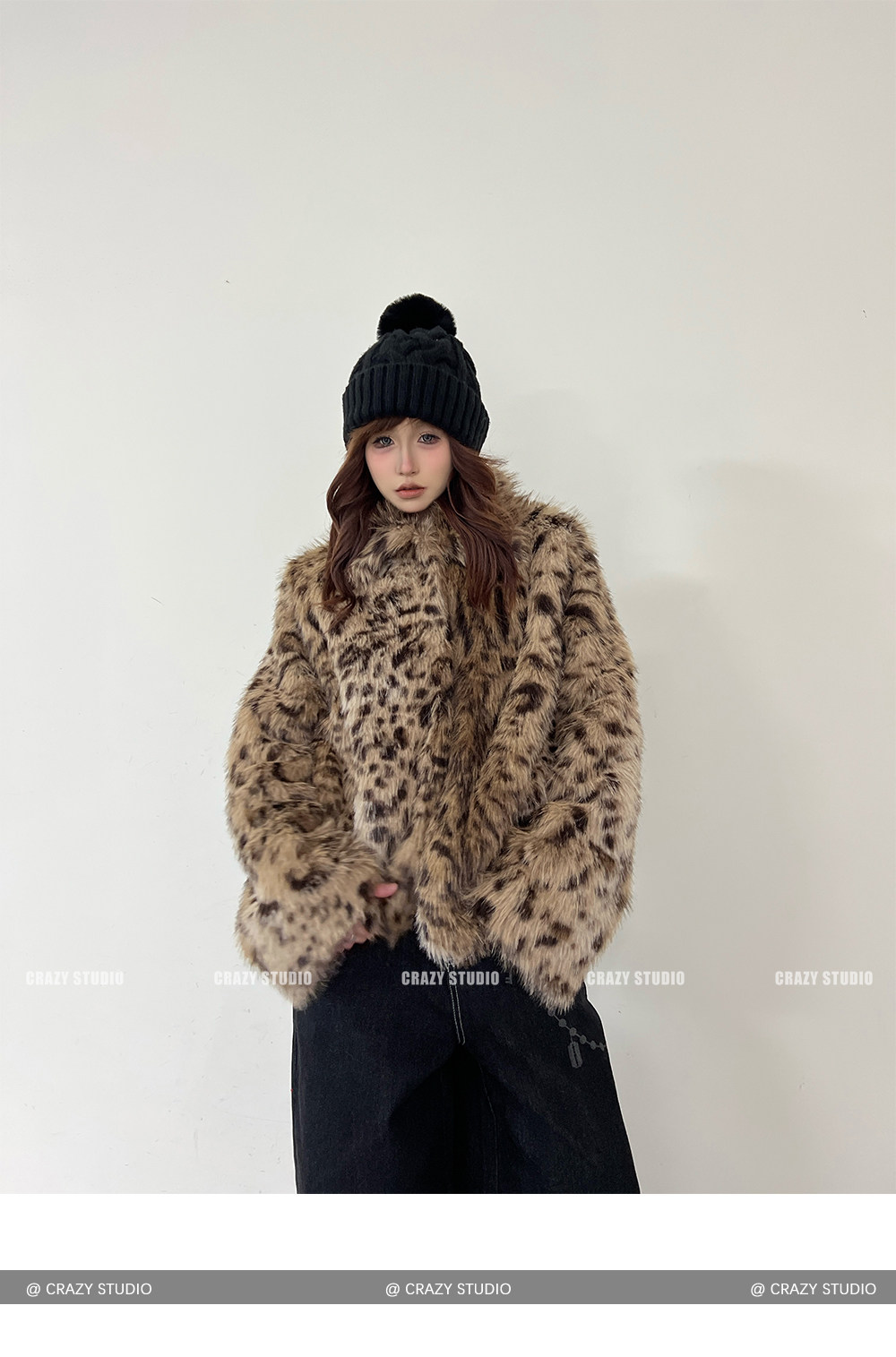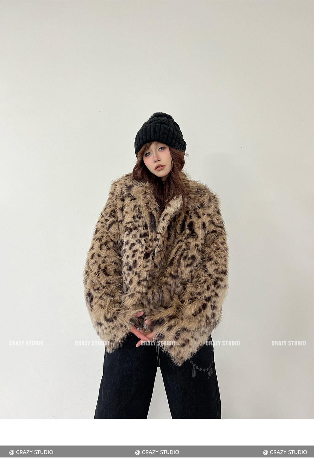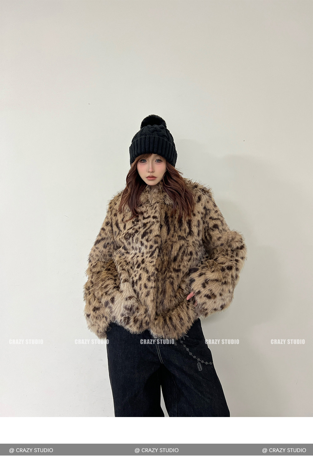 【商品名】【アウター】レオパード柄 エコファー フェイクミンク ボアジャケット レディースふわもこ オーバーサイズ ショート丈【FCシリーズ】【15~20日内発送】