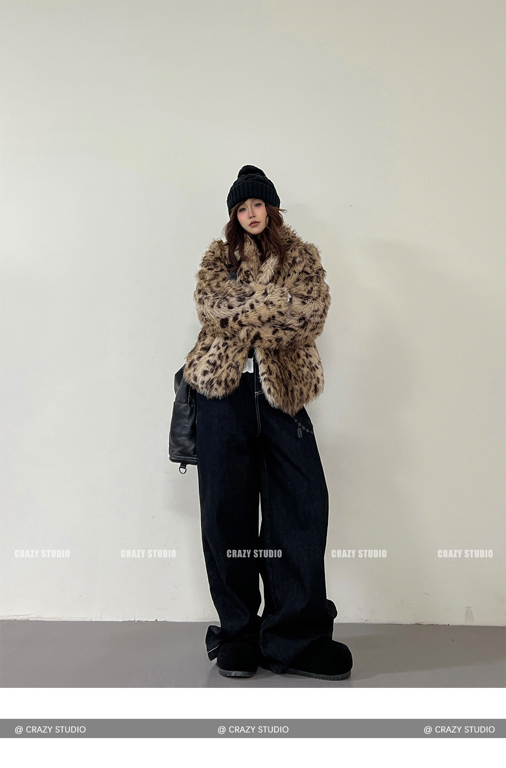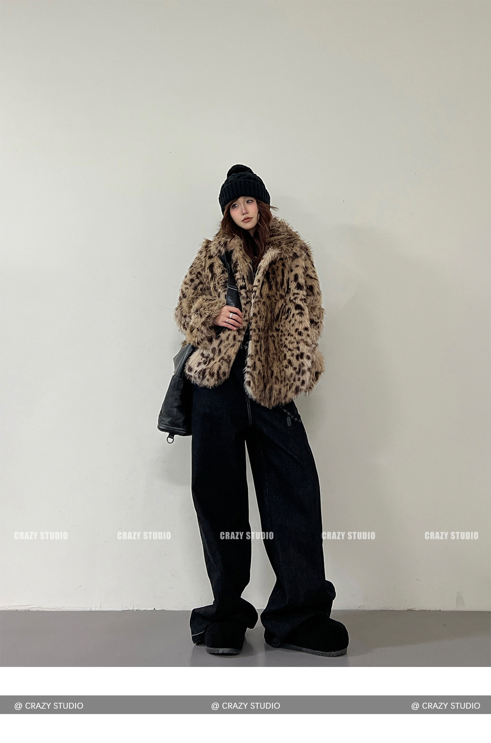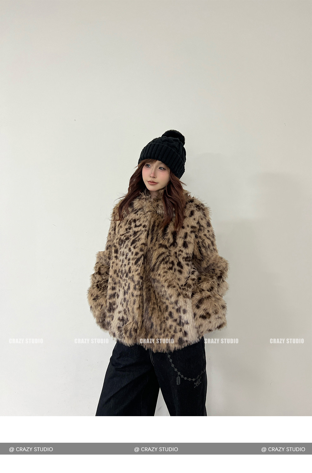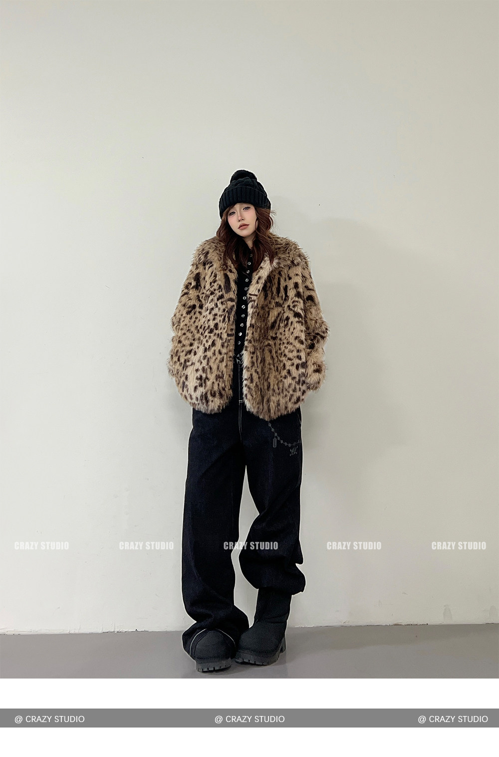 【商品名】【アウター】レオパード柄 エコファー フェイクミンク ボアジャケット レディースふわもこ オーバーサイズ ショート丈【FCシリーズ】【15~20日内発送】