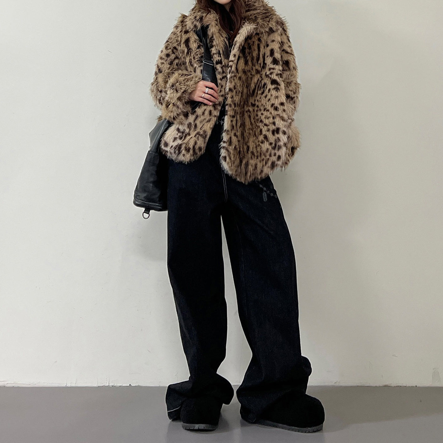 【アウター】レオパード柄 エコファー フェイクミンク ボアジャケット レディースふわもこ オーバーサイズ ショート丈【FCシリーズ】【15~20日内発送】