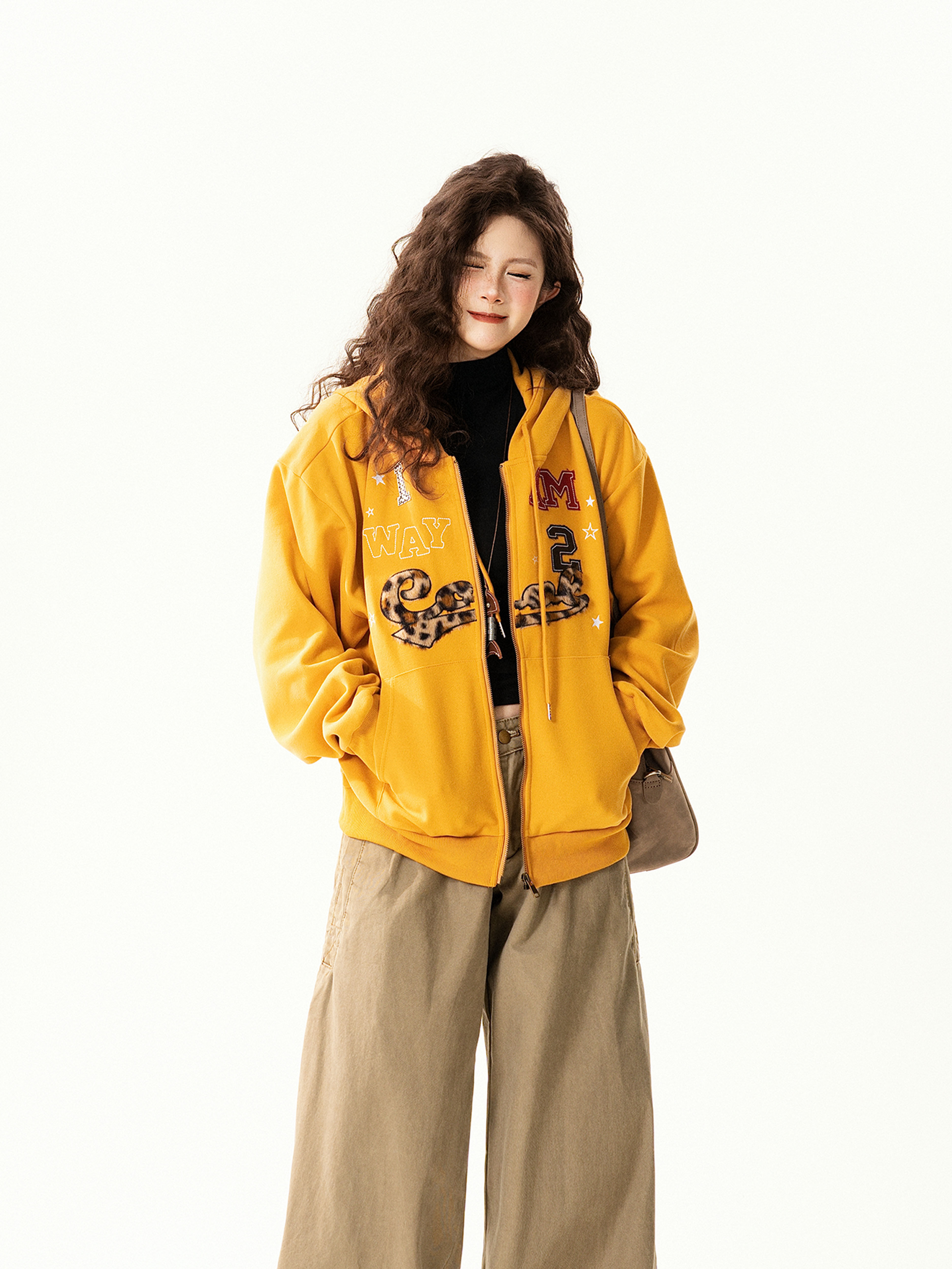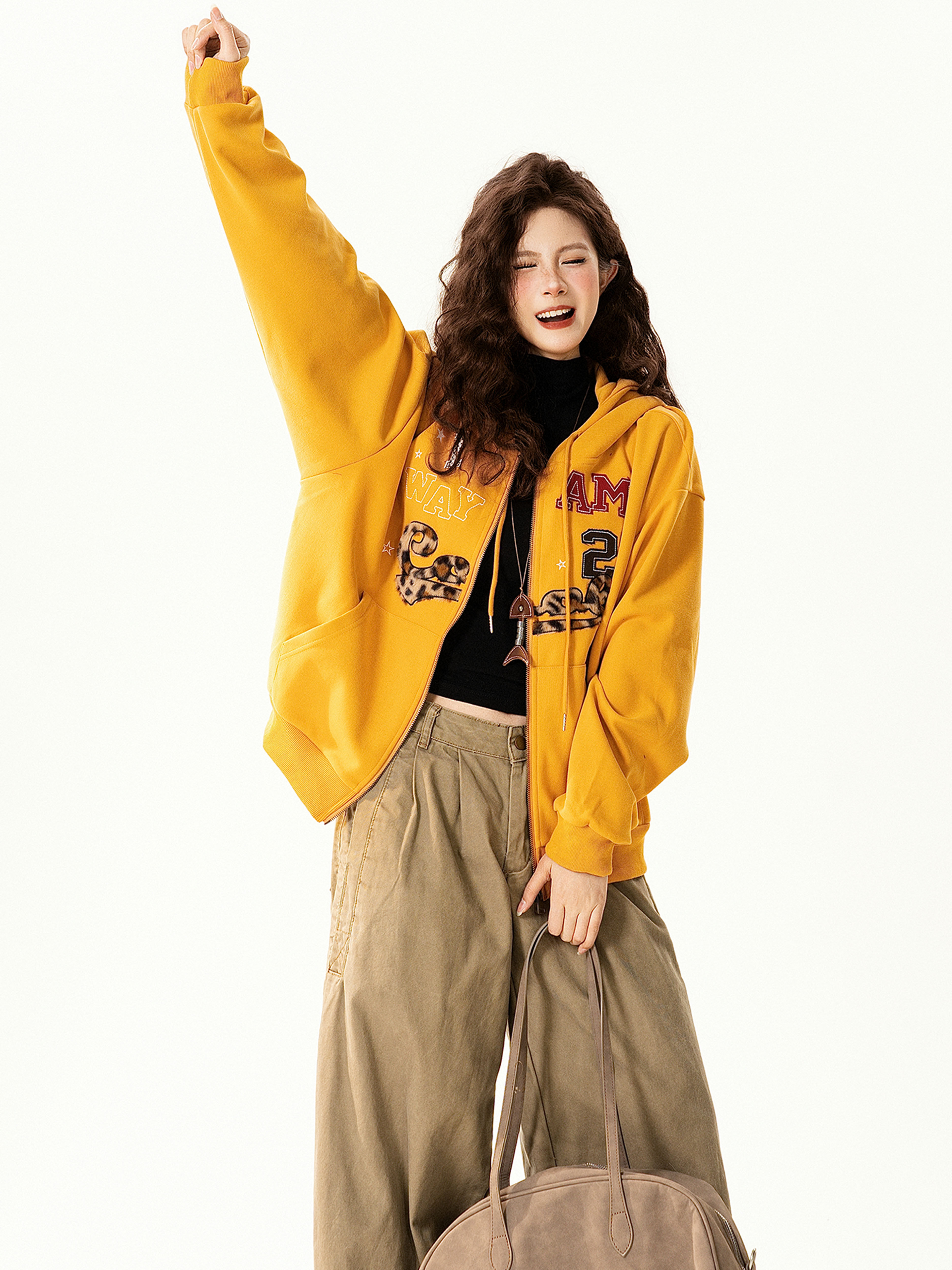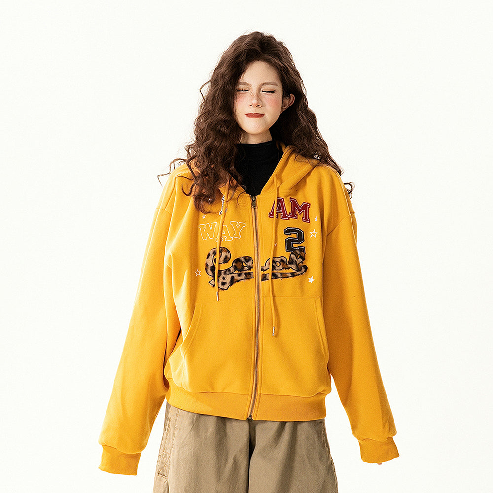 【アウター】アメリカンヴィンテージ レオパード ロゴ ジップアップパーカー ゆったり 男女兼用 カジュアルカーディガン【FCシリーズ】