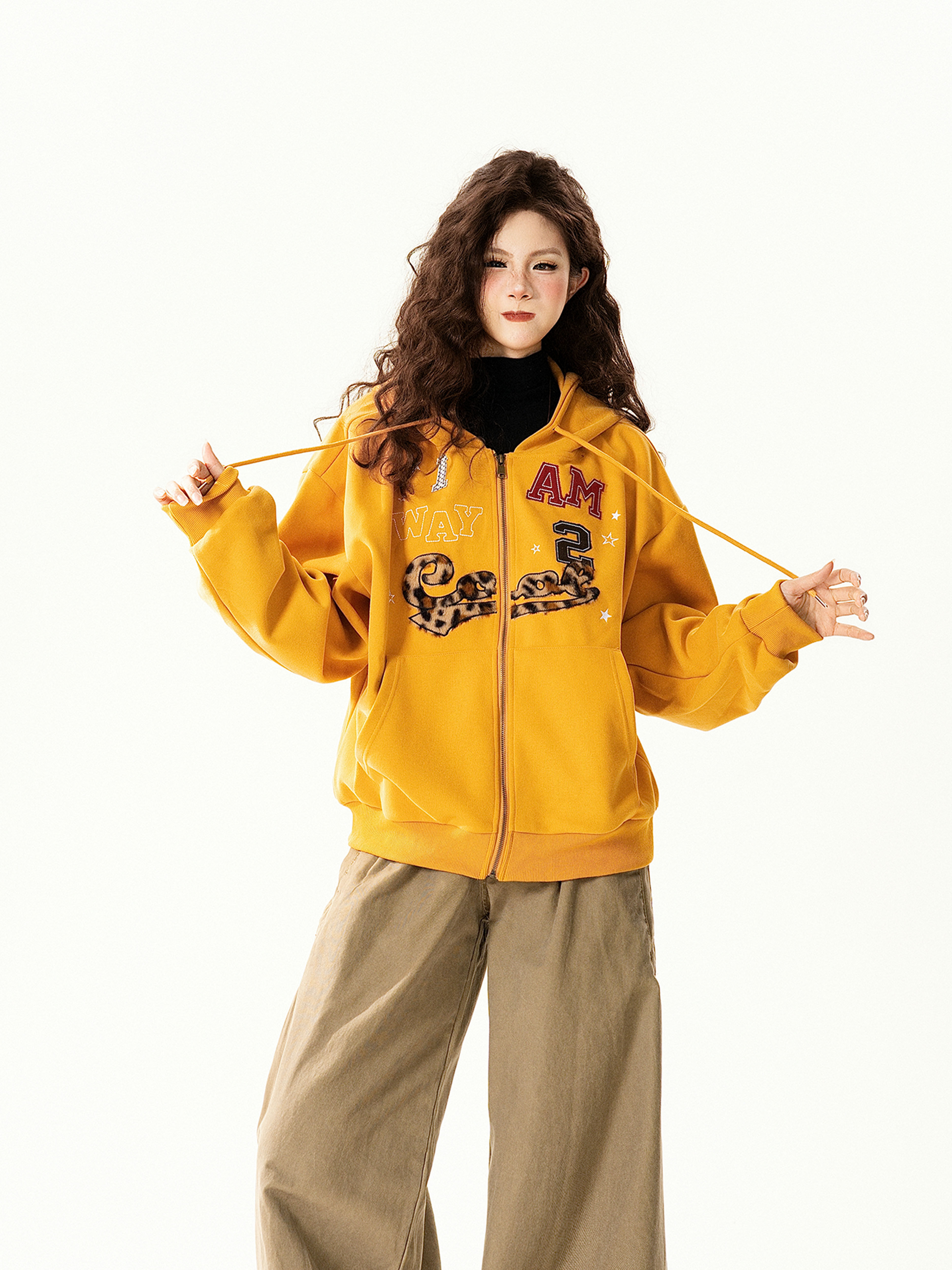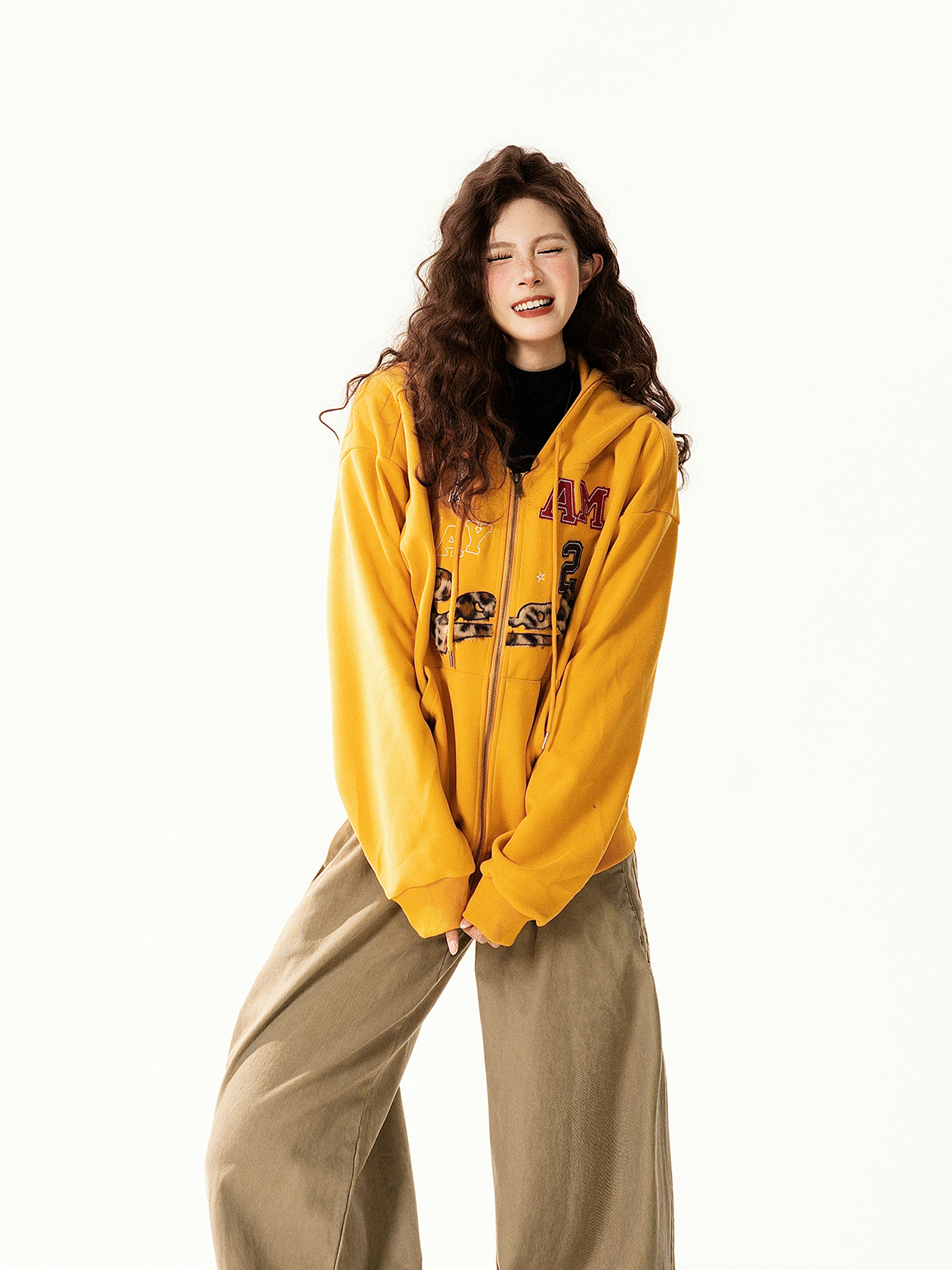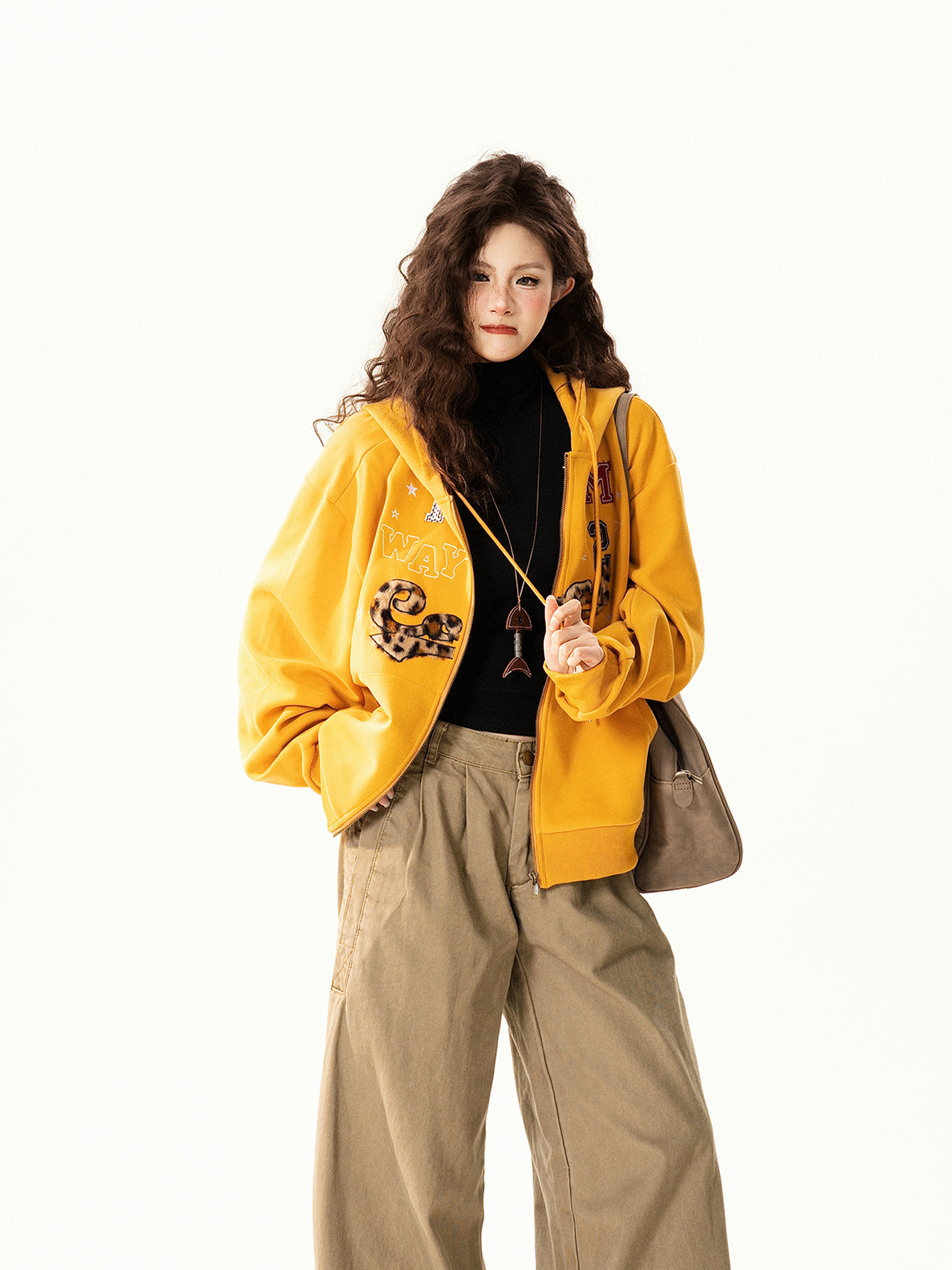 【アウター】アメリカンヴィンテージ レオパード ロゴ ジップアップパーカー ゆったり 男女兼用 カジュアルカーディガン【FCシリーズ】