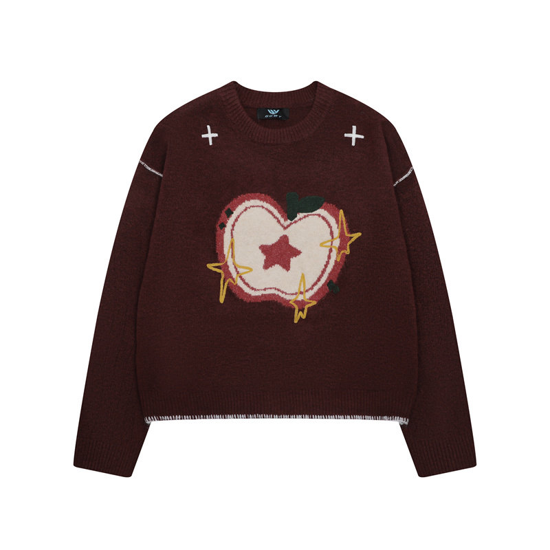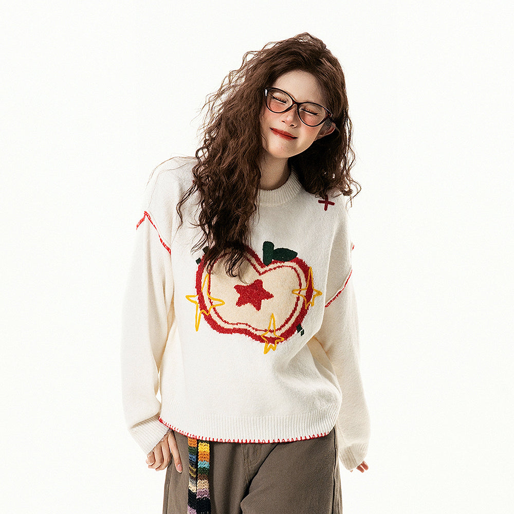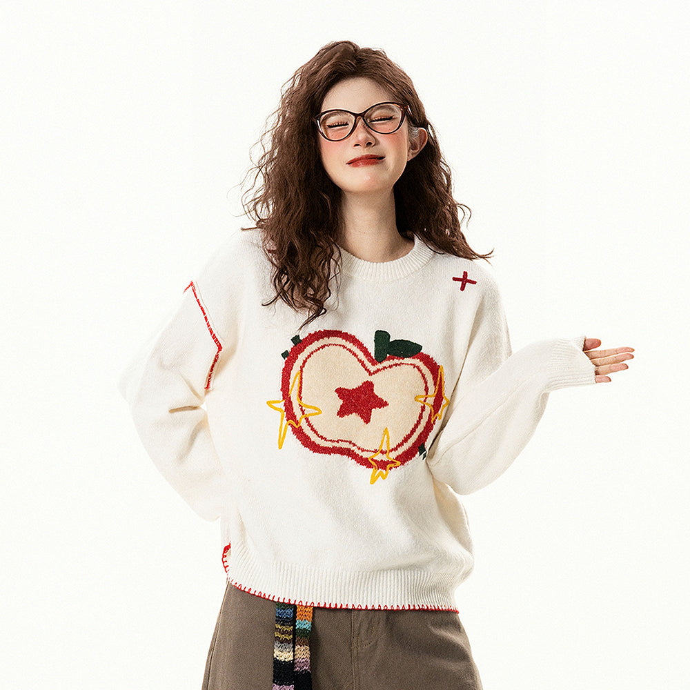 【トップス】 アメリカンレトロ アップルジャガード クルーネック ニット【FCシリーズ】