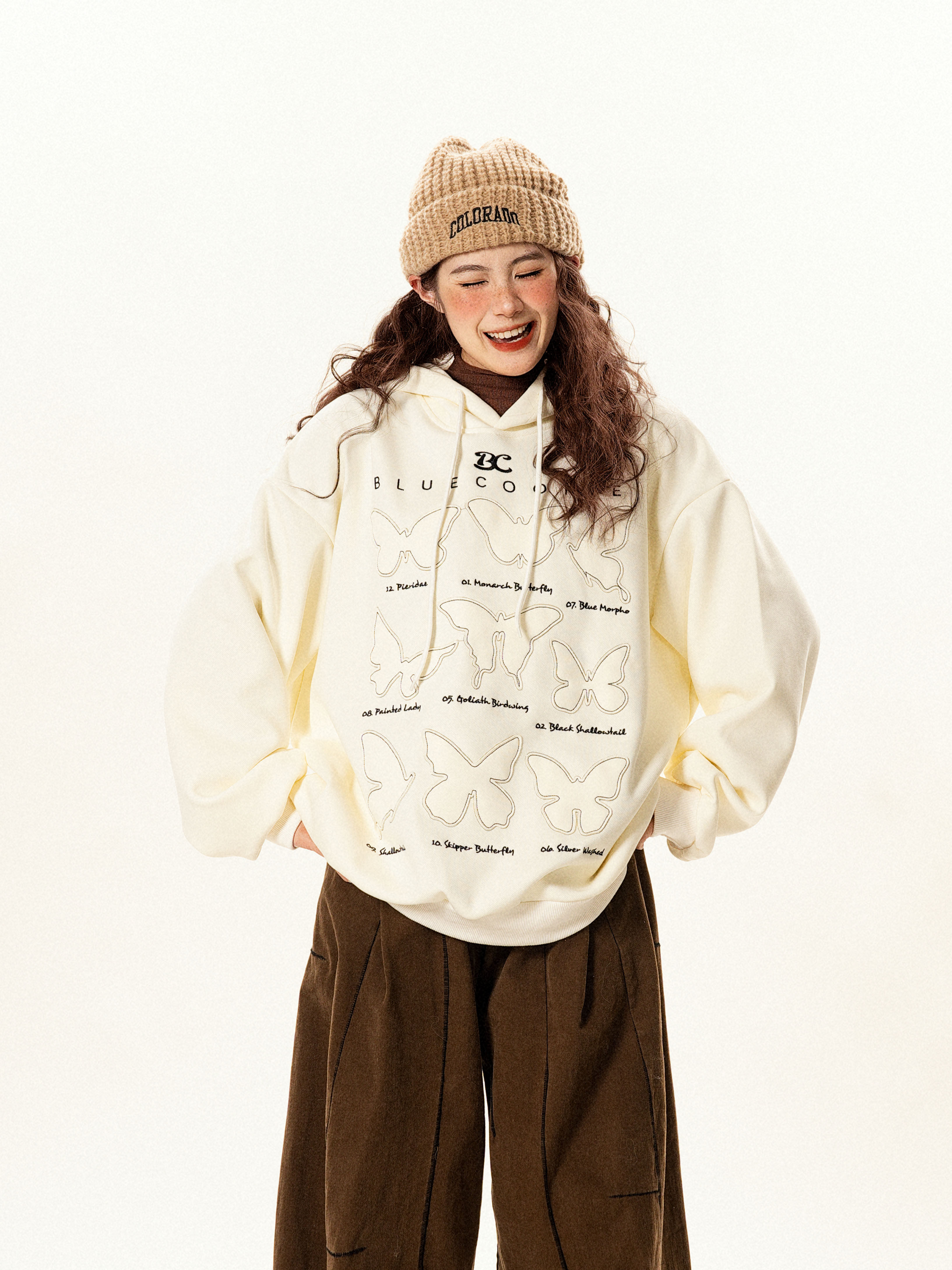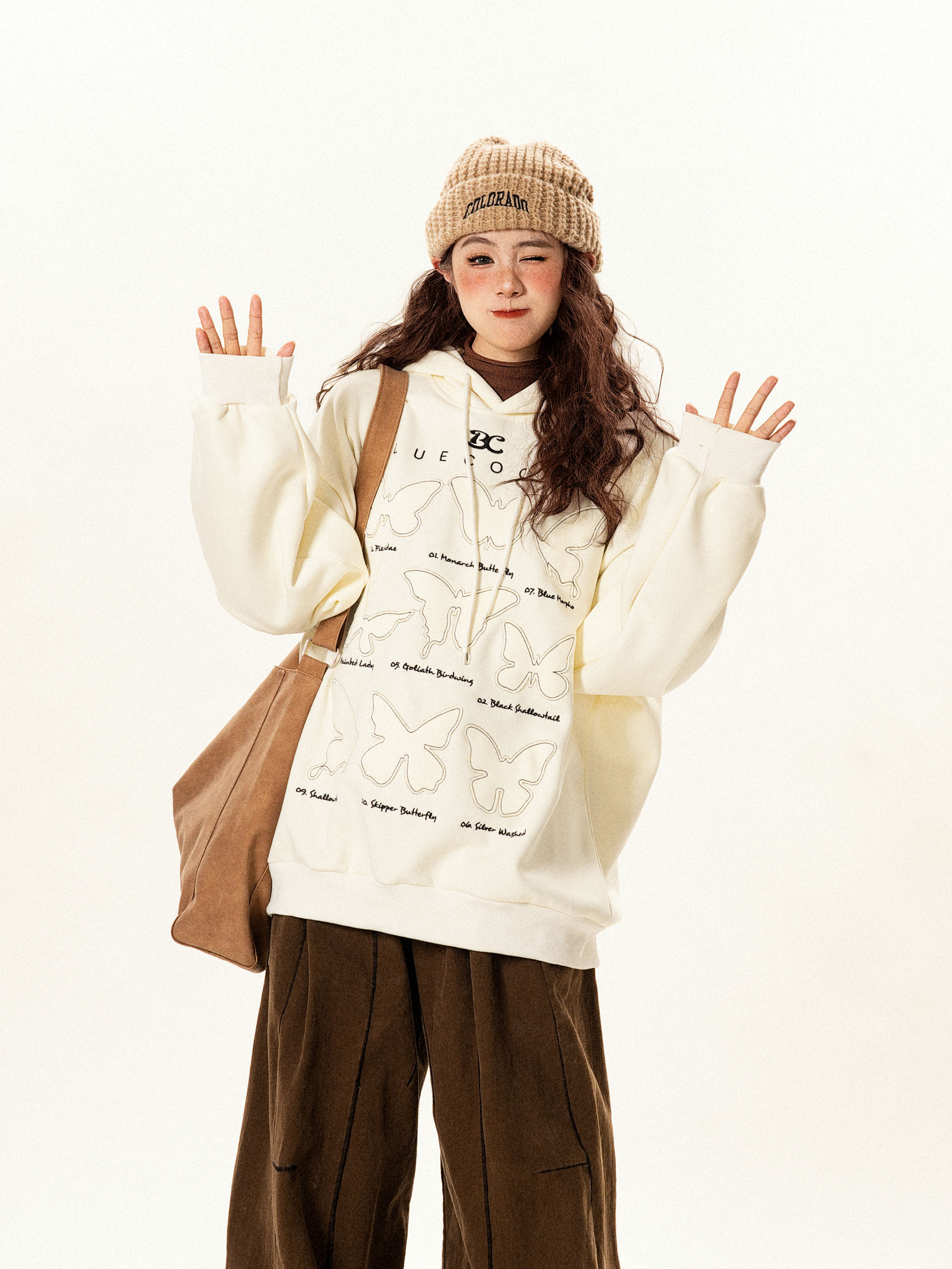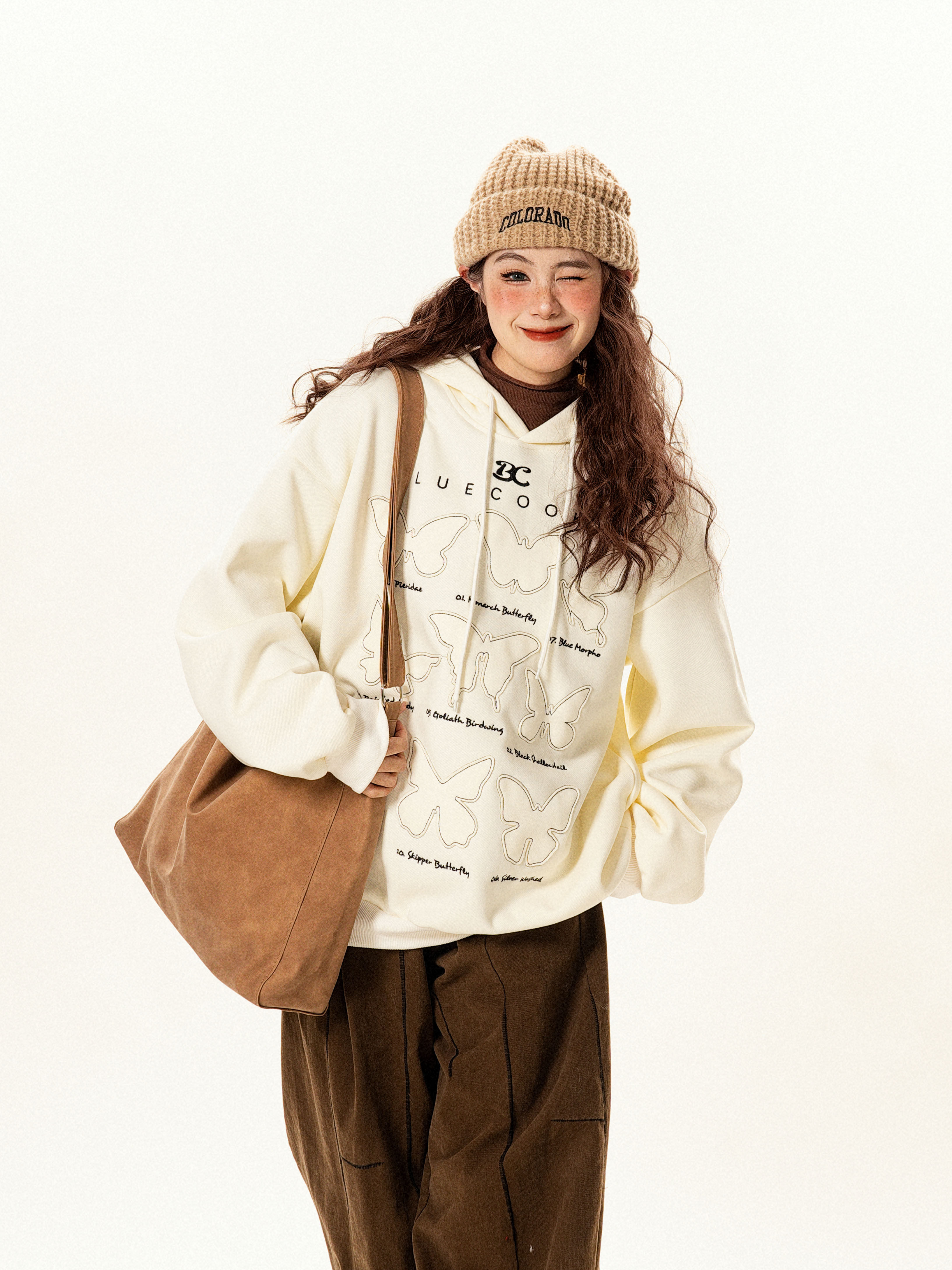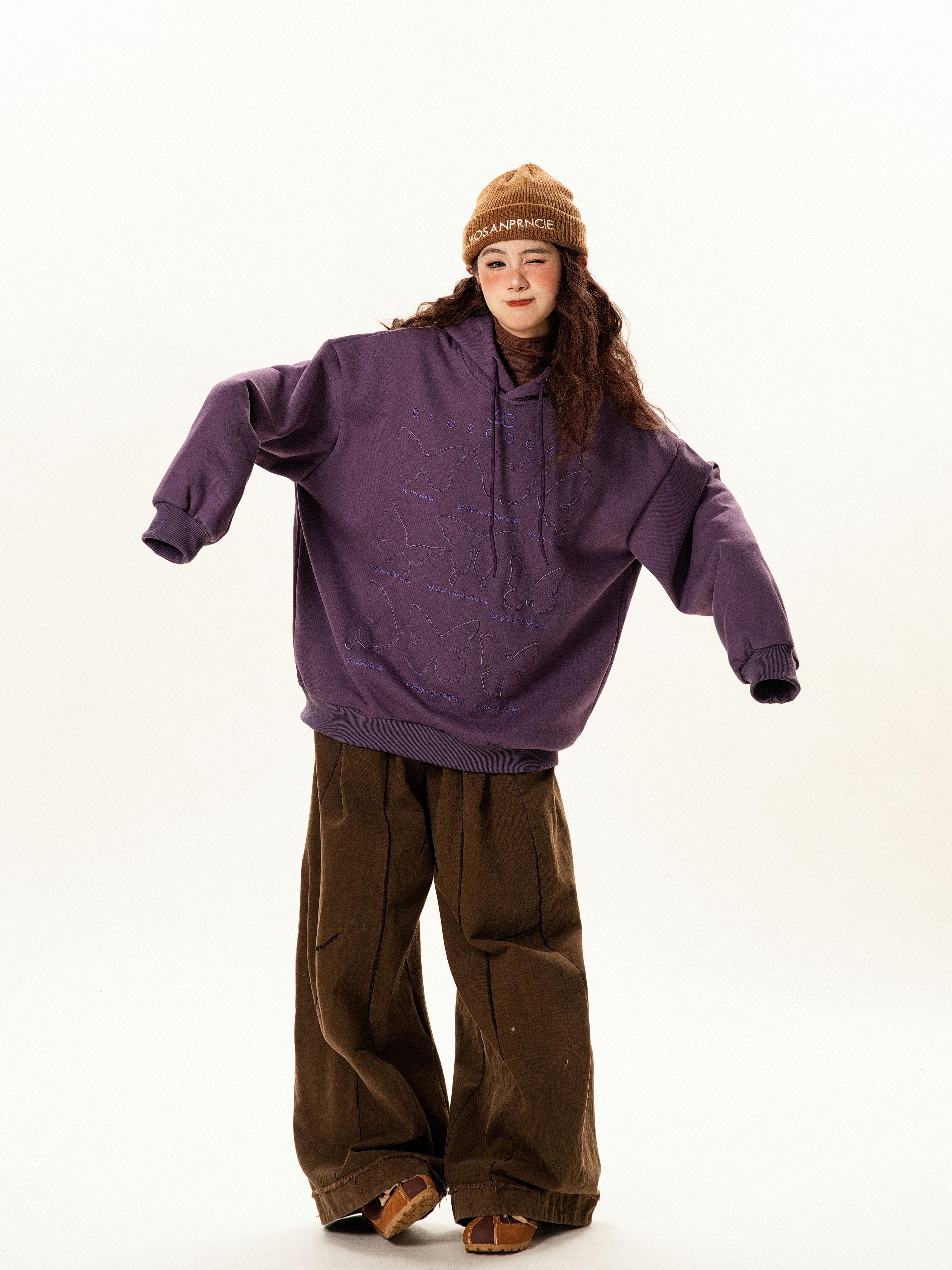 【商品名】【トップス】ヴィンテージ風 デザイン 蝶刺繍 フードパーカー レディース 新作 ゆったり リラックス 長袖 トップス【FCシリーズ】