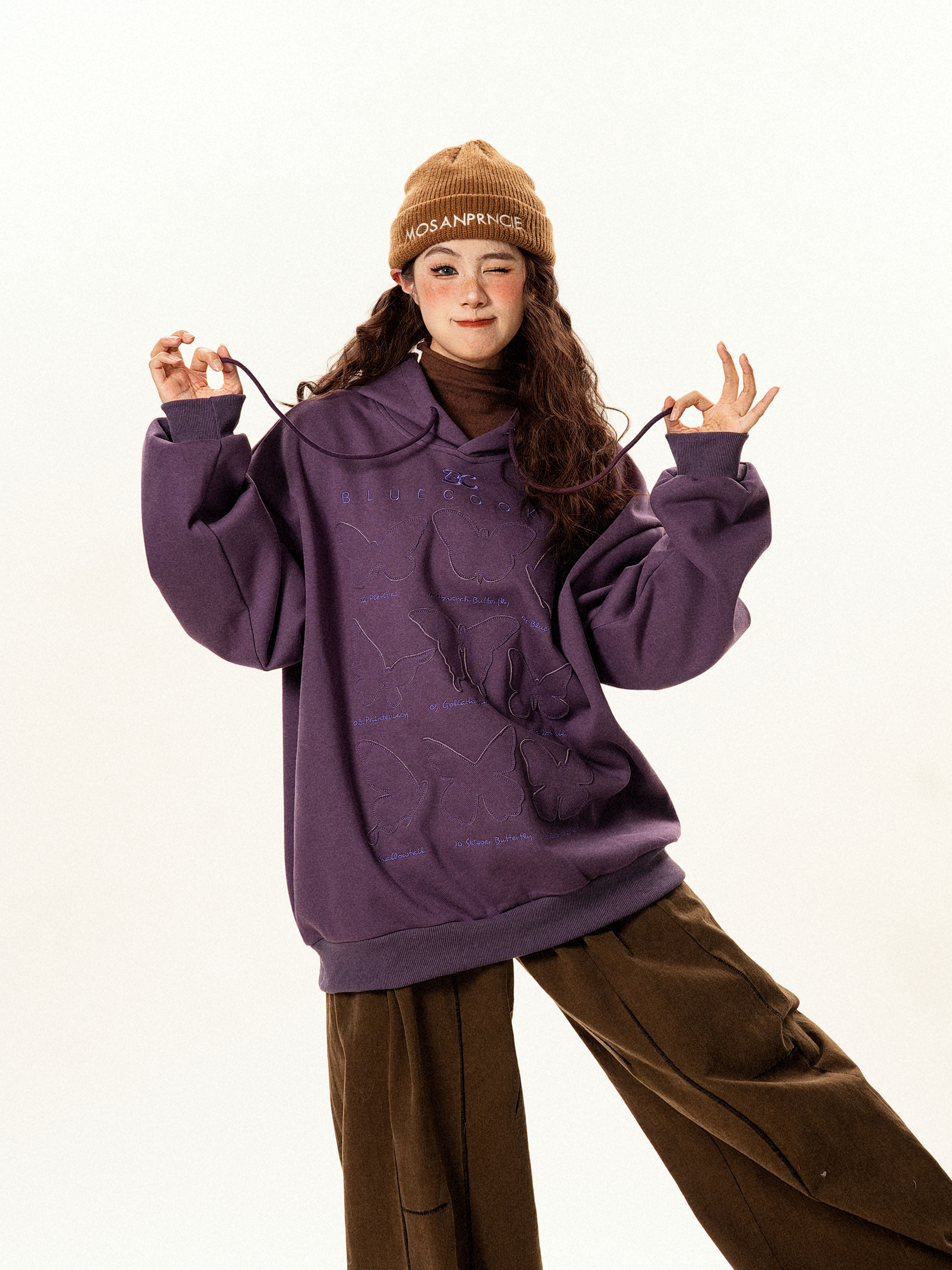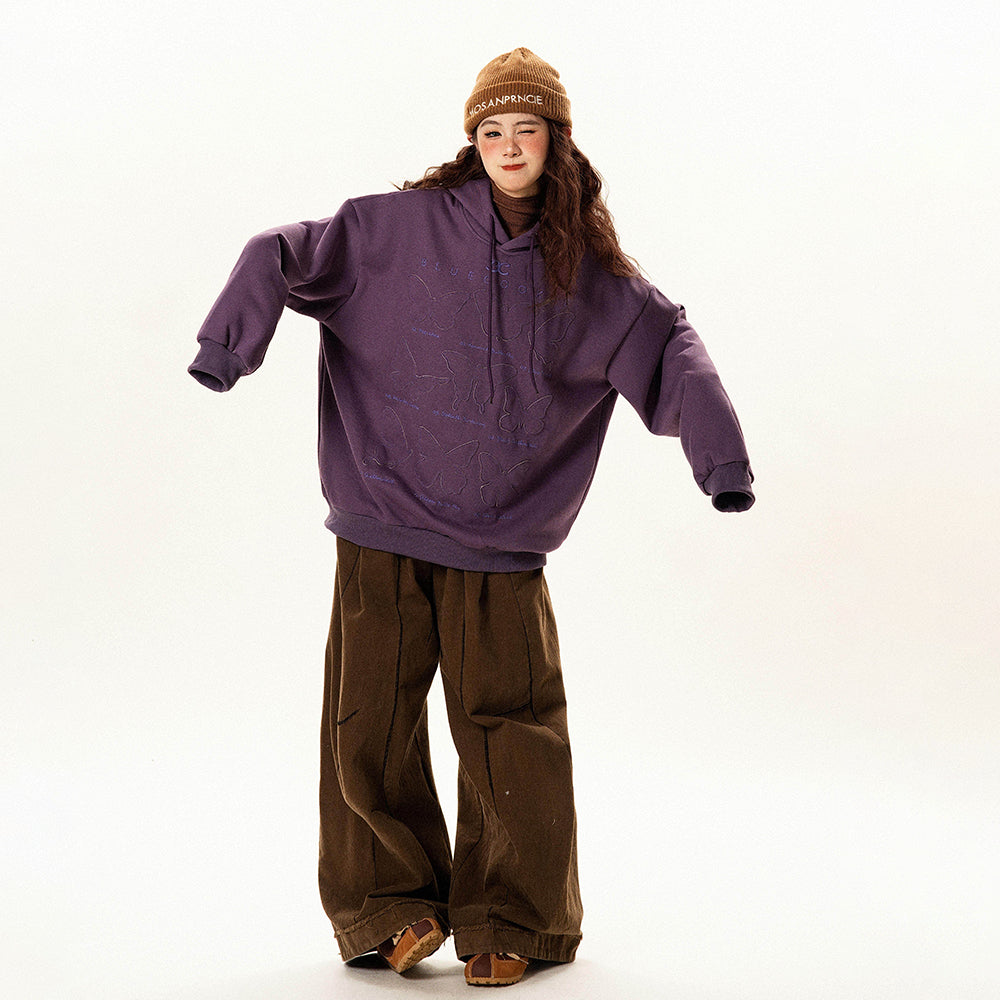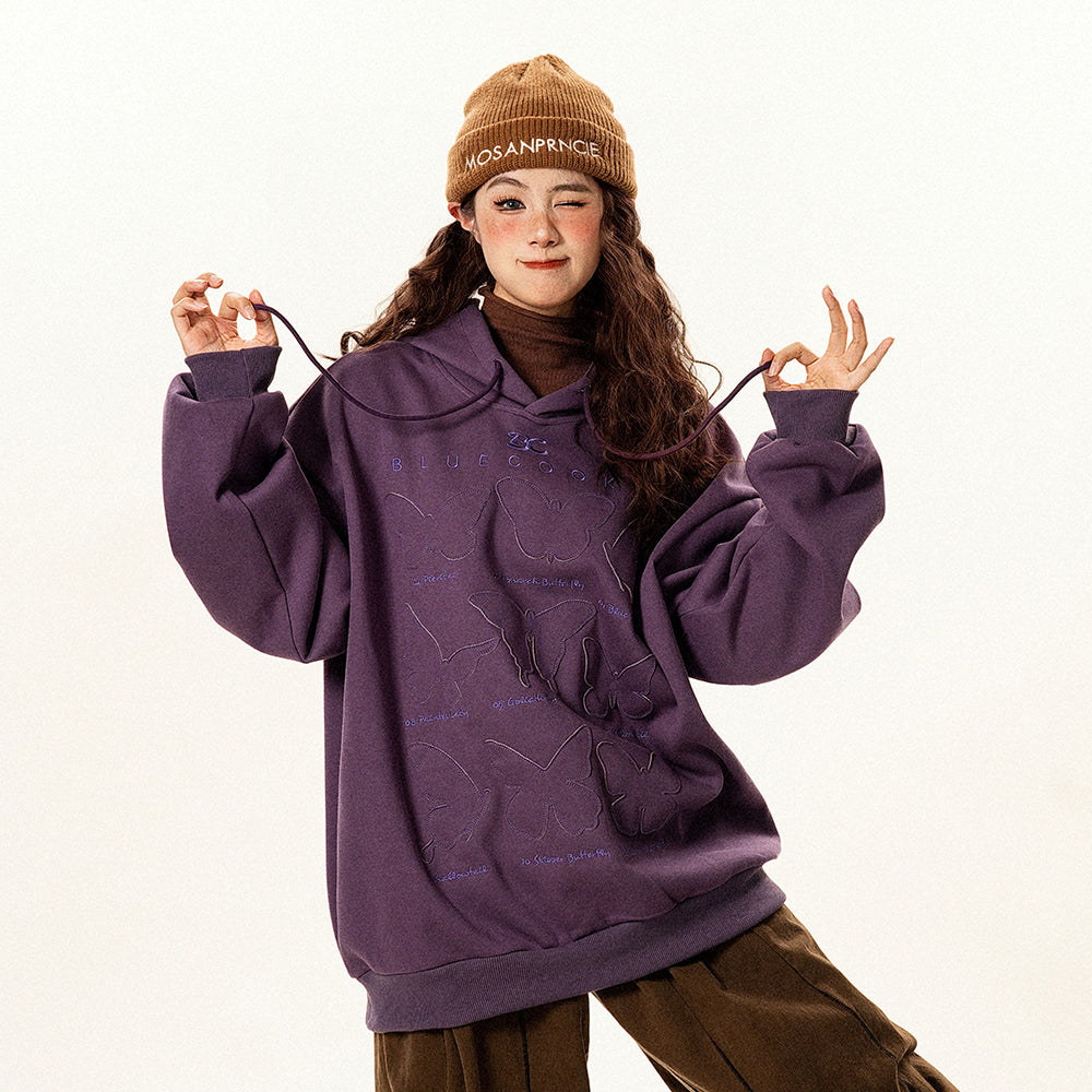 【トップス】ヴィンテージ風 デザイン 蝶刺繍 フードパーカー レディース 新作 ゆったり リラックス 長袖 トップス【FCシリーズ】