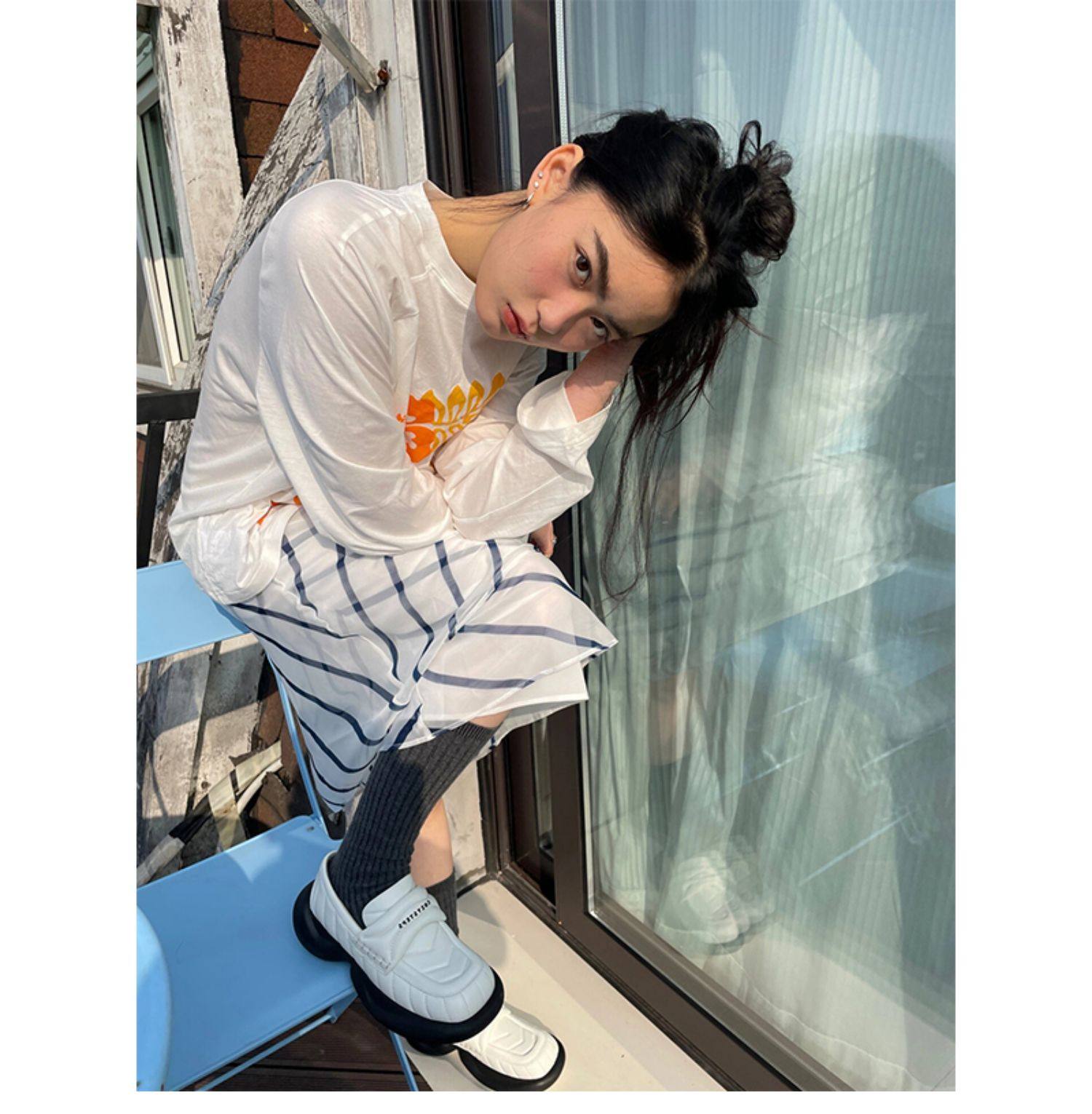 【セットアップ】【単品注文】モード系 ミニマルデザイン 春新作 ルーズ フーディー+ウエストゴムスカート 上下セット【AHシリーズ】