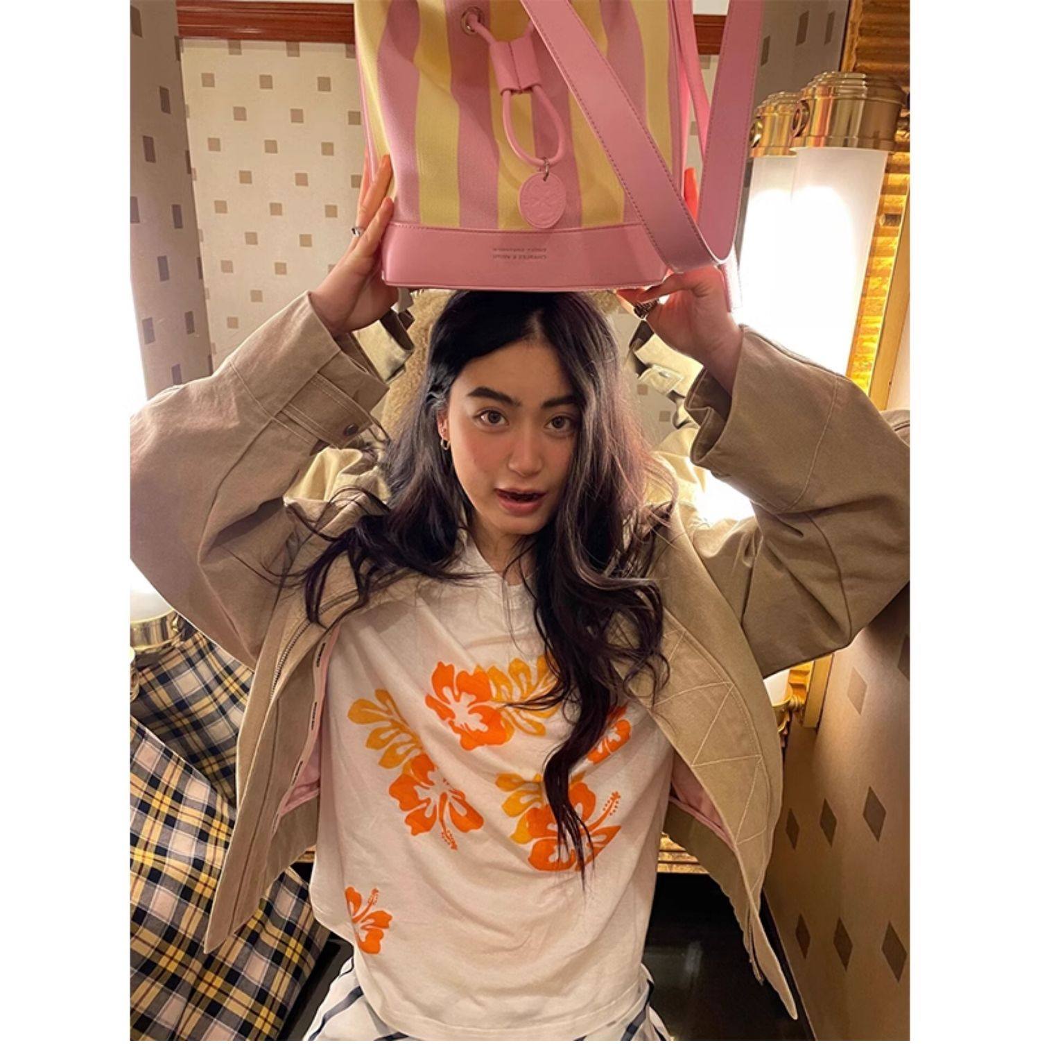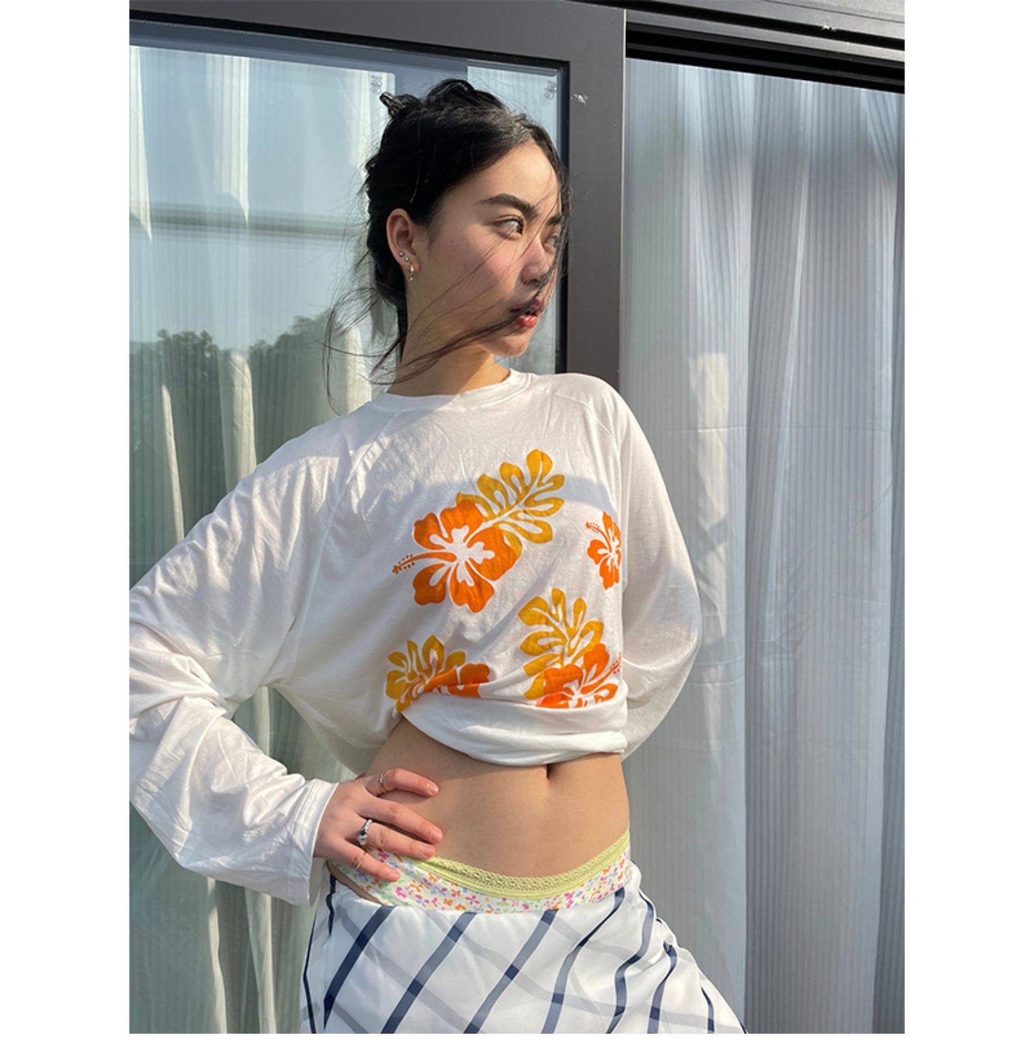 【セットアップ】【単品注文】トロピカルプリント トロピカルプリント ラグランスリーブ + プリーツスカート 2点上下セット 【SHシリーズ】