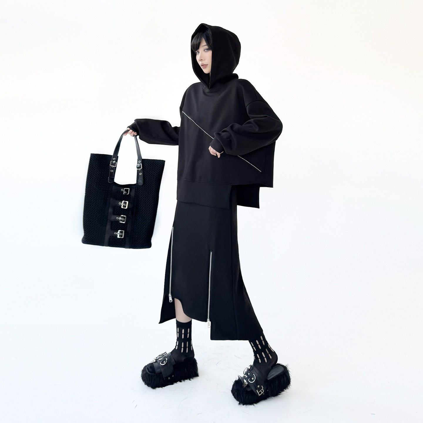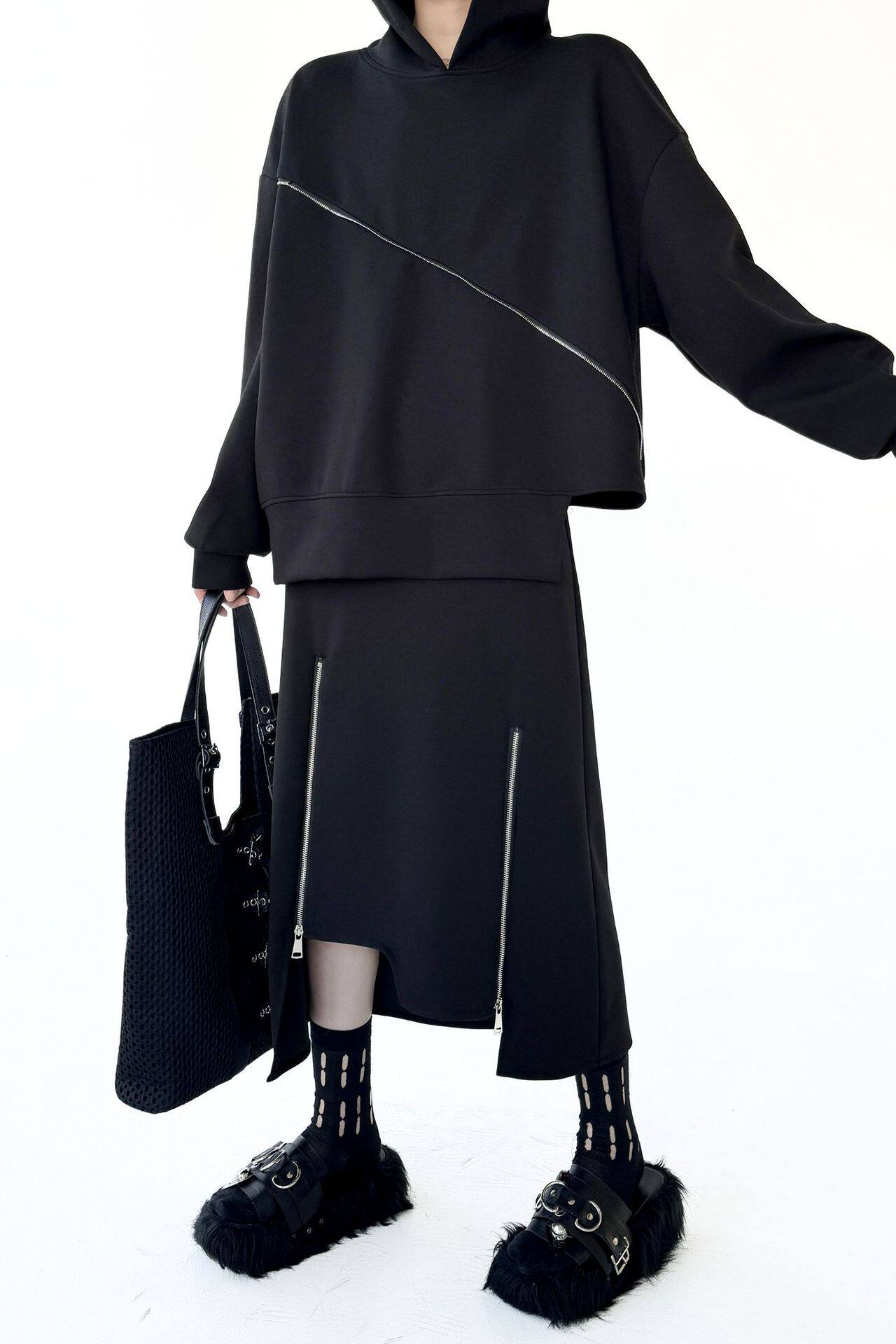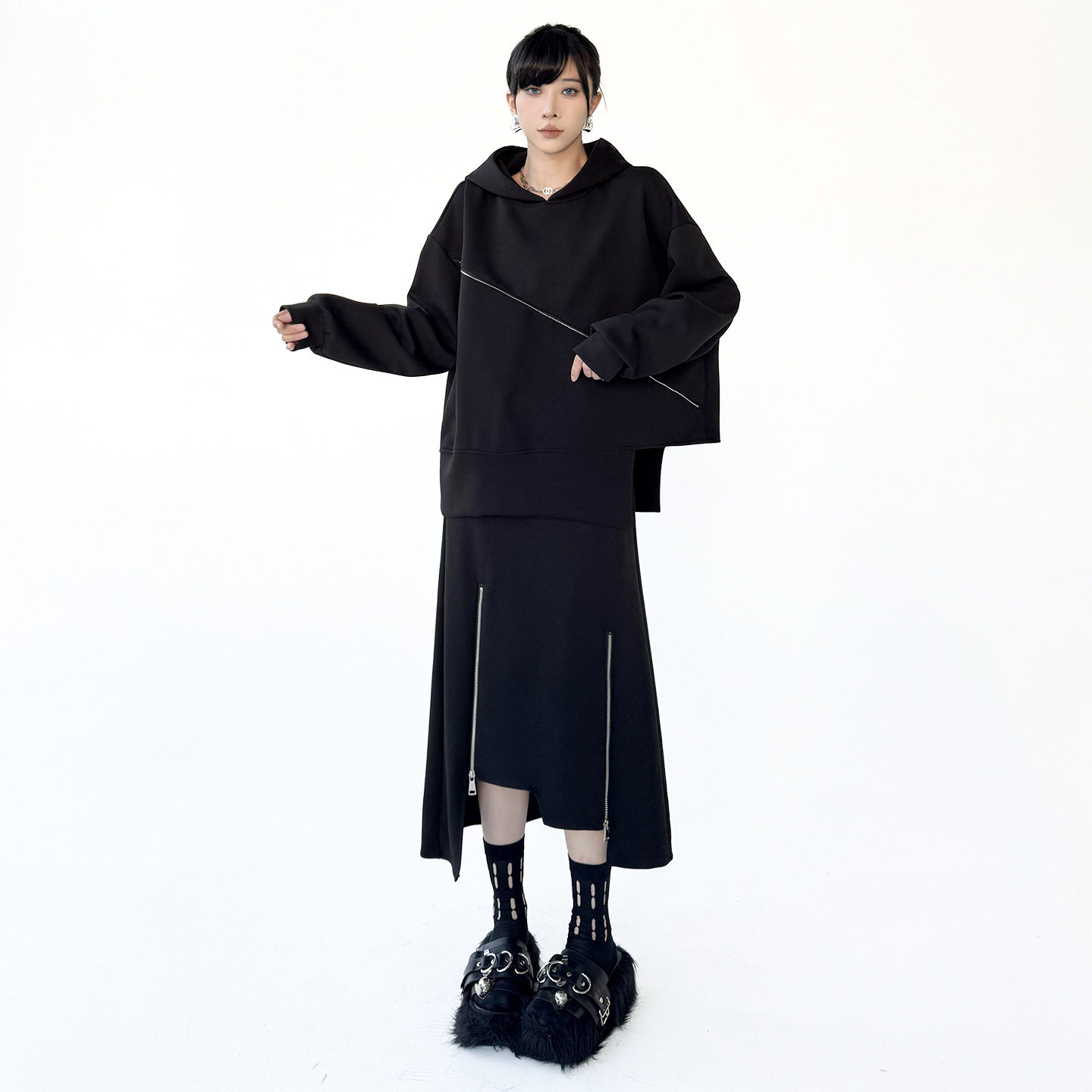 【セットアップ】【単品注文】モード系 ミニマルデザイン 春新作 ルーズ フーディー+ウエストゴムスカート 上下セット【AHシリーズ】