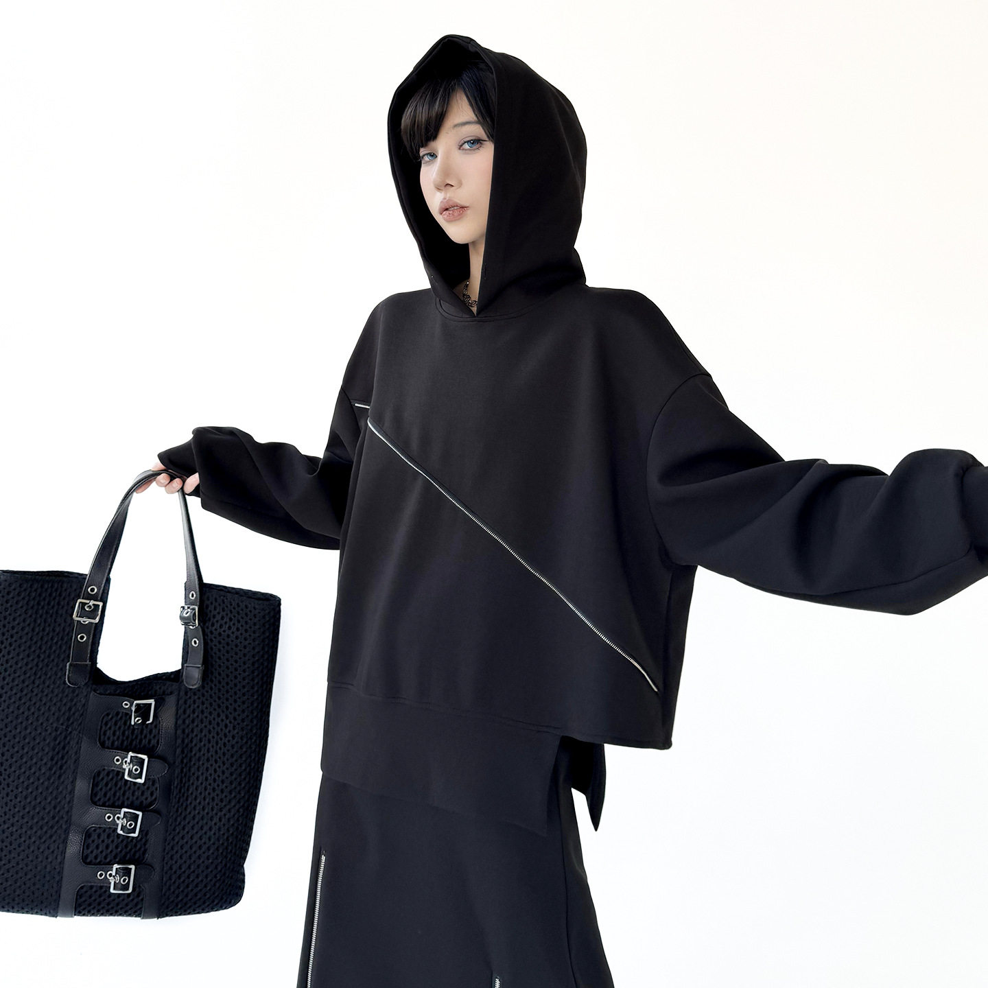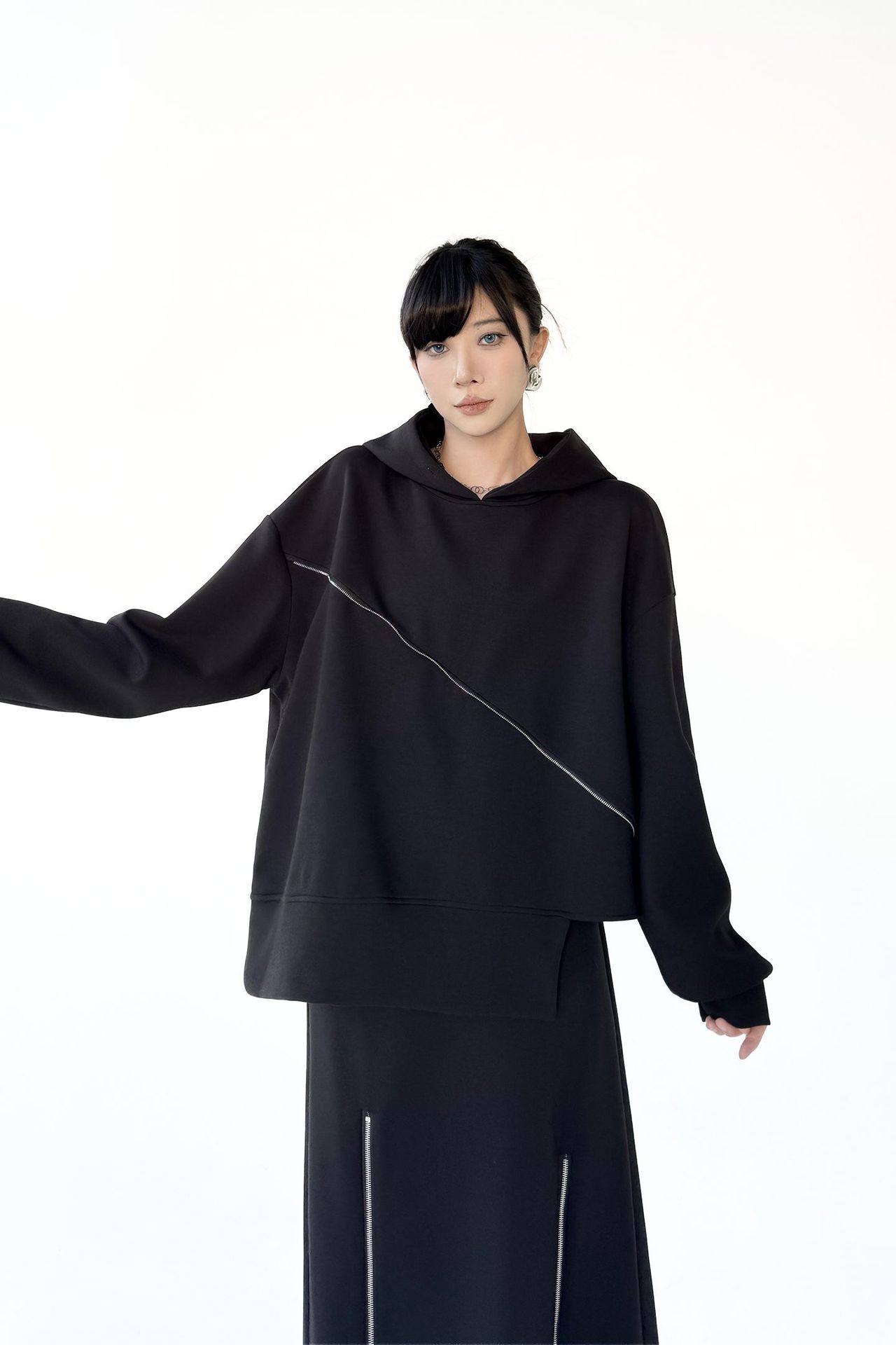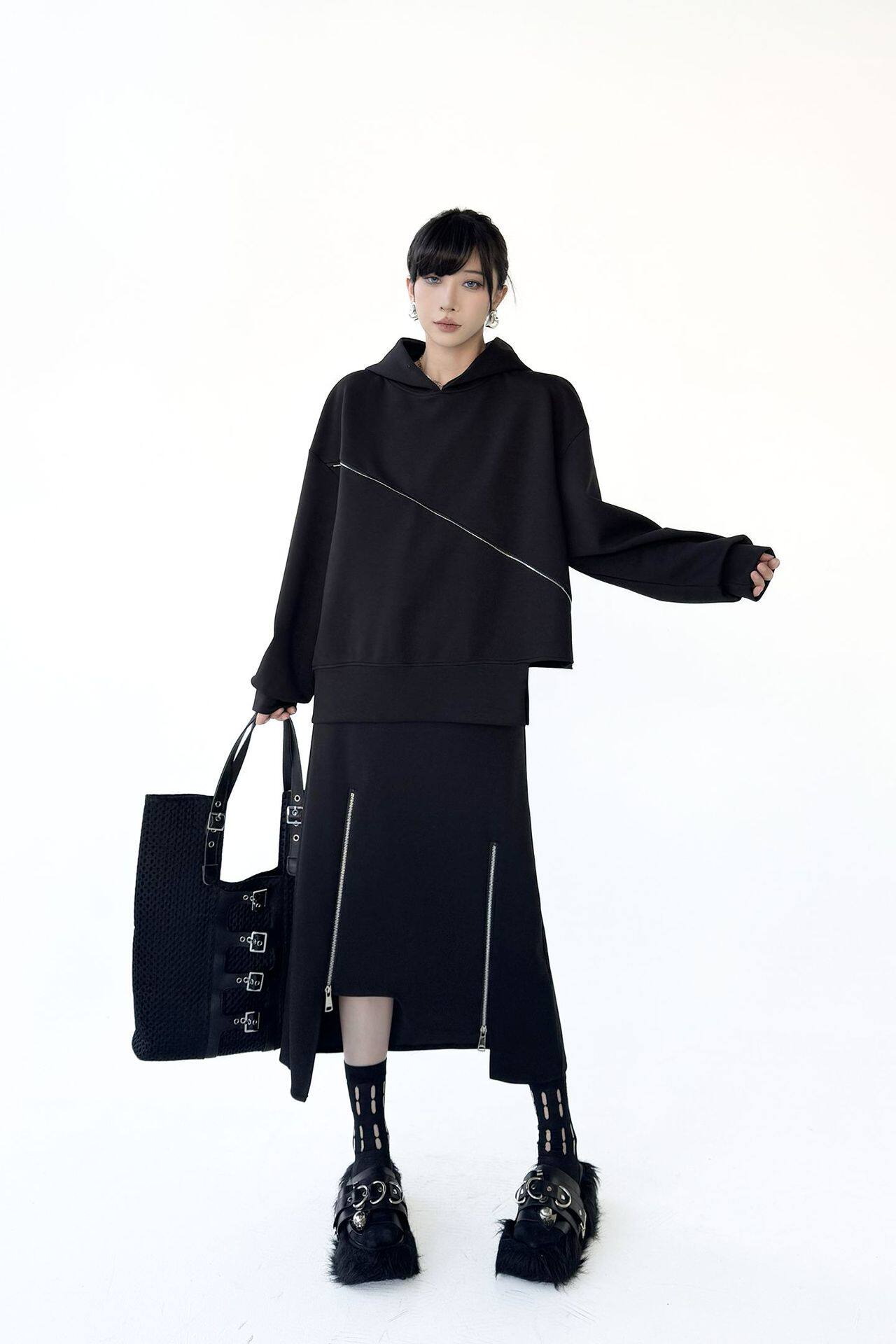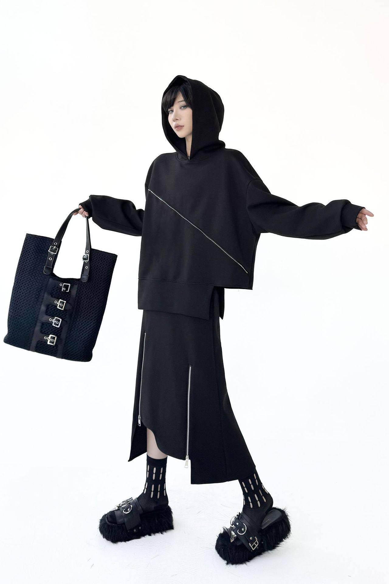 【セットアップ】【単品注文】モード系 ミニマルデザイン 春新作 ルーズ フーディー+ウエストゴムスカート 上下セット【AHシリーズ】