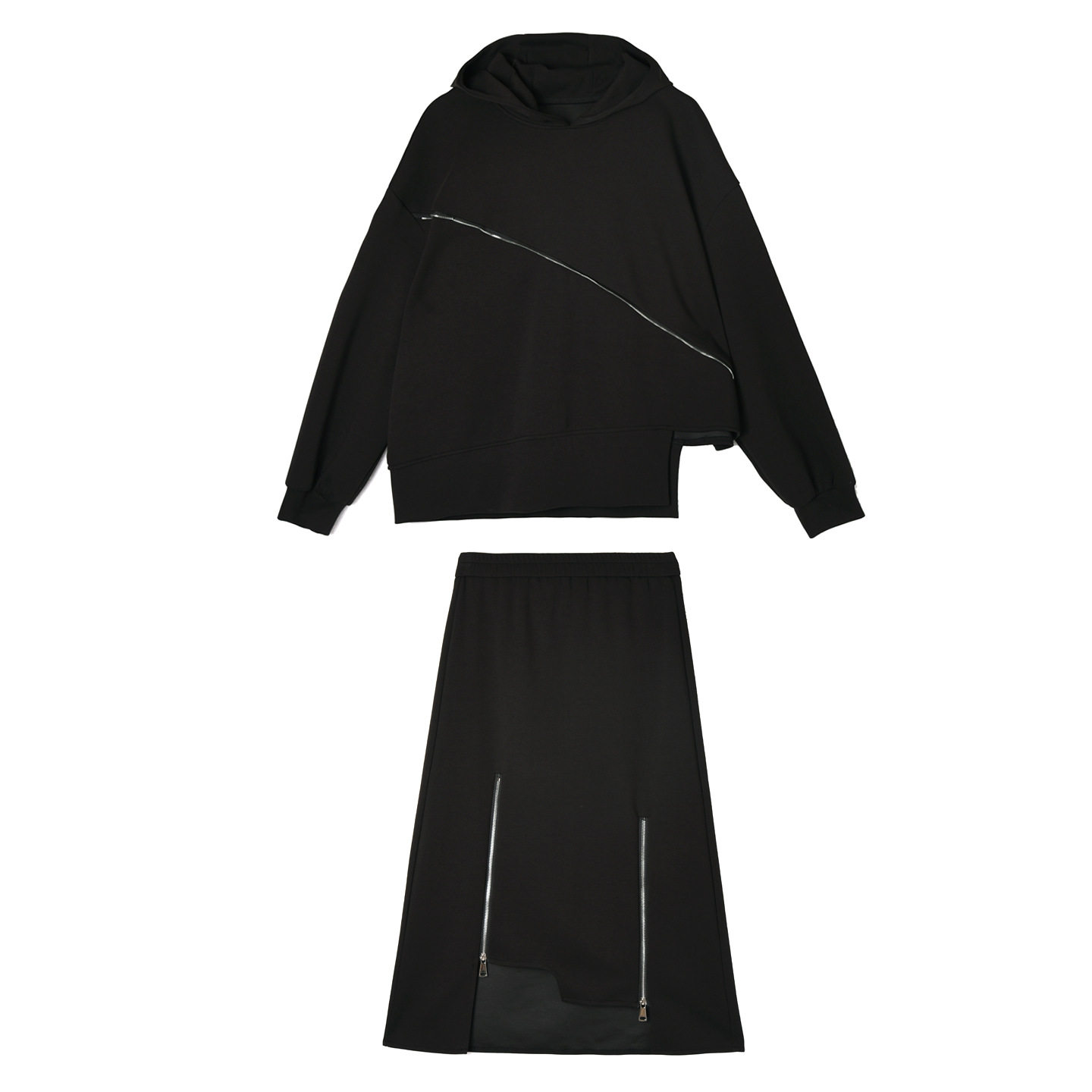 【商品名】【セットアップ】【単品注文】モード系 ミニマルデザイン 春新作 ルーズ フーディー+ウエストゴムスカート 上下セット【AHシリーズ】