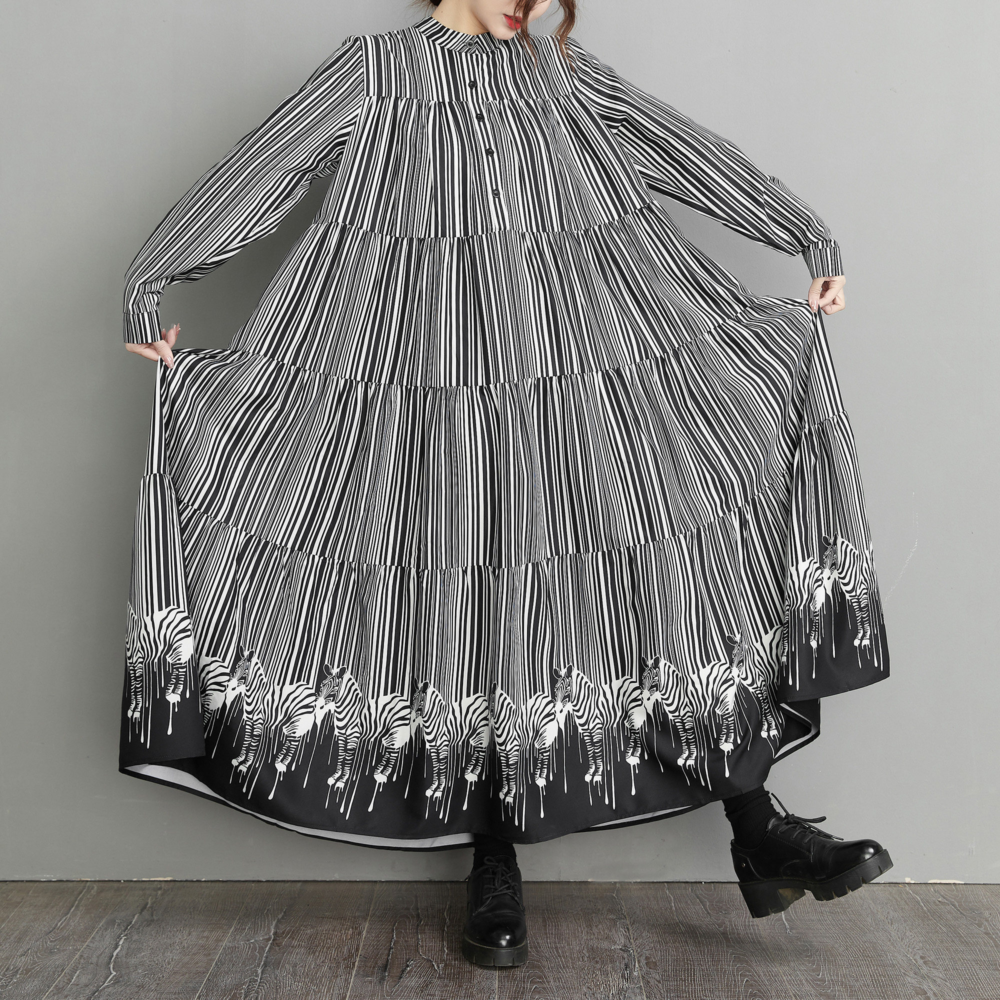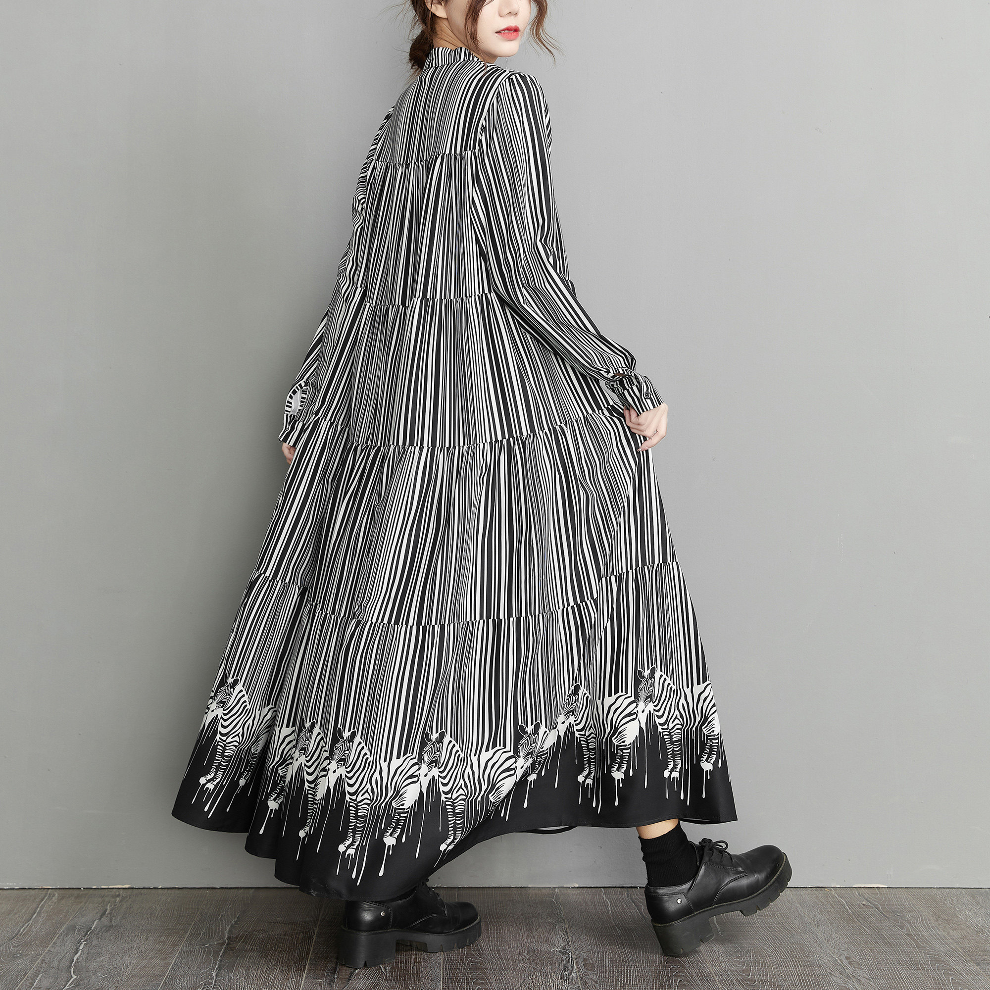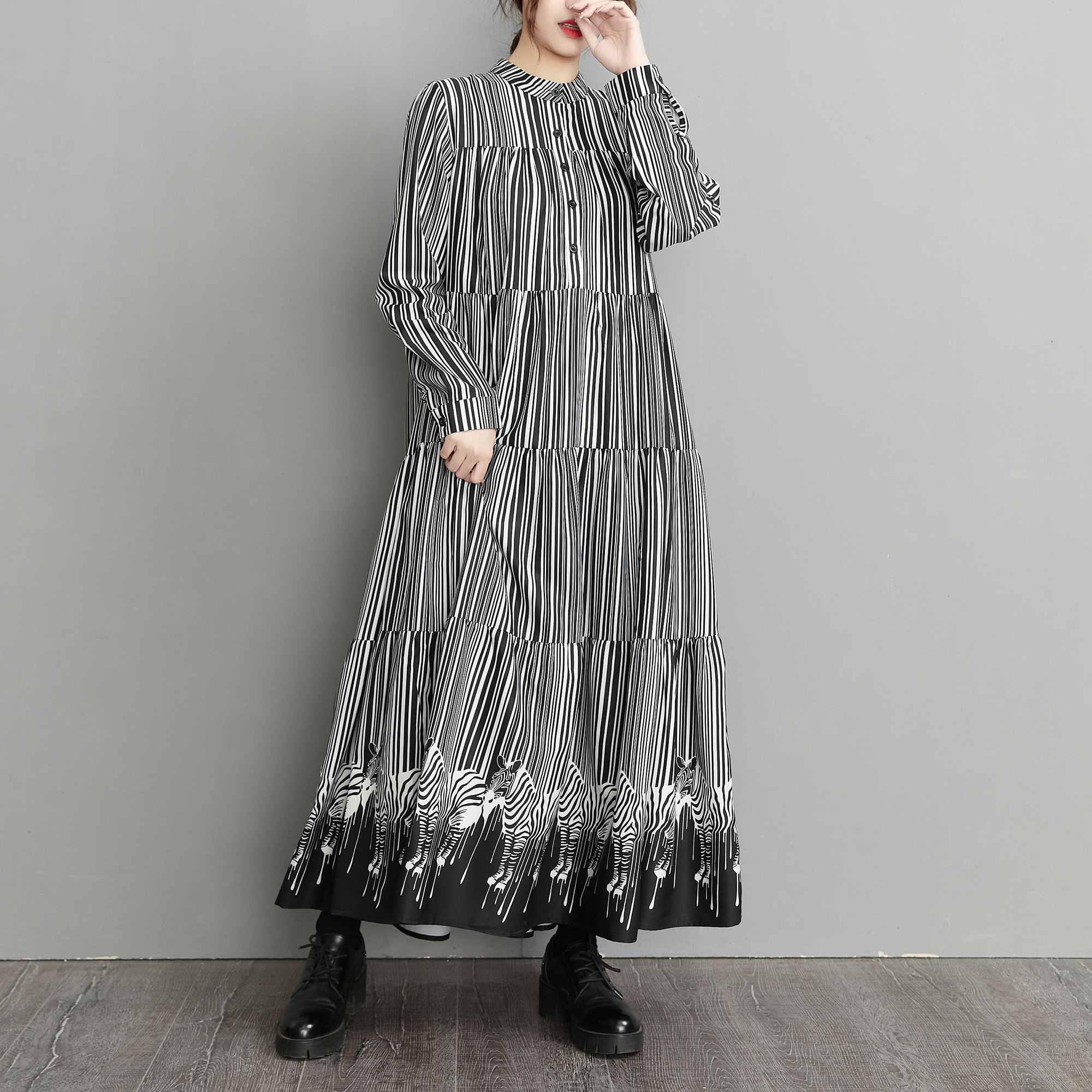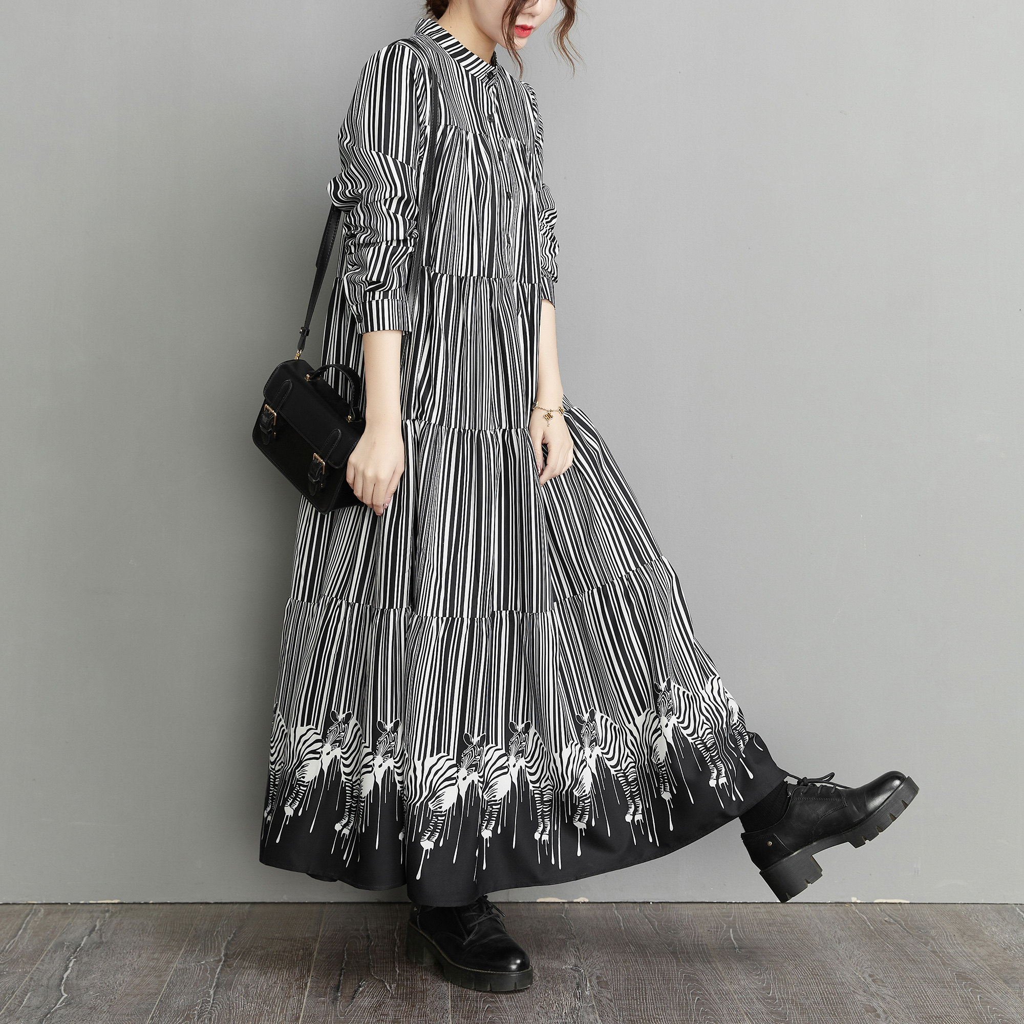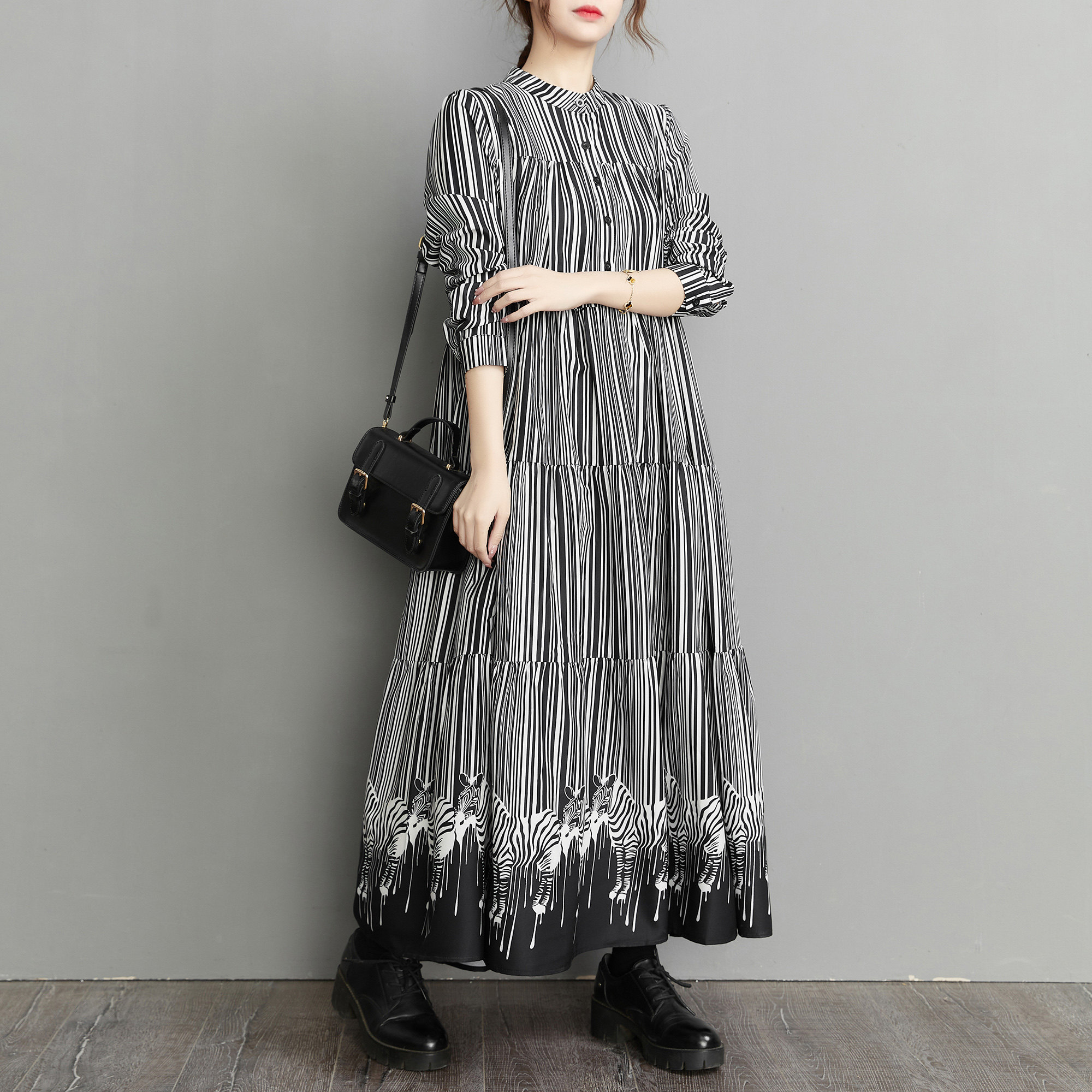 【60%OFF⭐️先行スタート!】【ワンピース】春 秋 冬 大きいサイズ プリント レトロ 長袖 ワンピース【SHシリーズ】