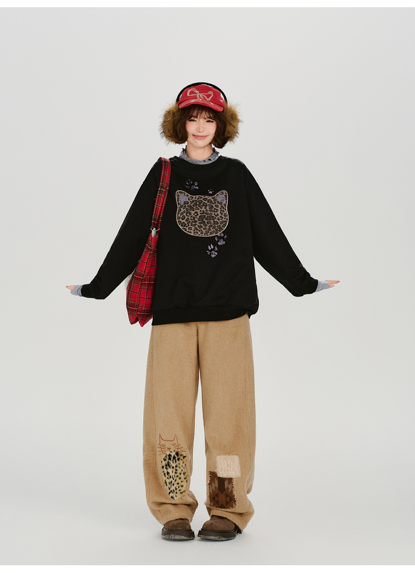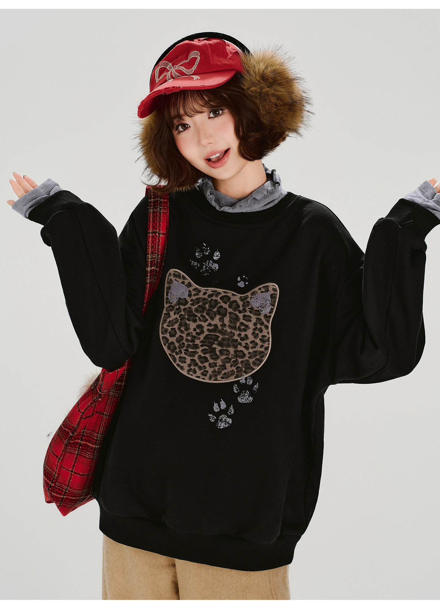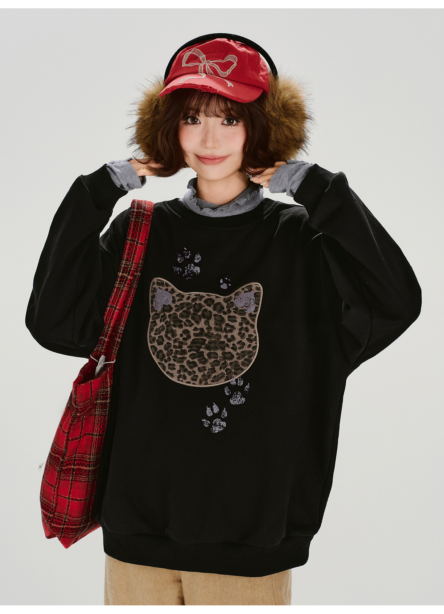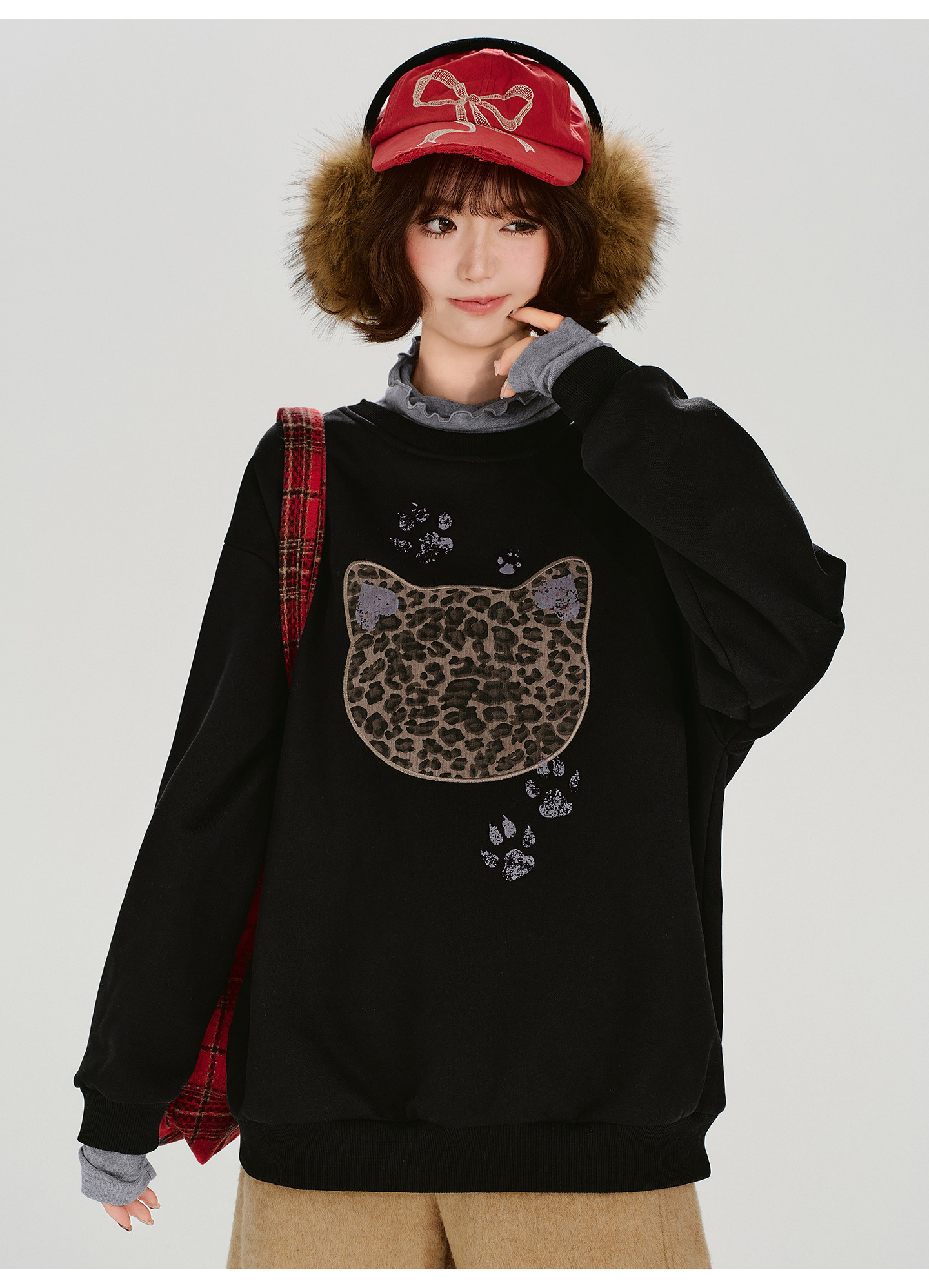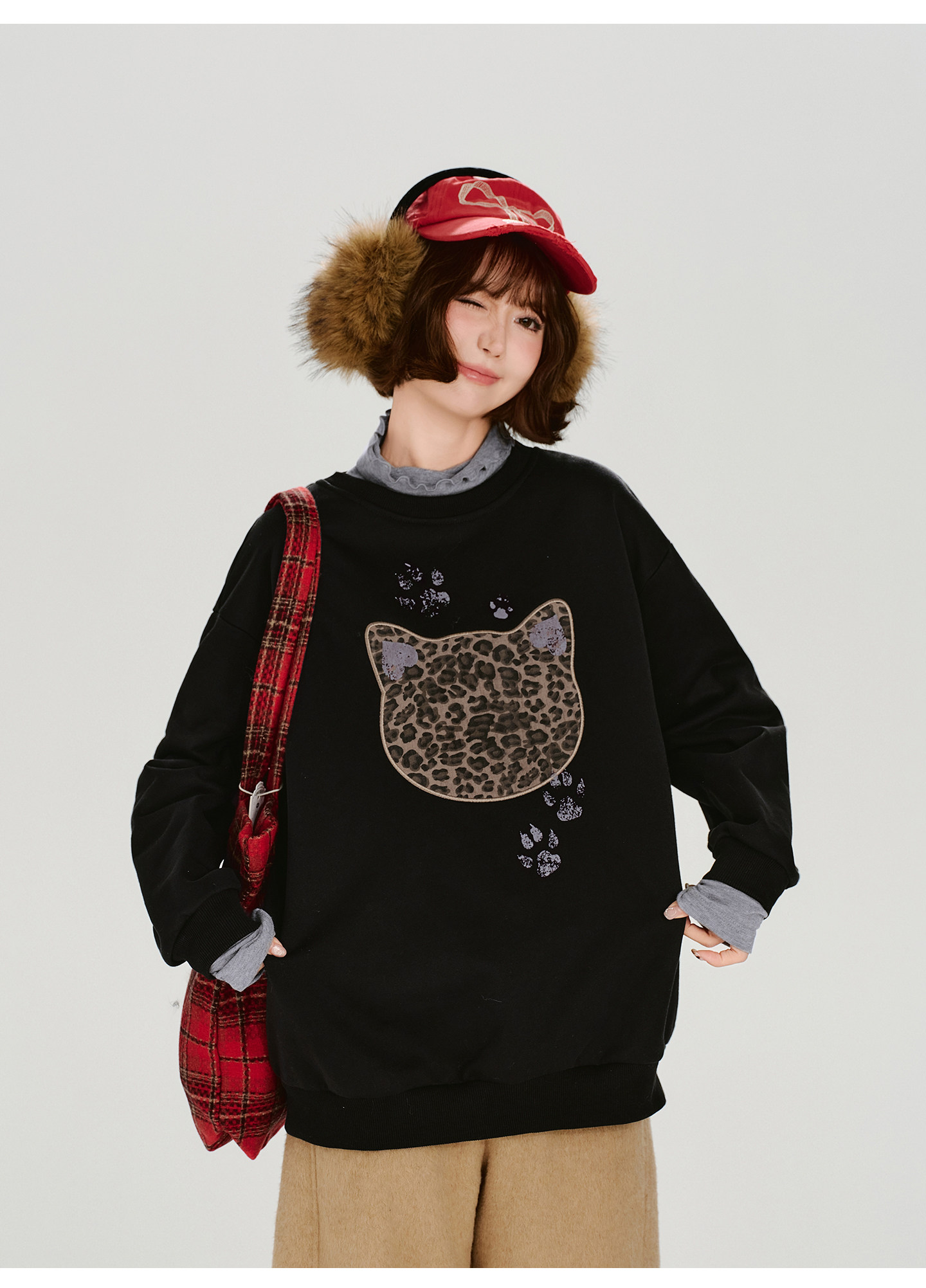 2/2~2/5⭐️期間限定 60%OFF !🏆 売れ筋No.1【トップス】ユニセックス対応 レトロ 豹柄 猫 ゆったり ラウンドネック ネコ柄 ニットセーター【FCシリーズ】