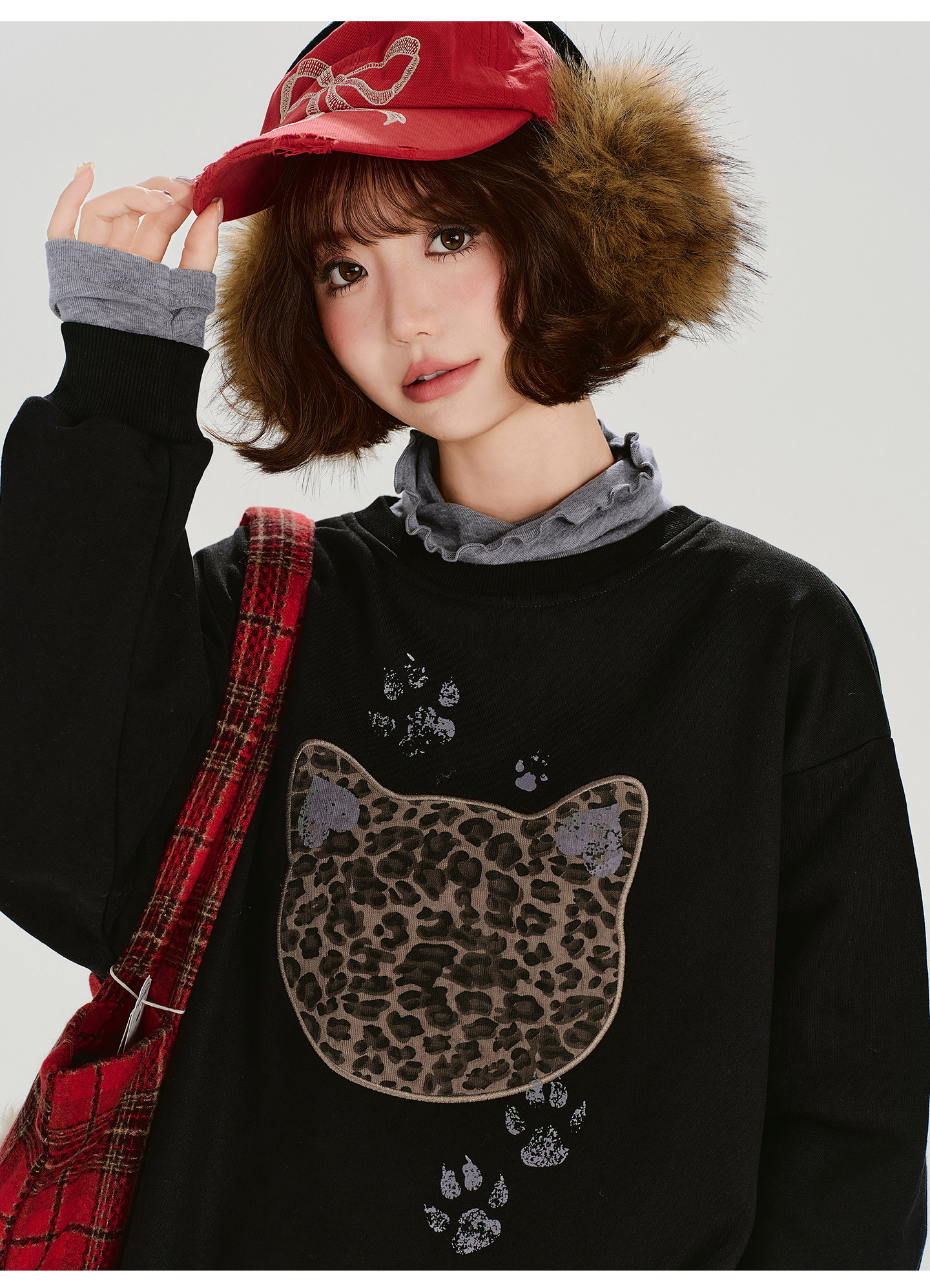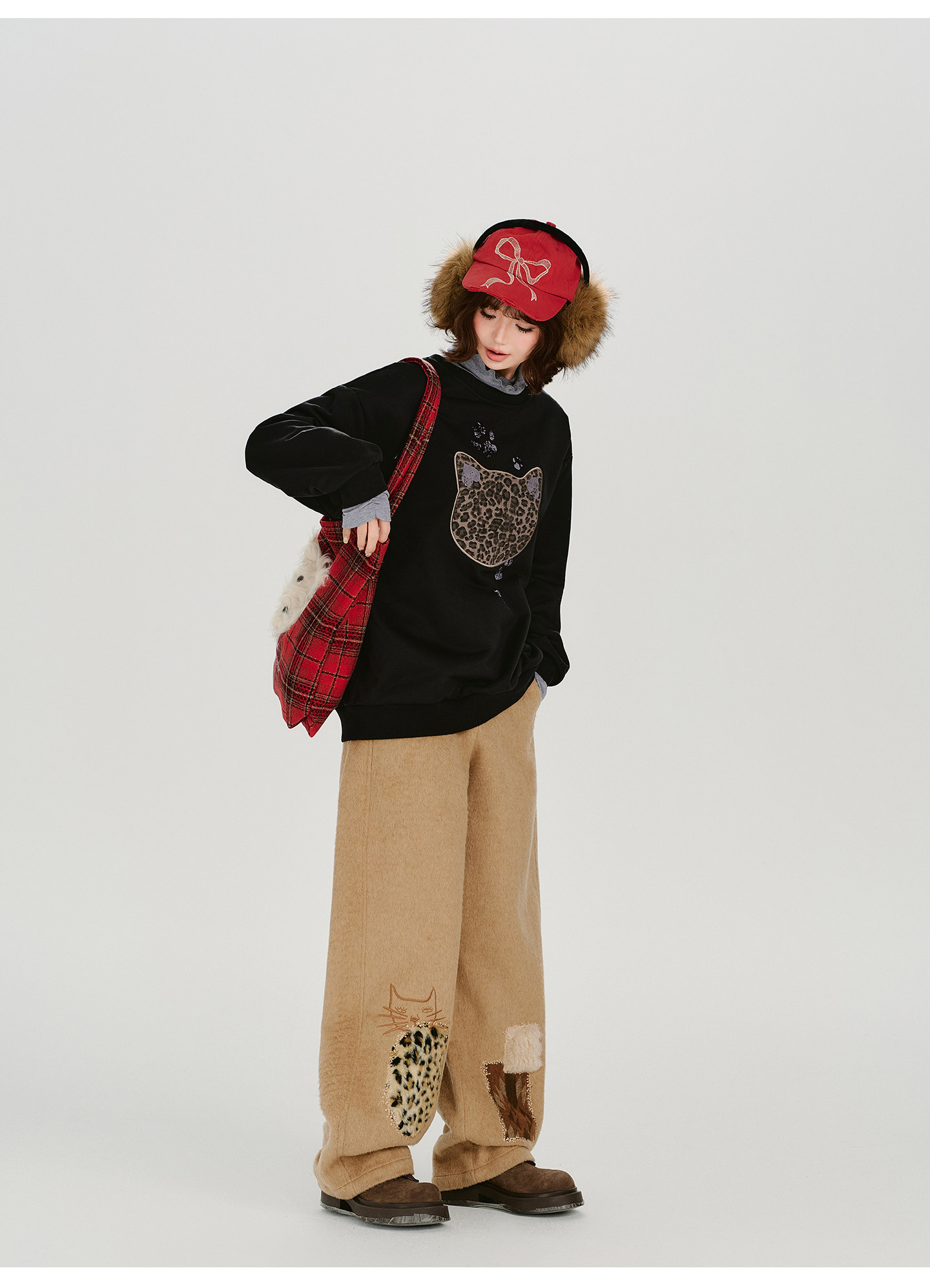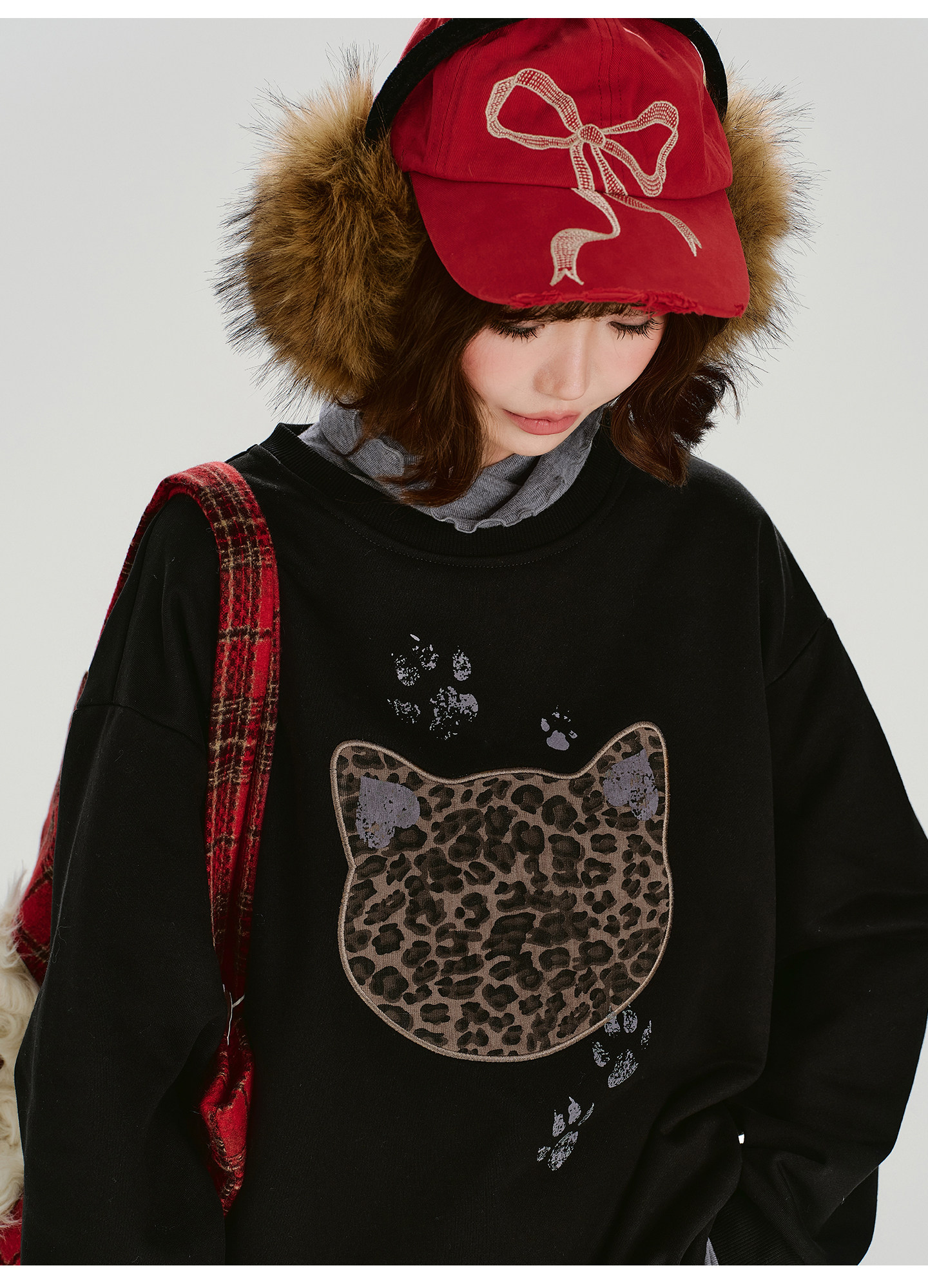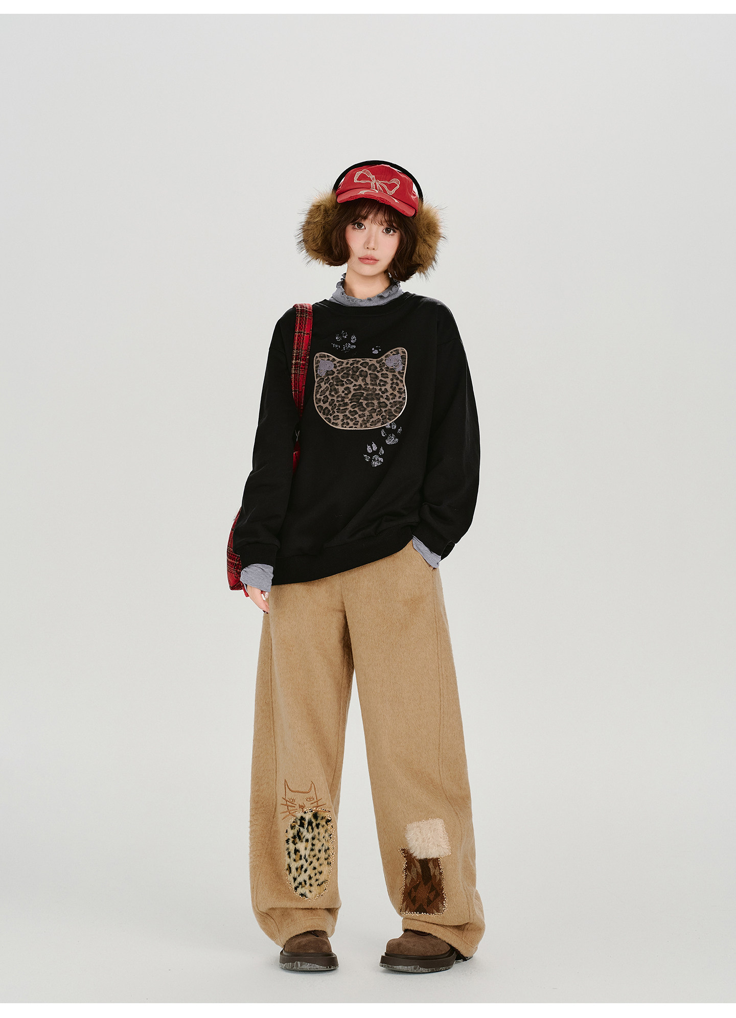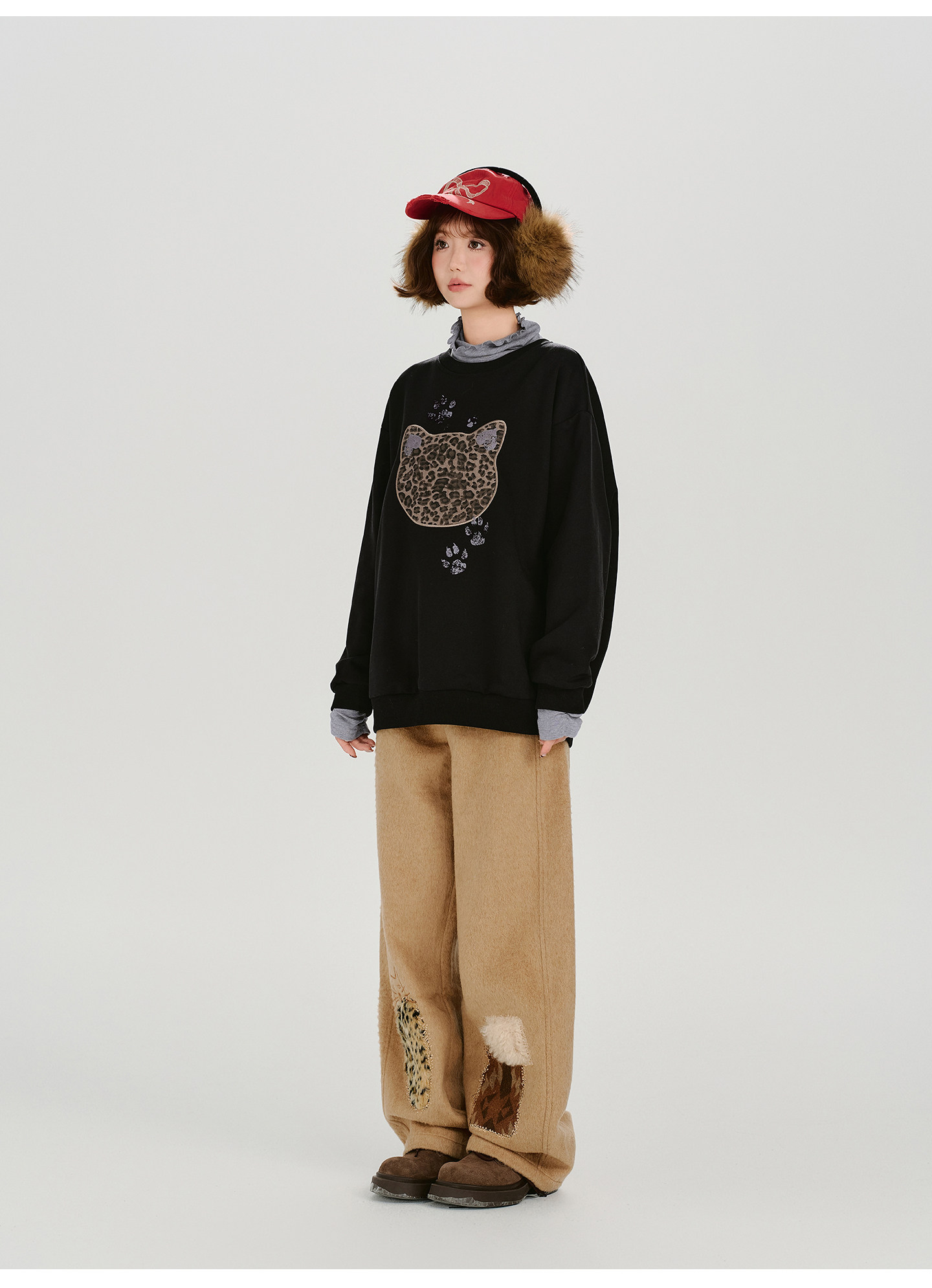 2/2~2/5⭐️期間限定 60%OFF !🏆 売れ筋No.1【トップス】ユニセックス対応 レトロ 豹柄 猫 ゆったり ラウンドネック ネコ柄 ニットセーター【FCシリーズ】