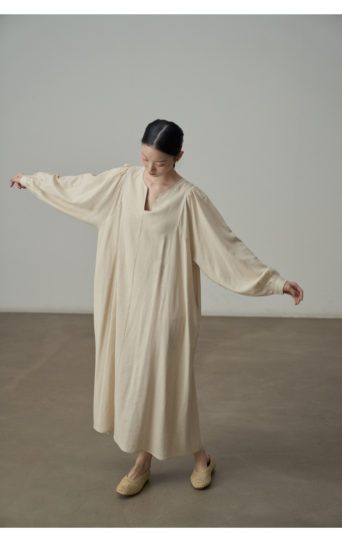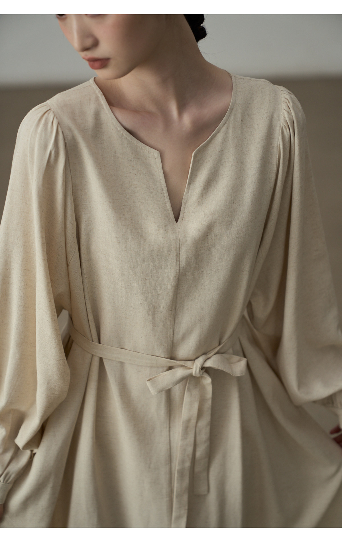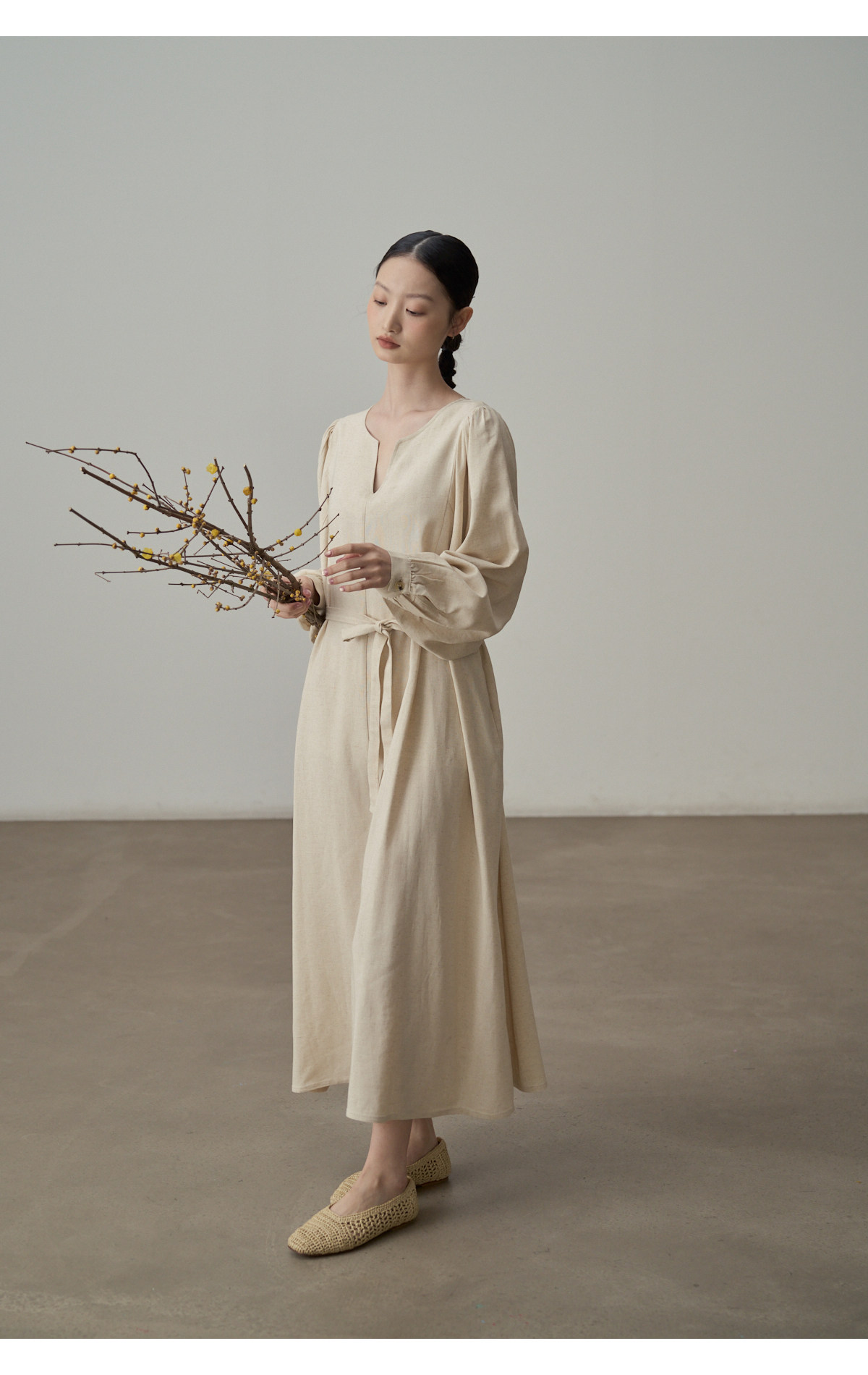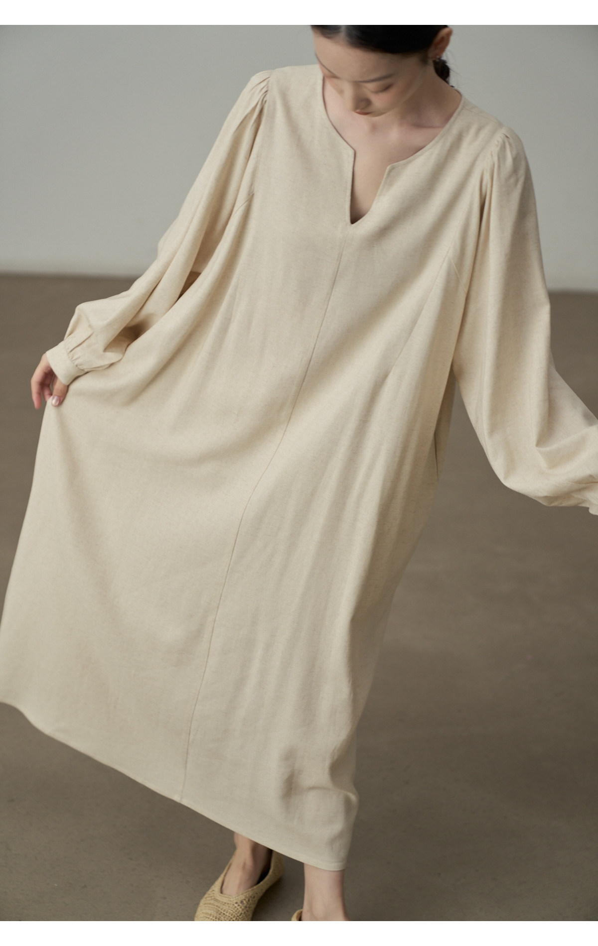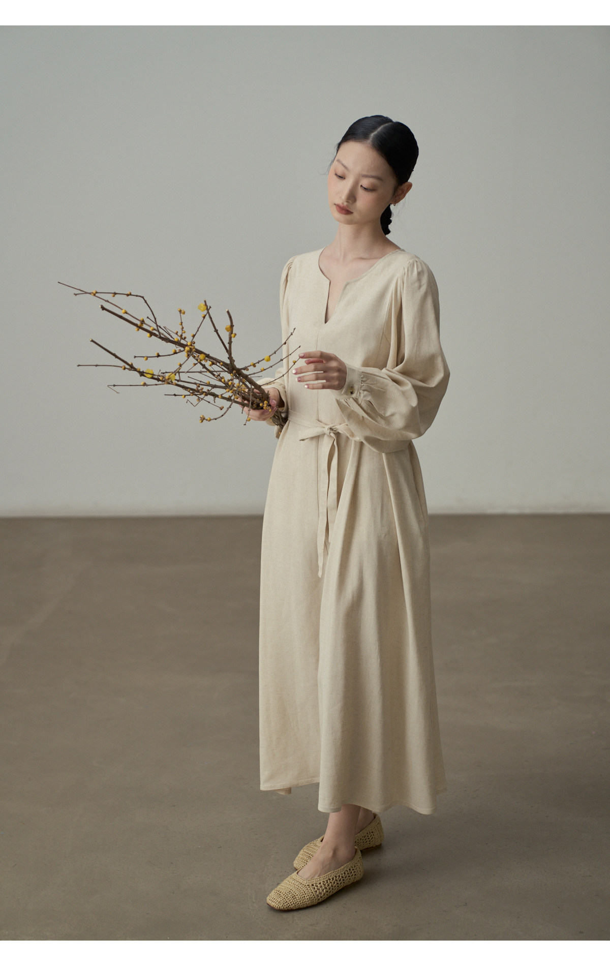 【商品名】【ワンピース】ナチュラルテイスト Vネック 上品な雰囲気 長袖 ワンピース【JZシリーズ】