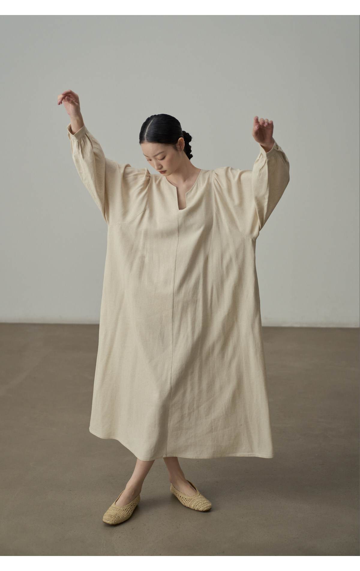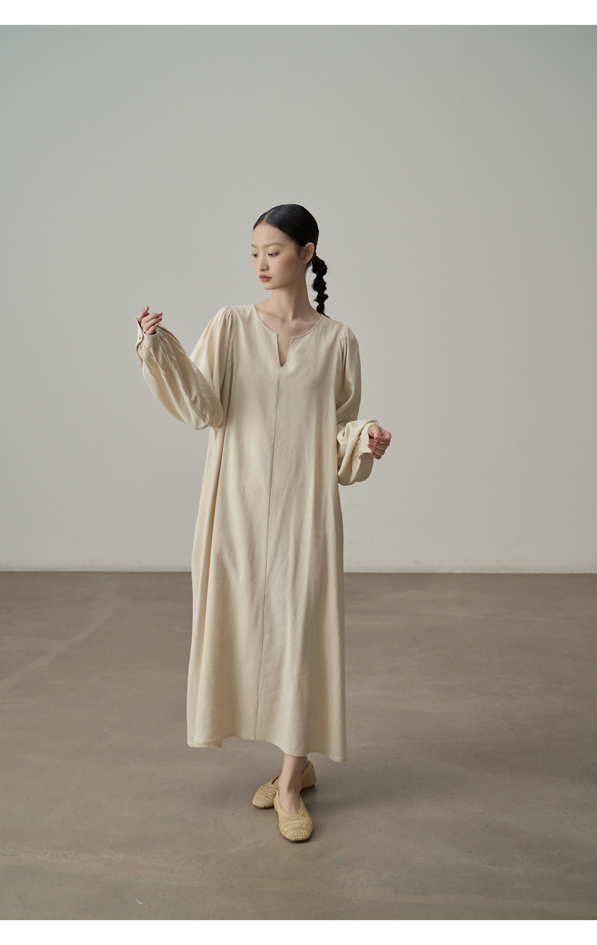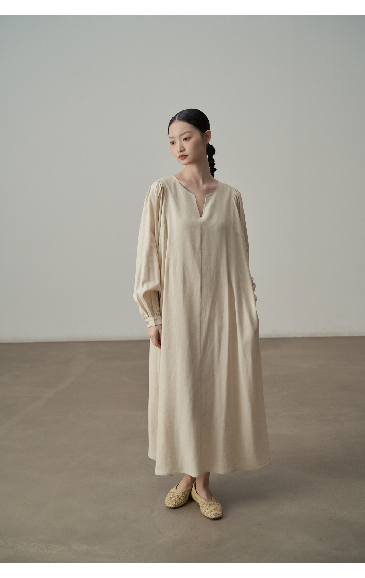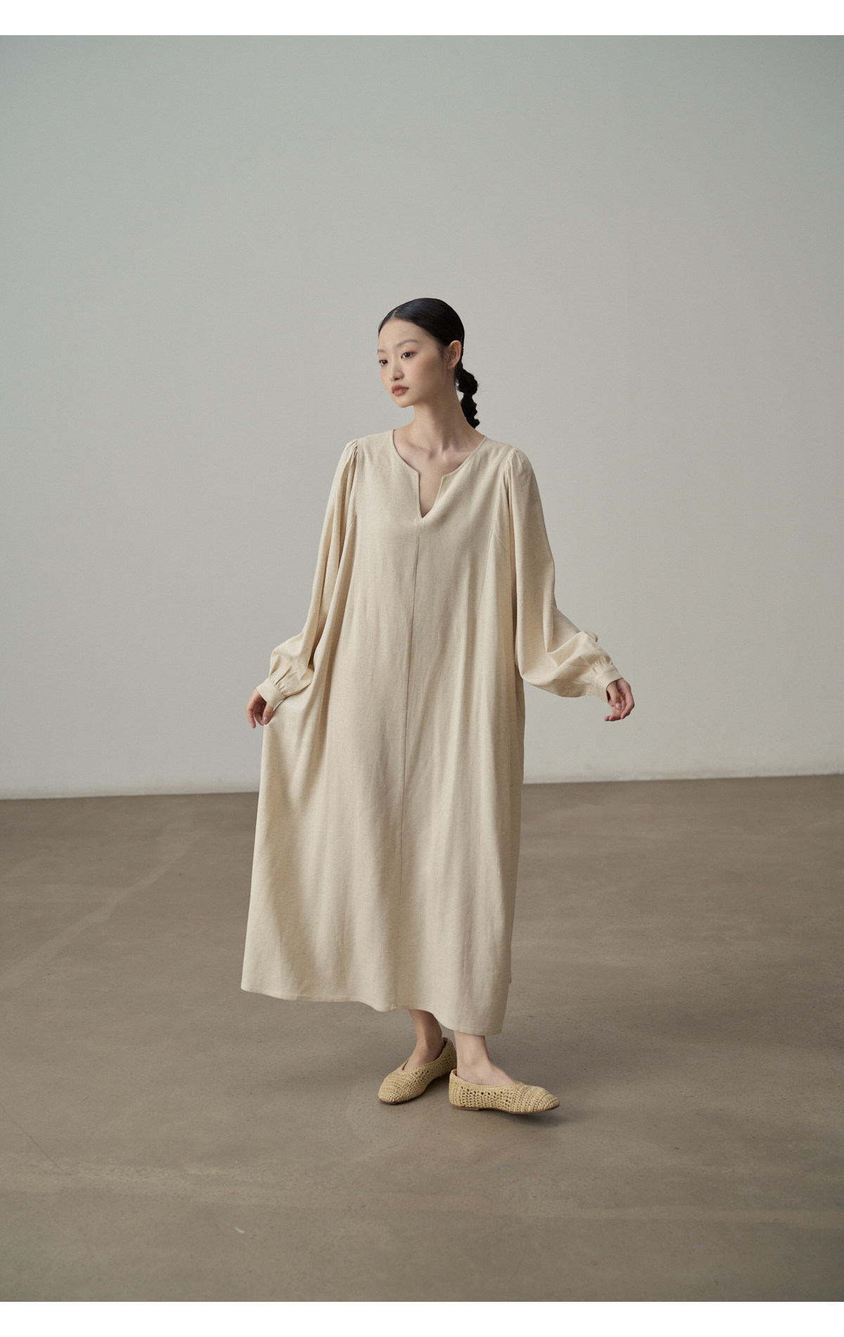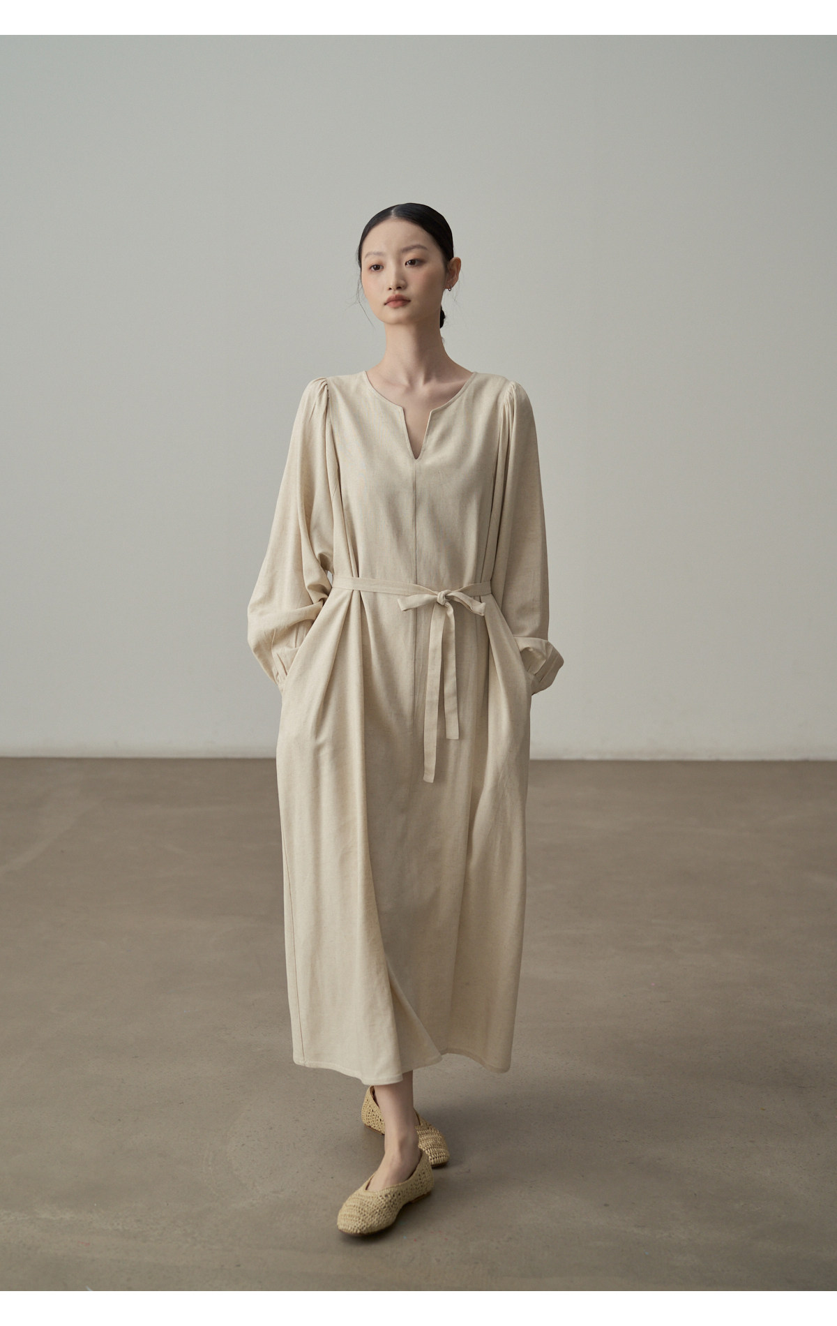 【商品名】【ワンピース】ナチュラルテイスト Vネック 上品な雰囲気 長袖 ワンピース【JZシリーズ】