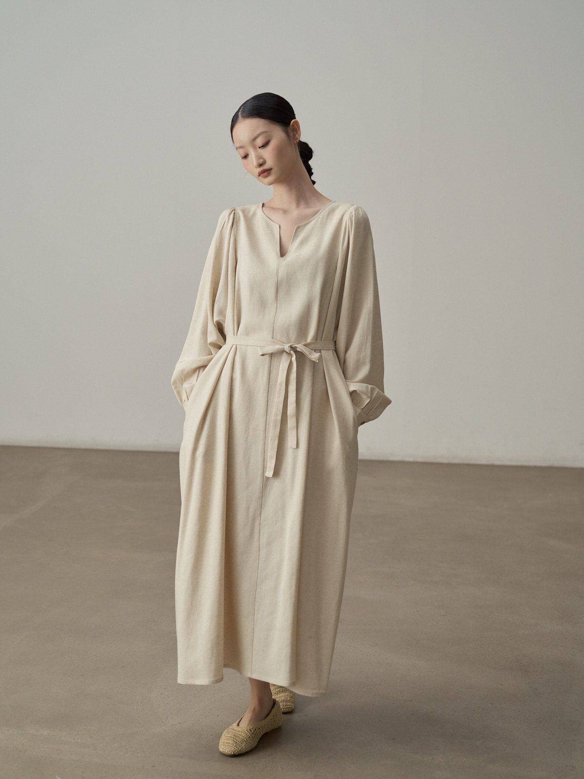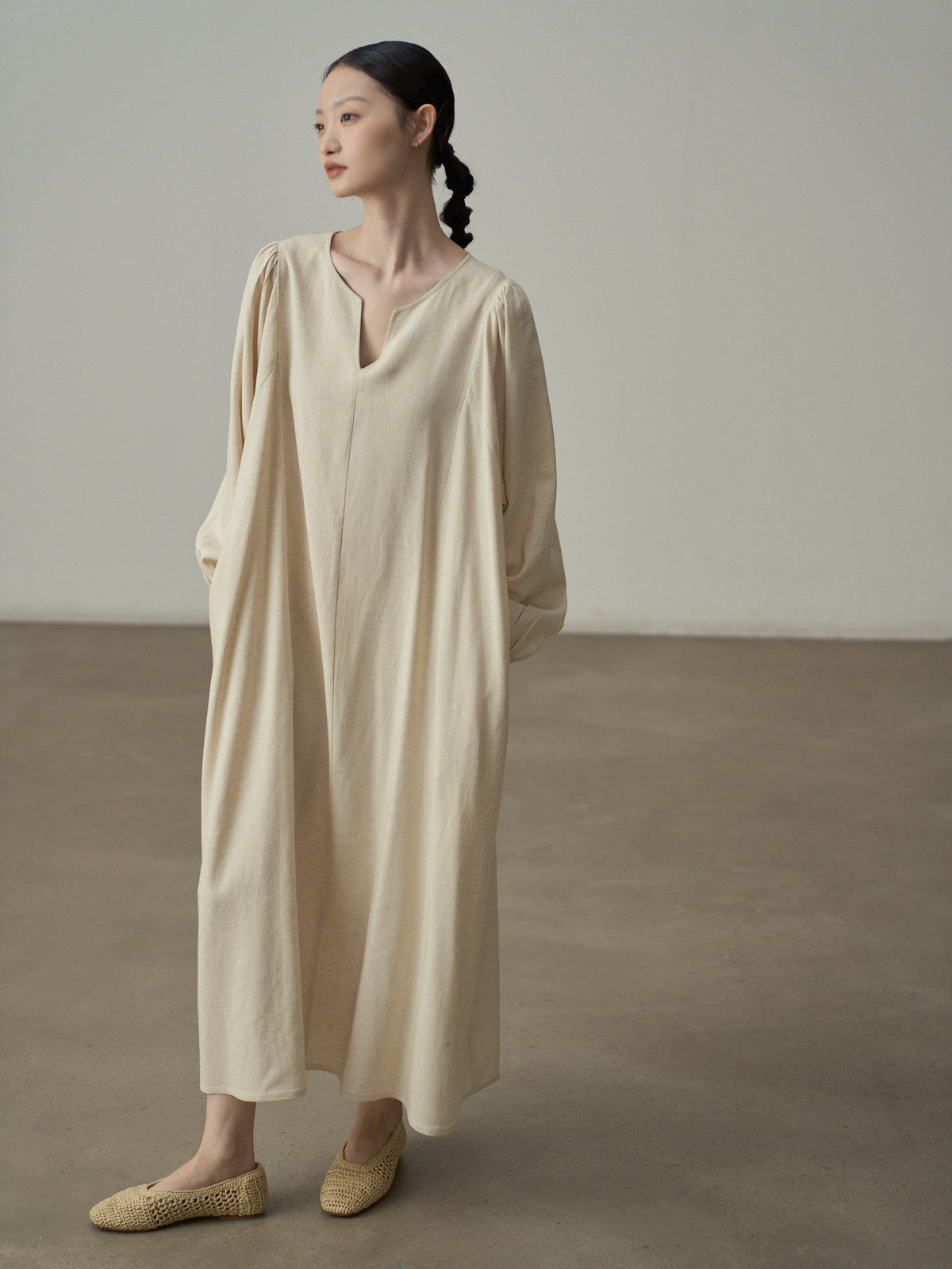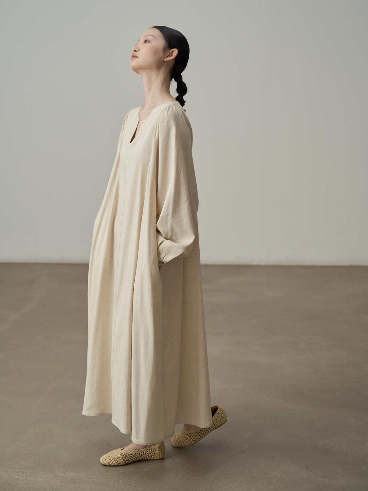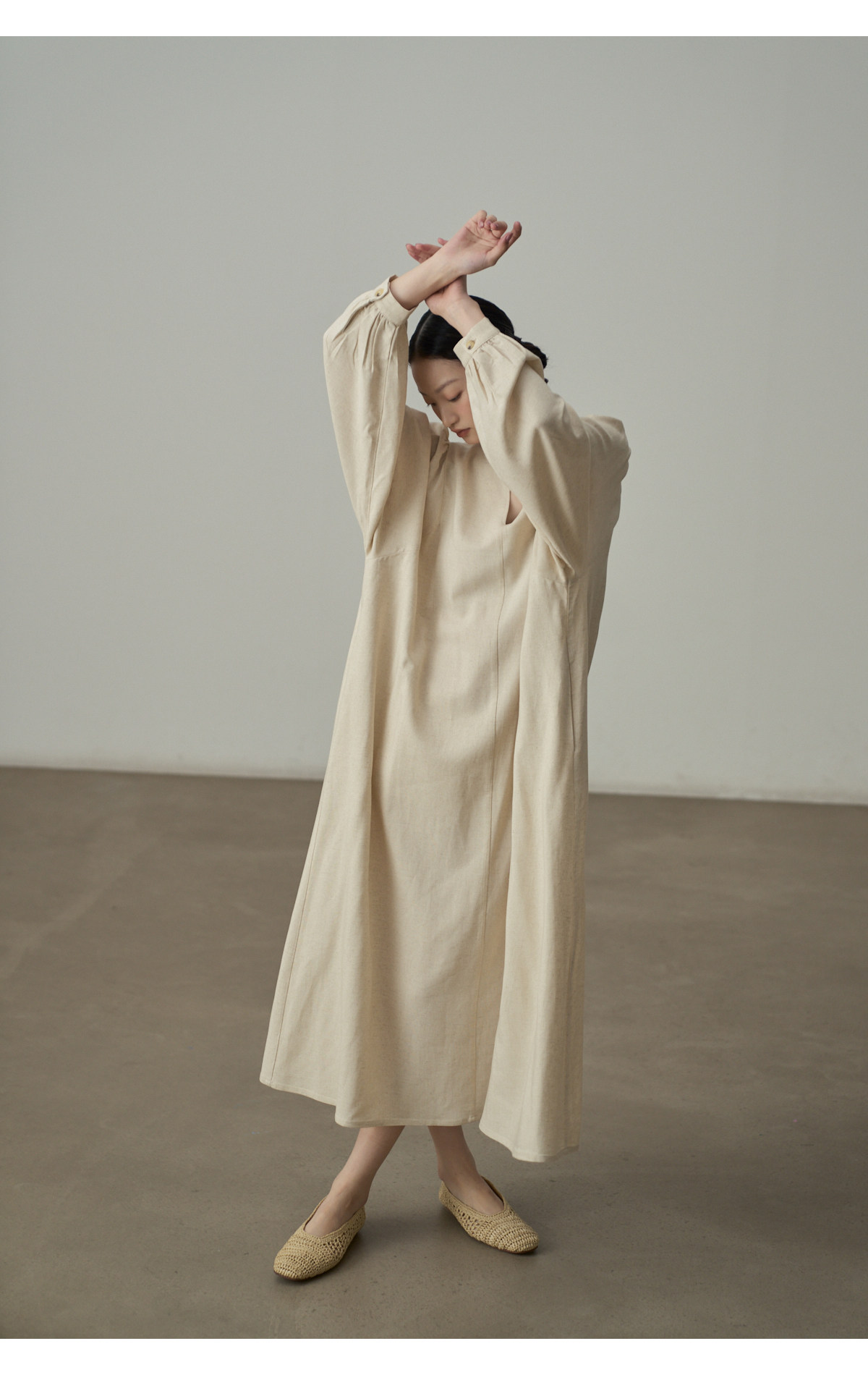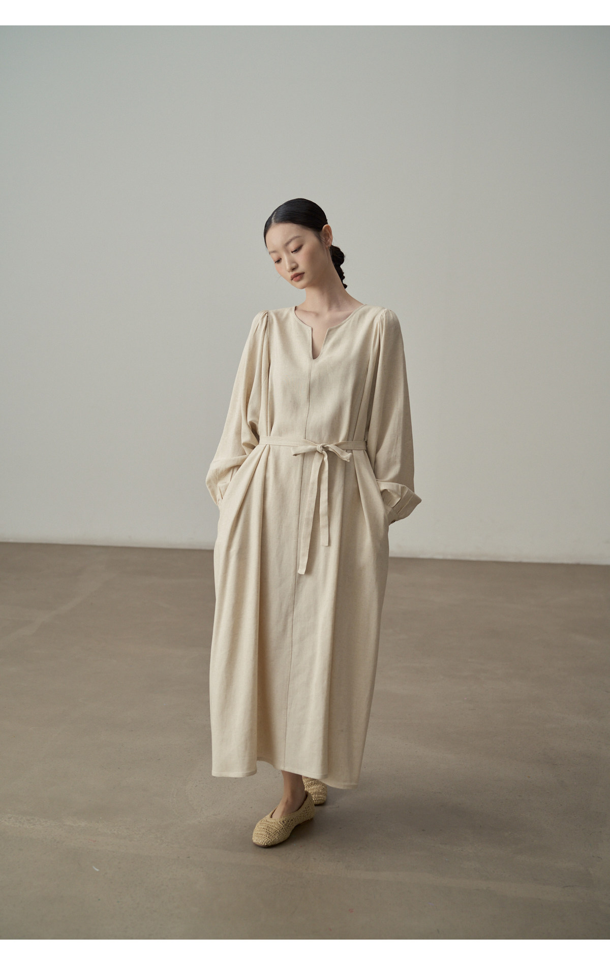 【商品名】【ワンピース】ナチュラルテイスト Vネック 上品な雰囲気 長袖 ワンピース【JZシリーズ】