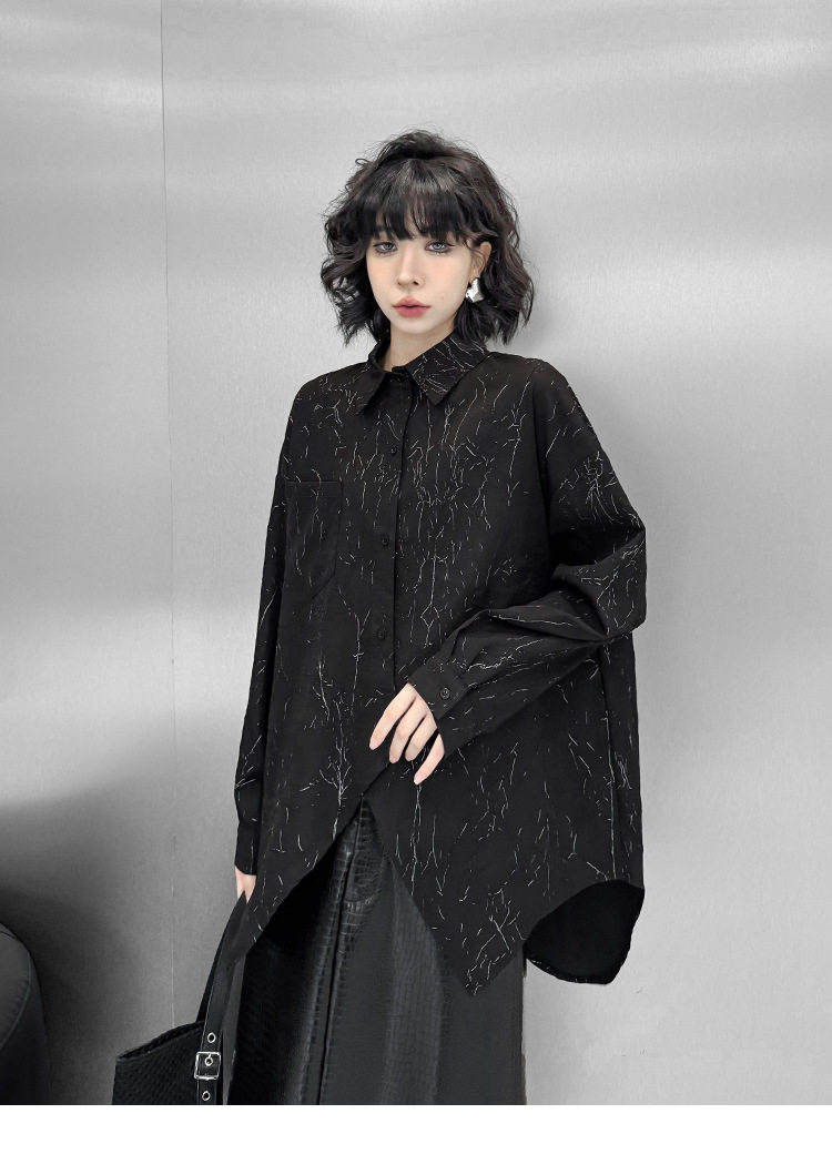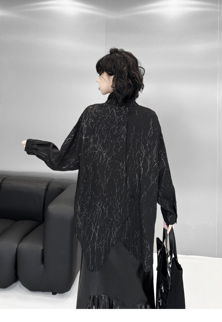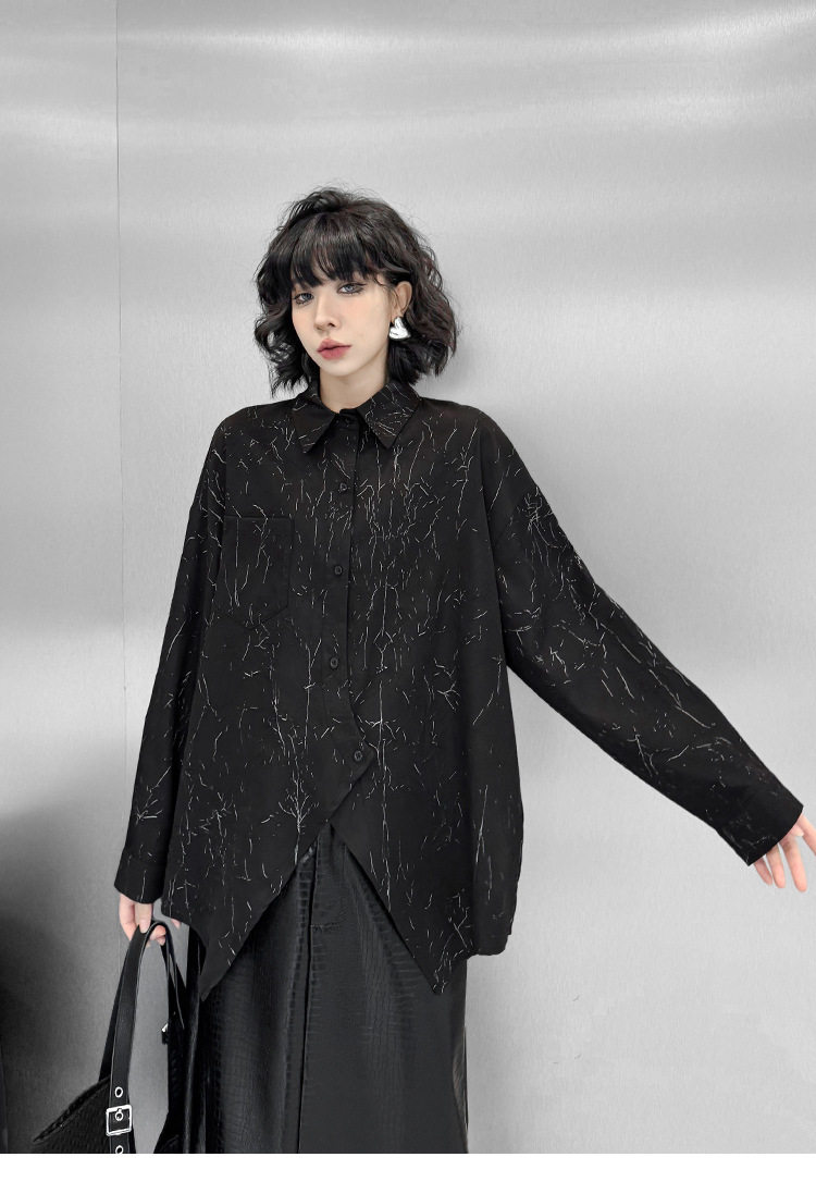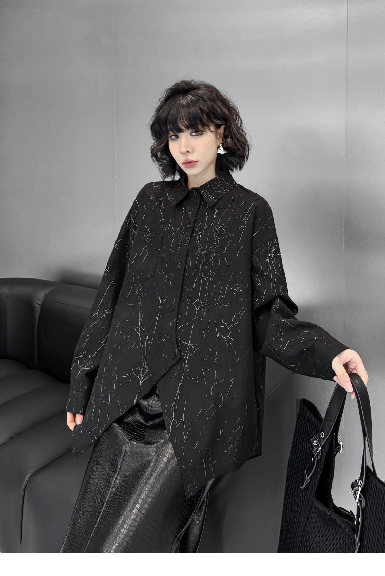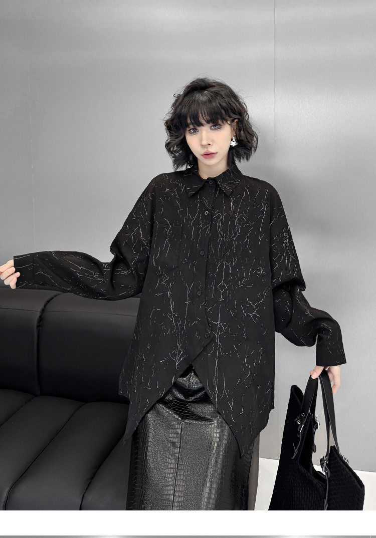 【商品名】【トップス】箔プリント加工 不規則シャツ レディース 春秋 ゆったり トップス ファッション【AHシリーズ】