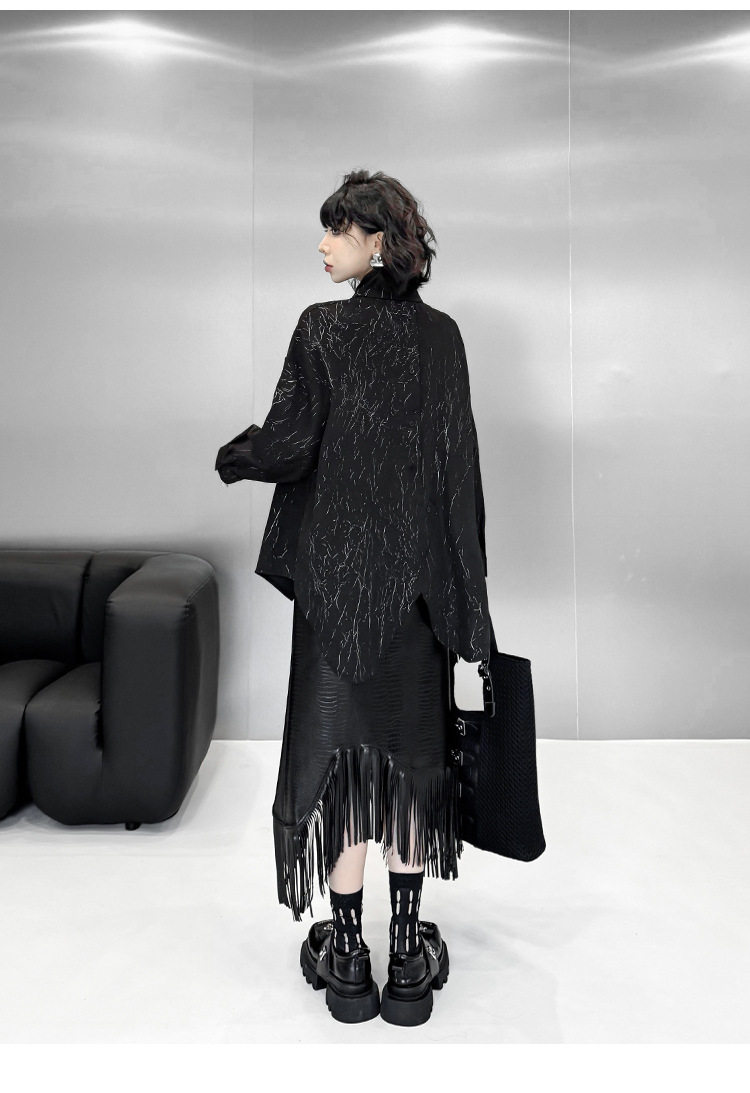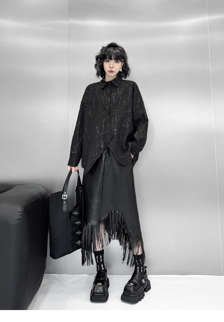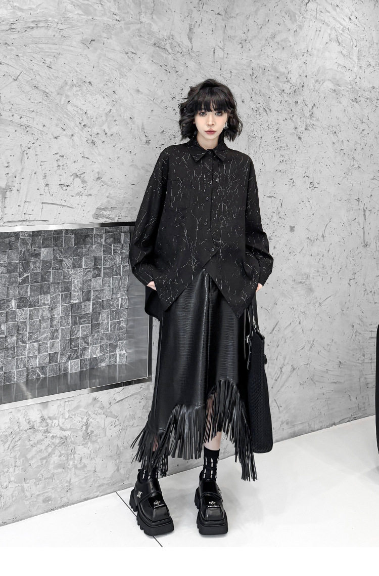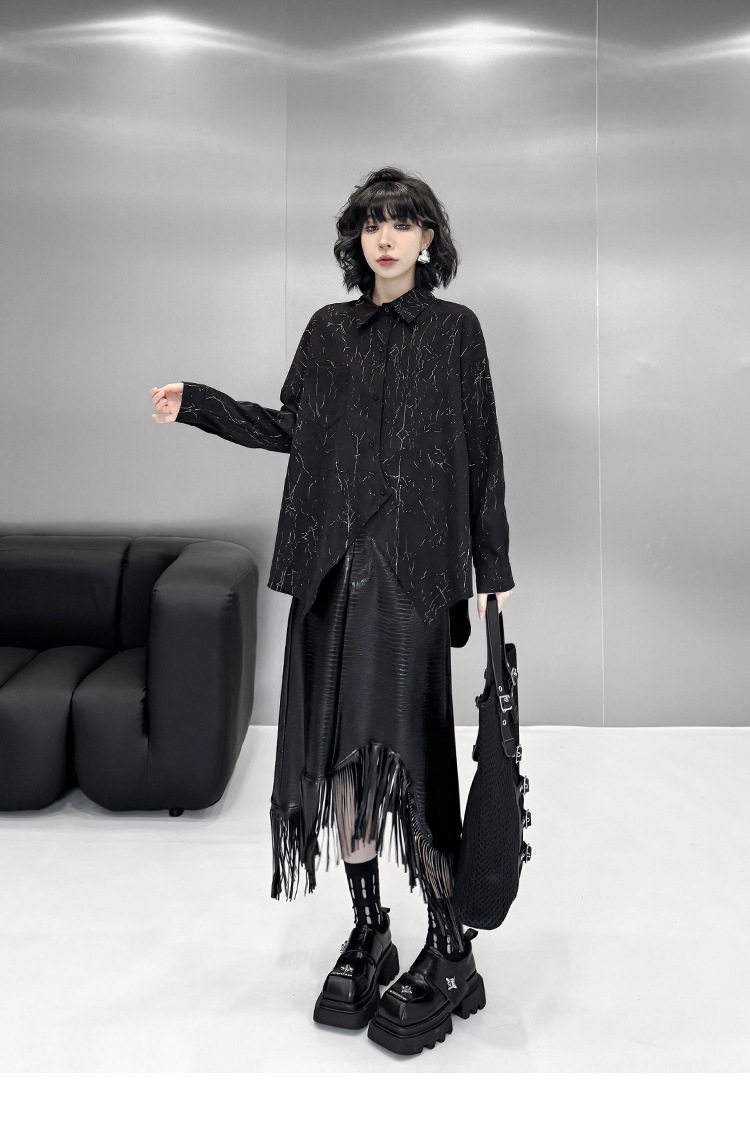 【商品名】【トップス】箔プリント加工 不規則シャツ レディース 春秋 ゆったり トップス ファッション【AHシリーズ】