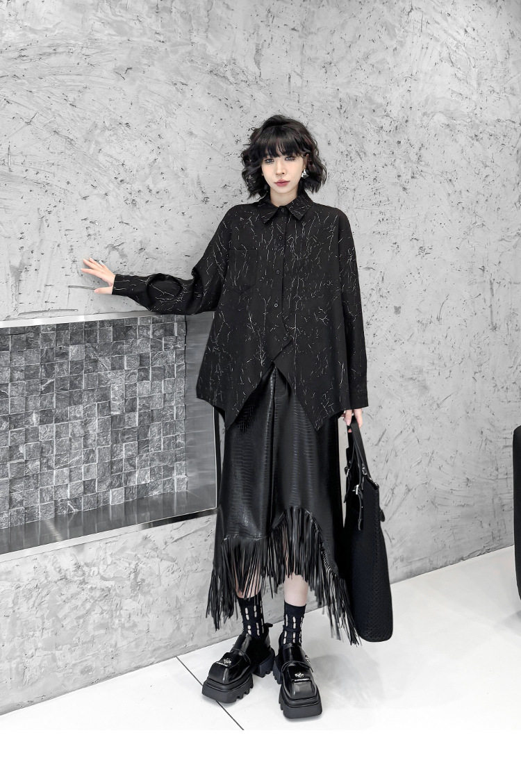 【トップス】箔プリント加工 不規則シャツ レディース 春秋 ゆったり トップス ファッション【AHシリーズ】