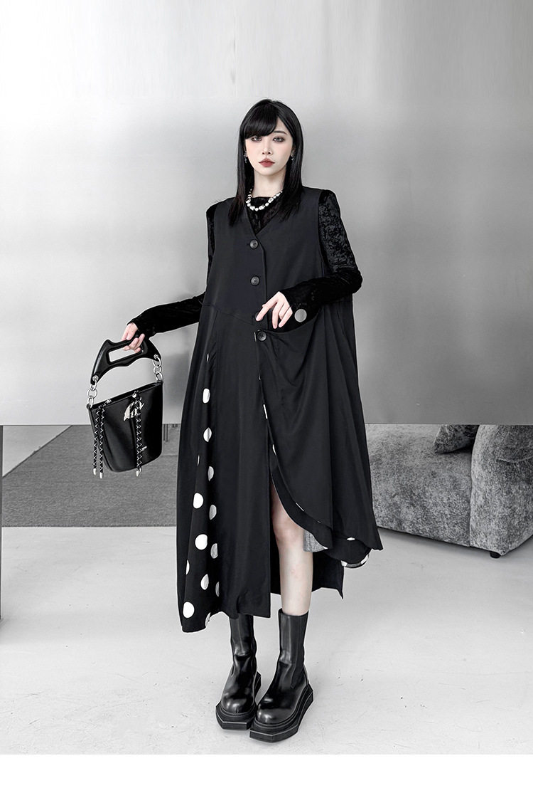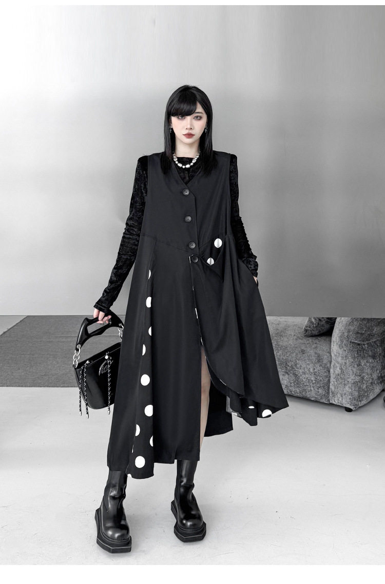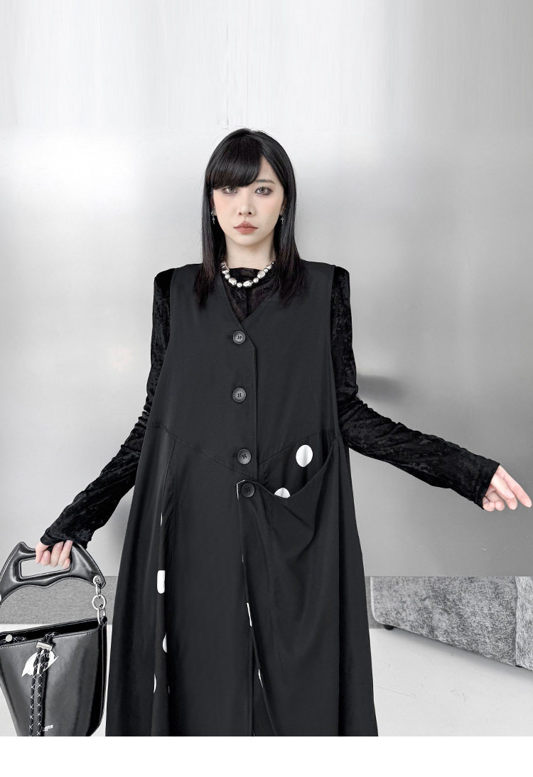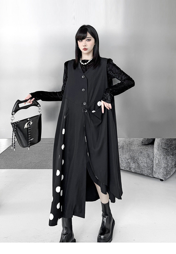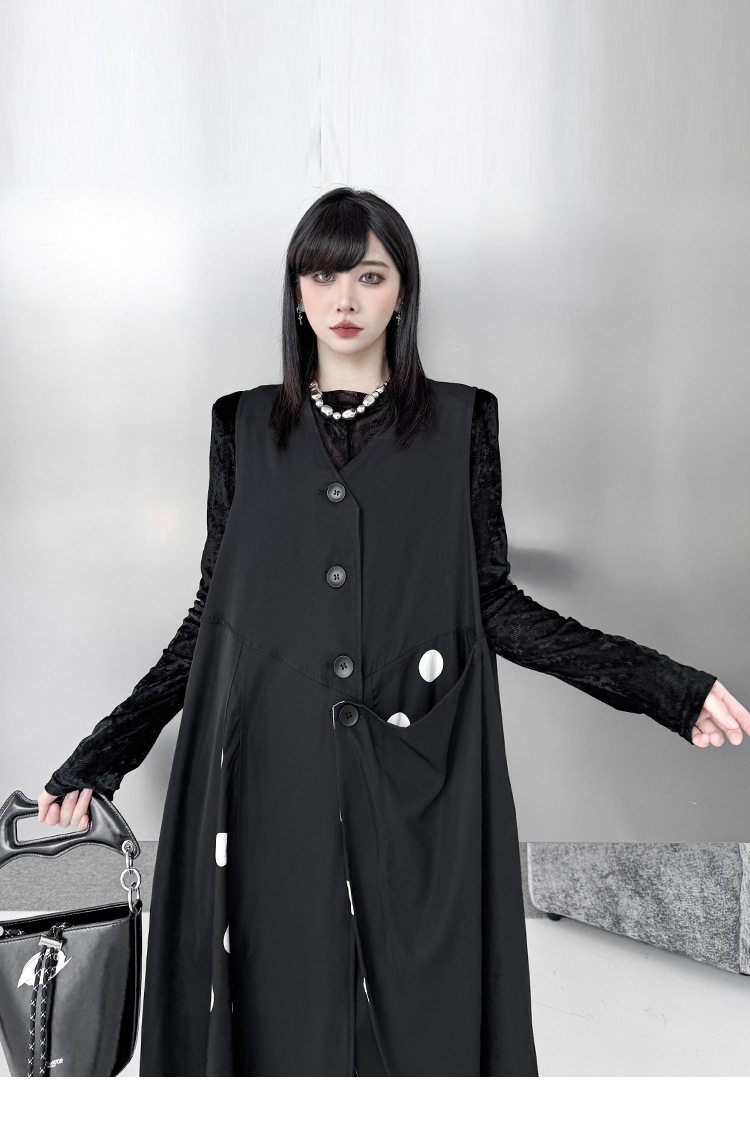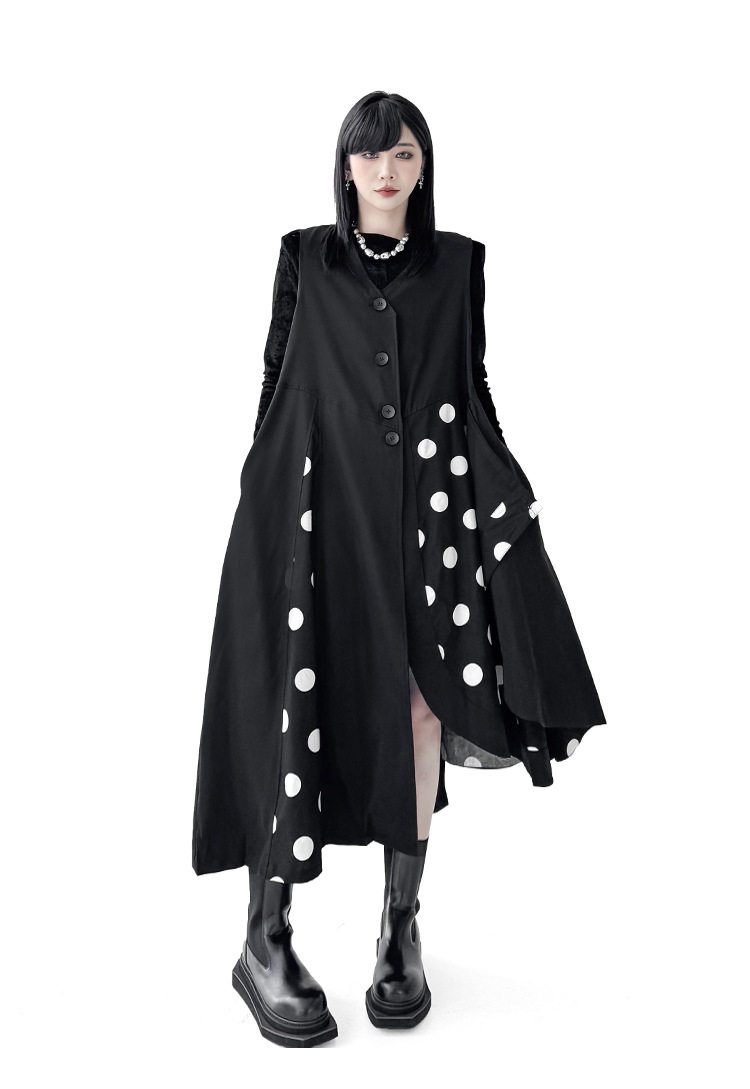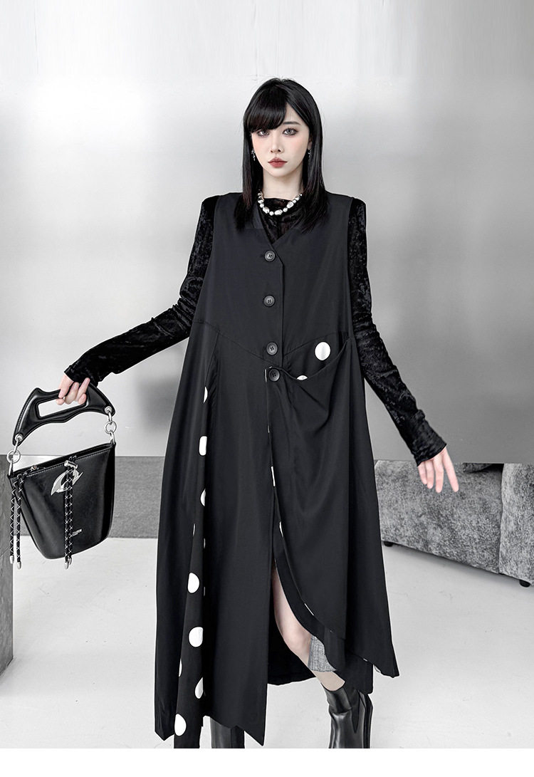 【商品名】【トップス】不規則デザイン ドット柄 ロングベスト レディース 春秋 新作 ファッション【AHシリーズ】