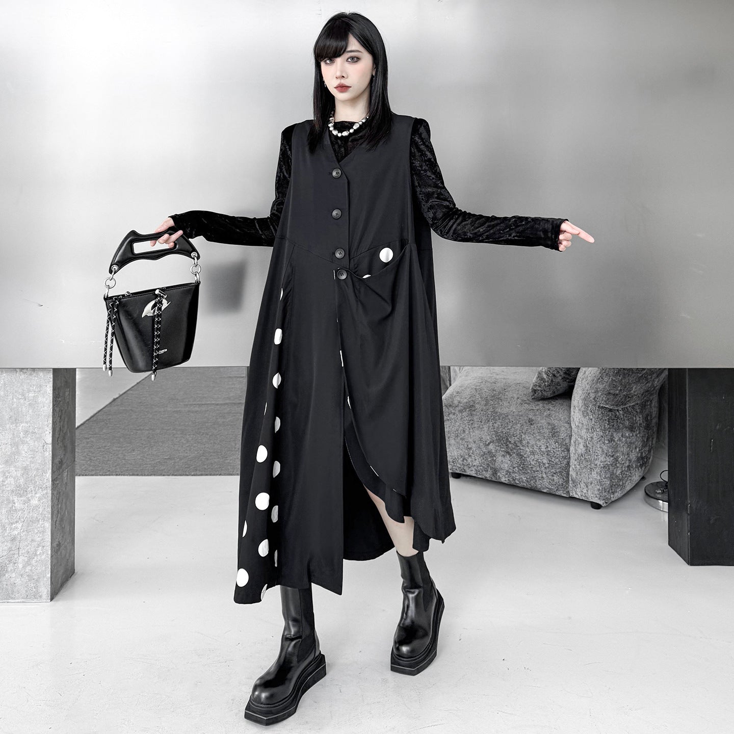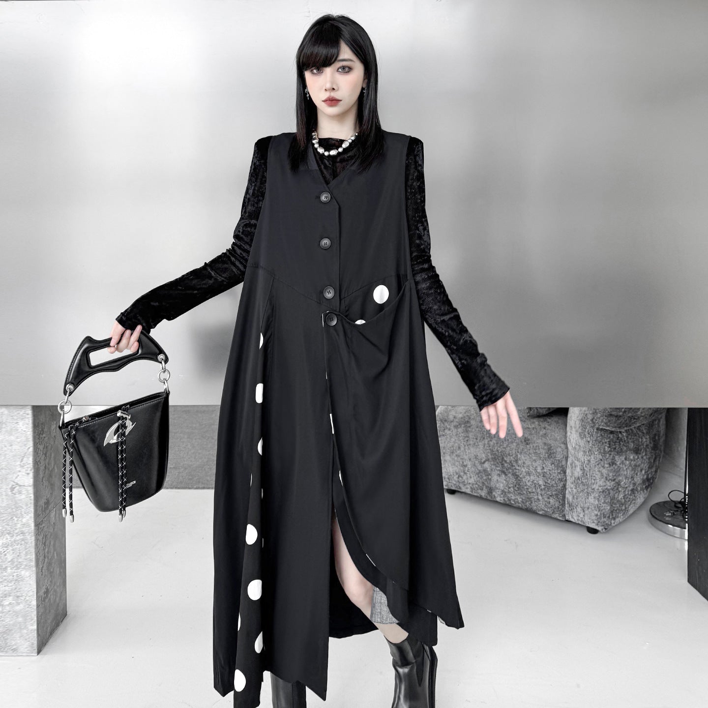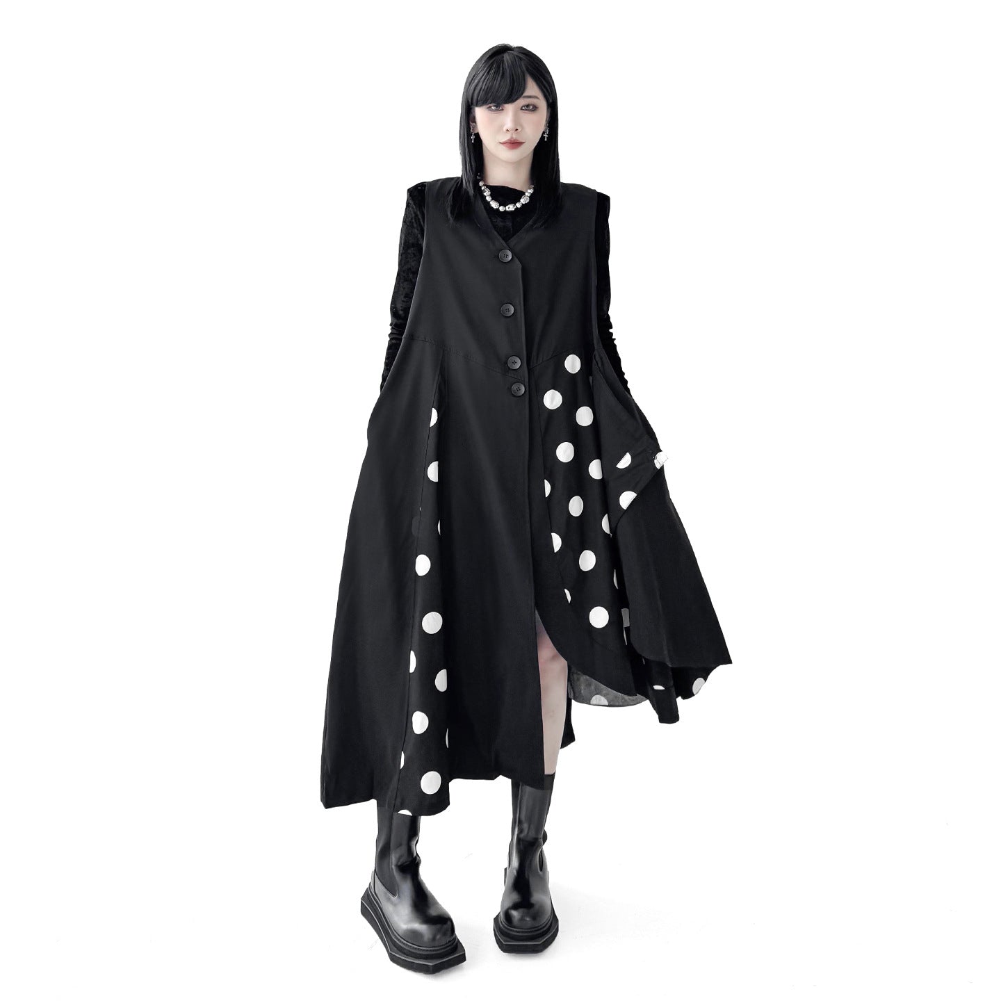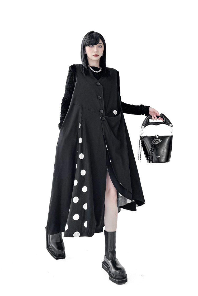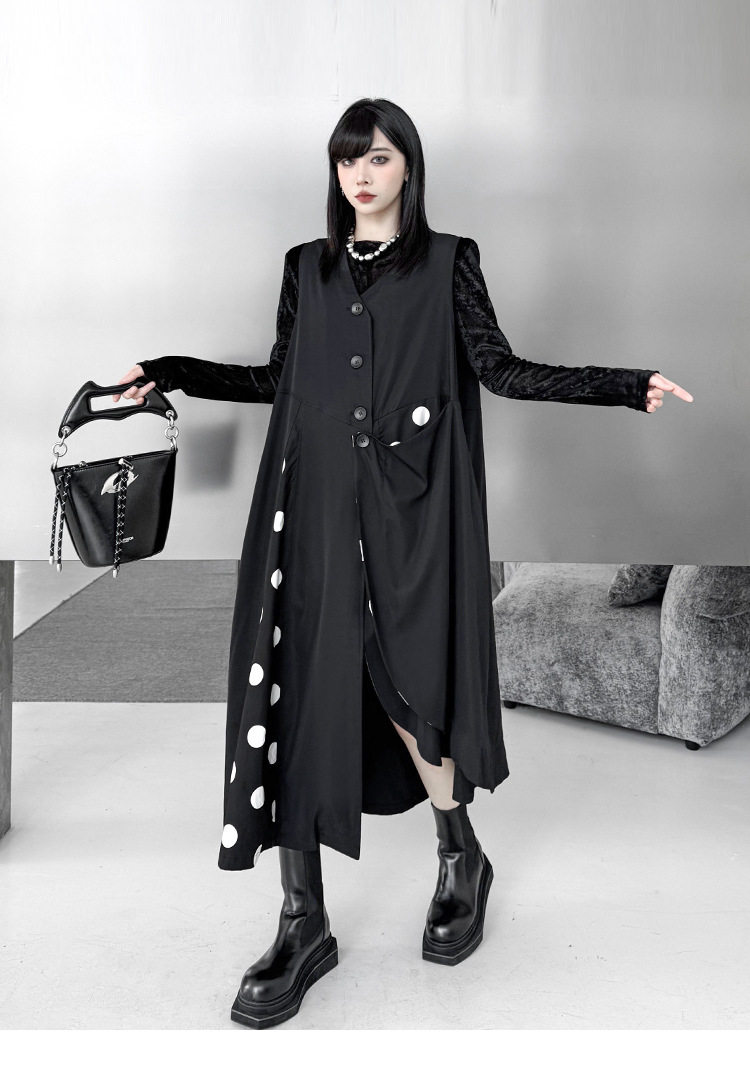 【商品名】【トップス】不規則デザイン ドット柄 ロングベスト レディース 春秋 新作 ファッション【AHシリーズ】
