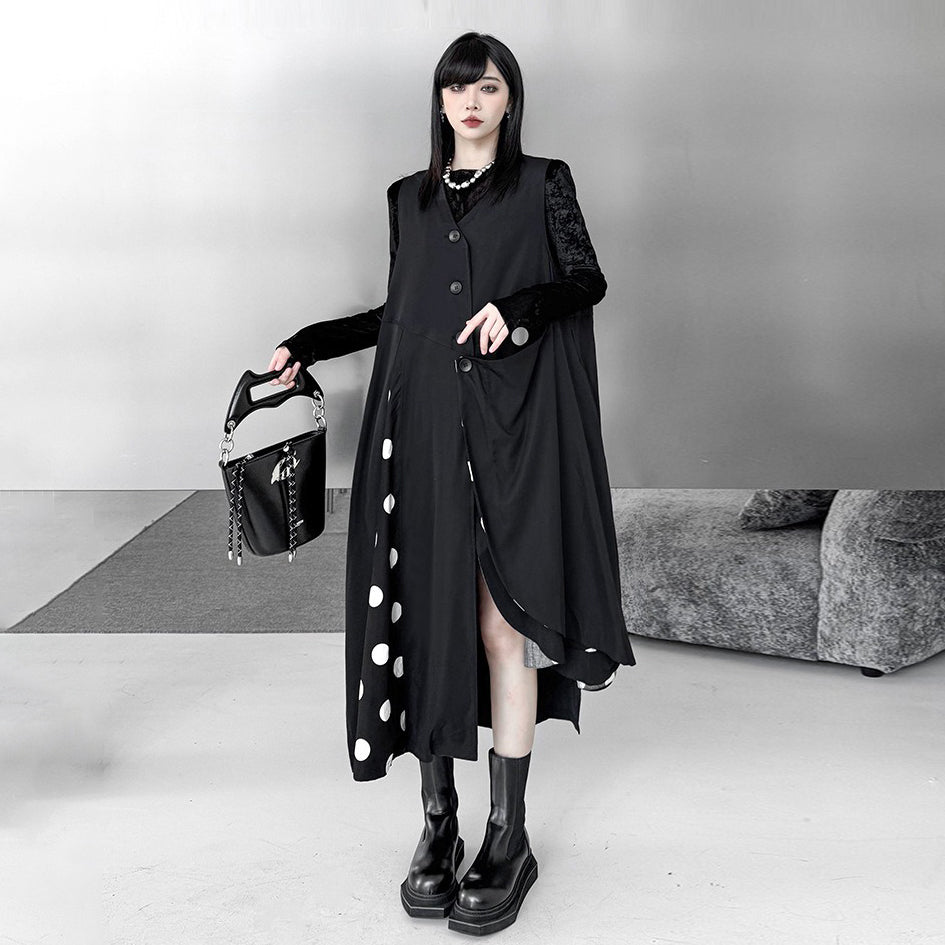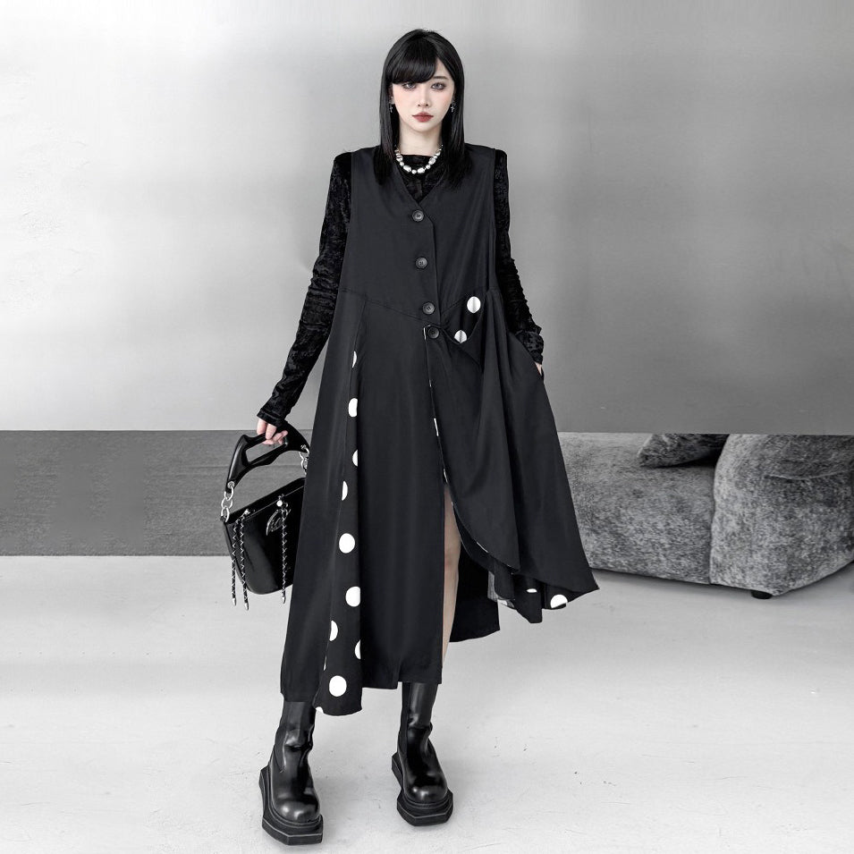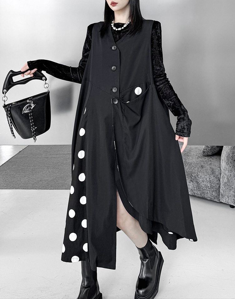 【トップス】不規則デザイン ドット柄 ロングベスト レディース 春秋 新作 ファッション【AHシリーズ】