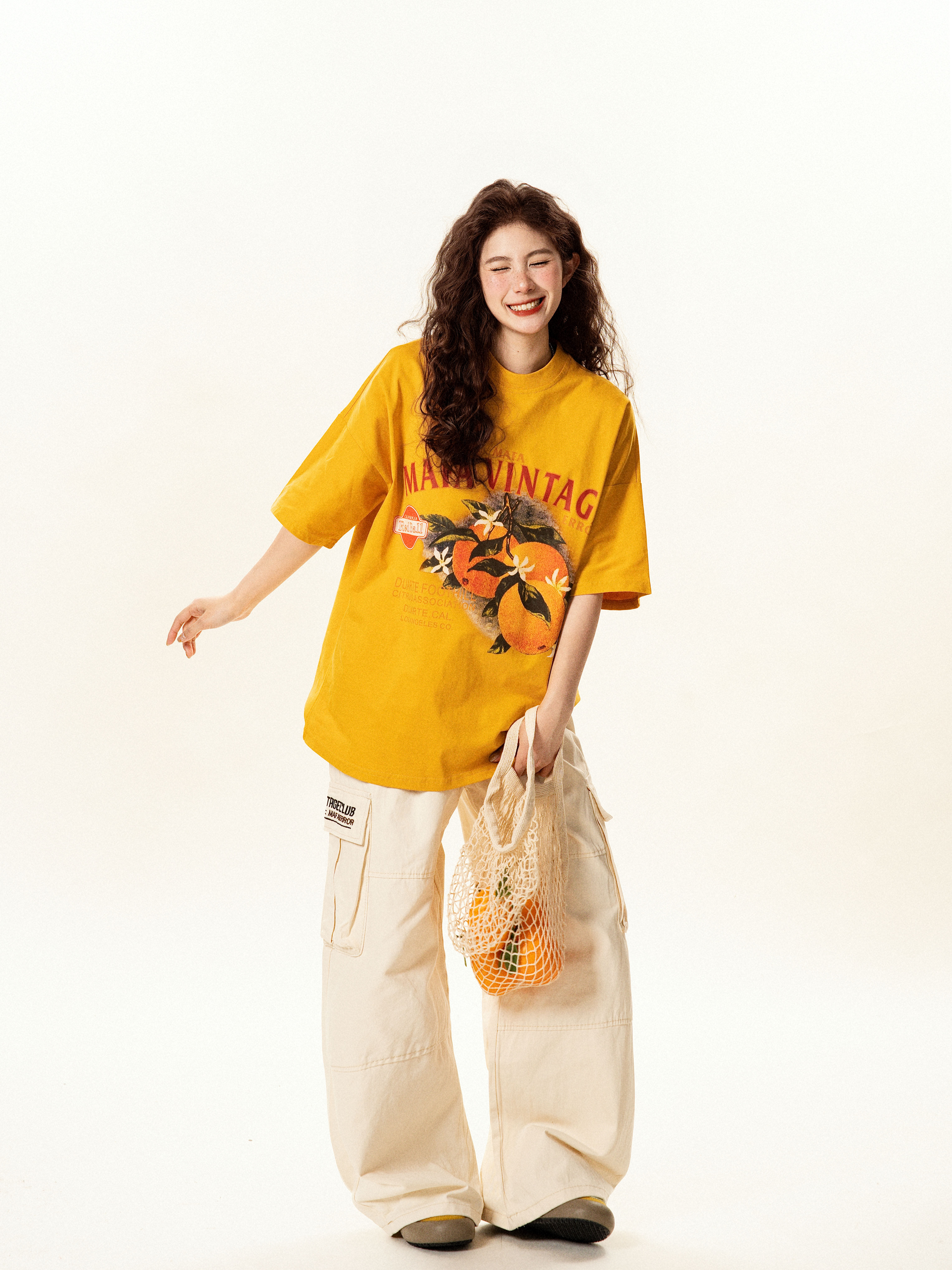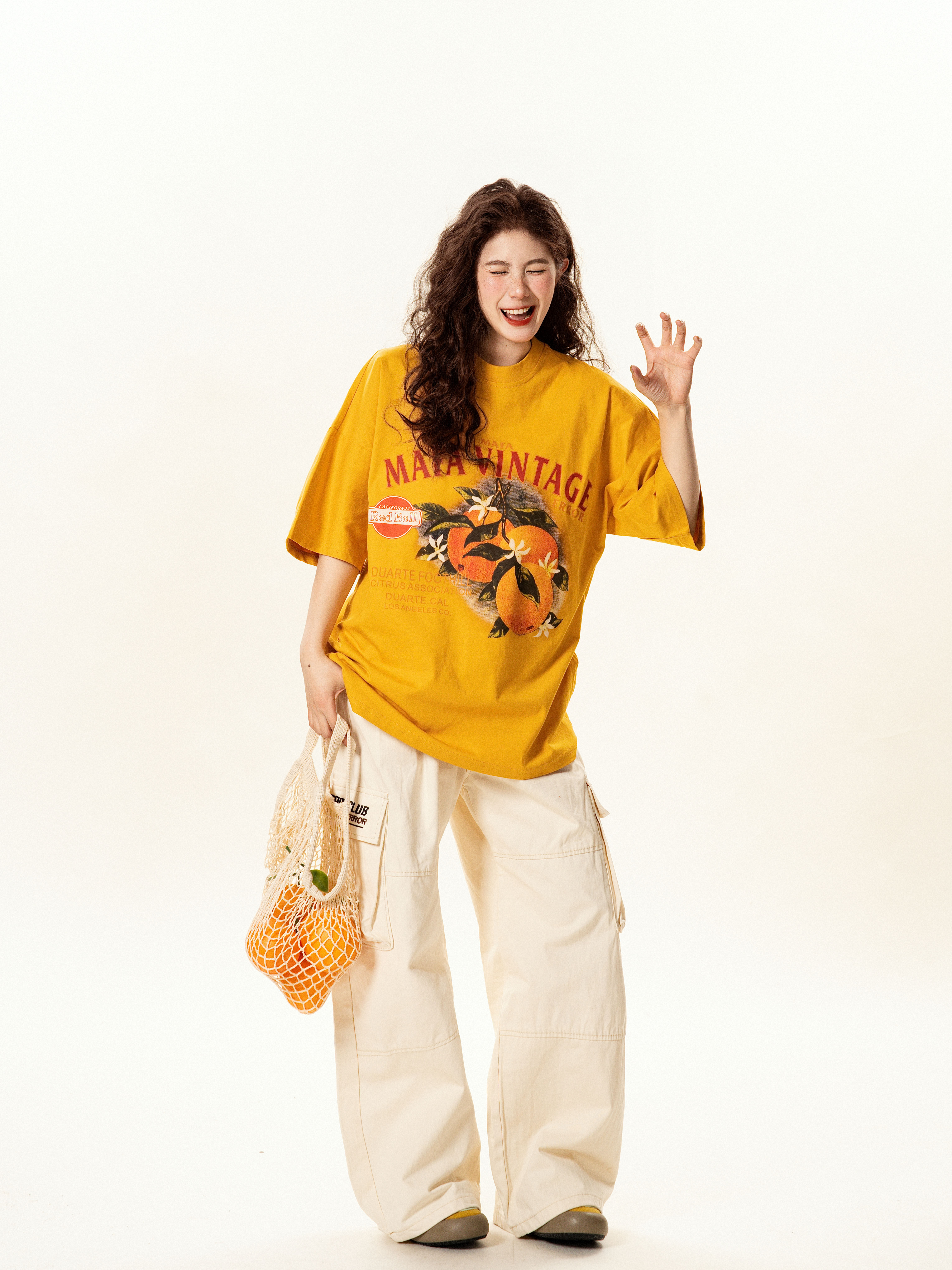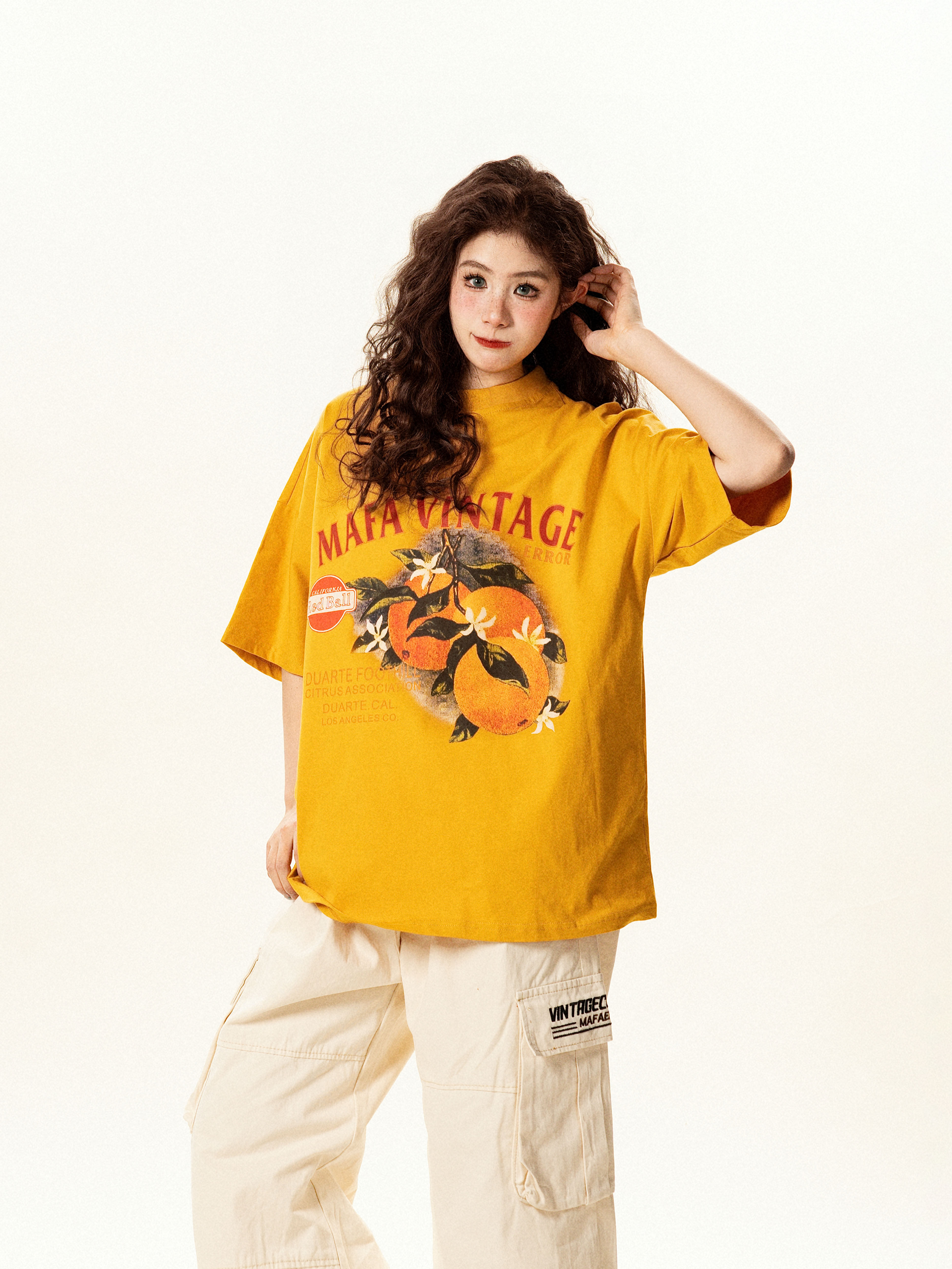 【トップス】レトロ趣味 フルーツ柄 半袖Tシャツ レディース 夏 ゆったり カジュアル【FCシリーズ】【15〜20日発送】