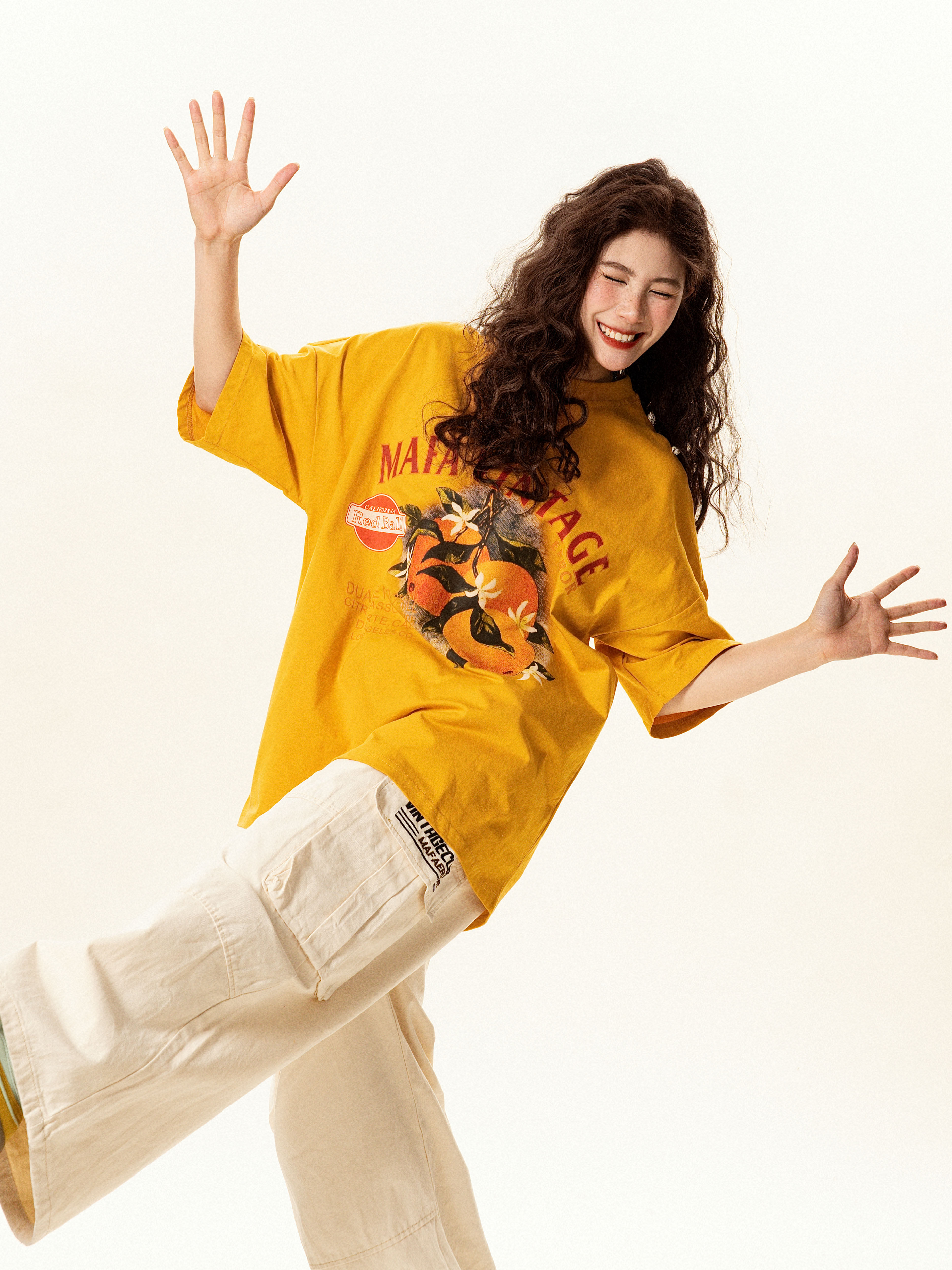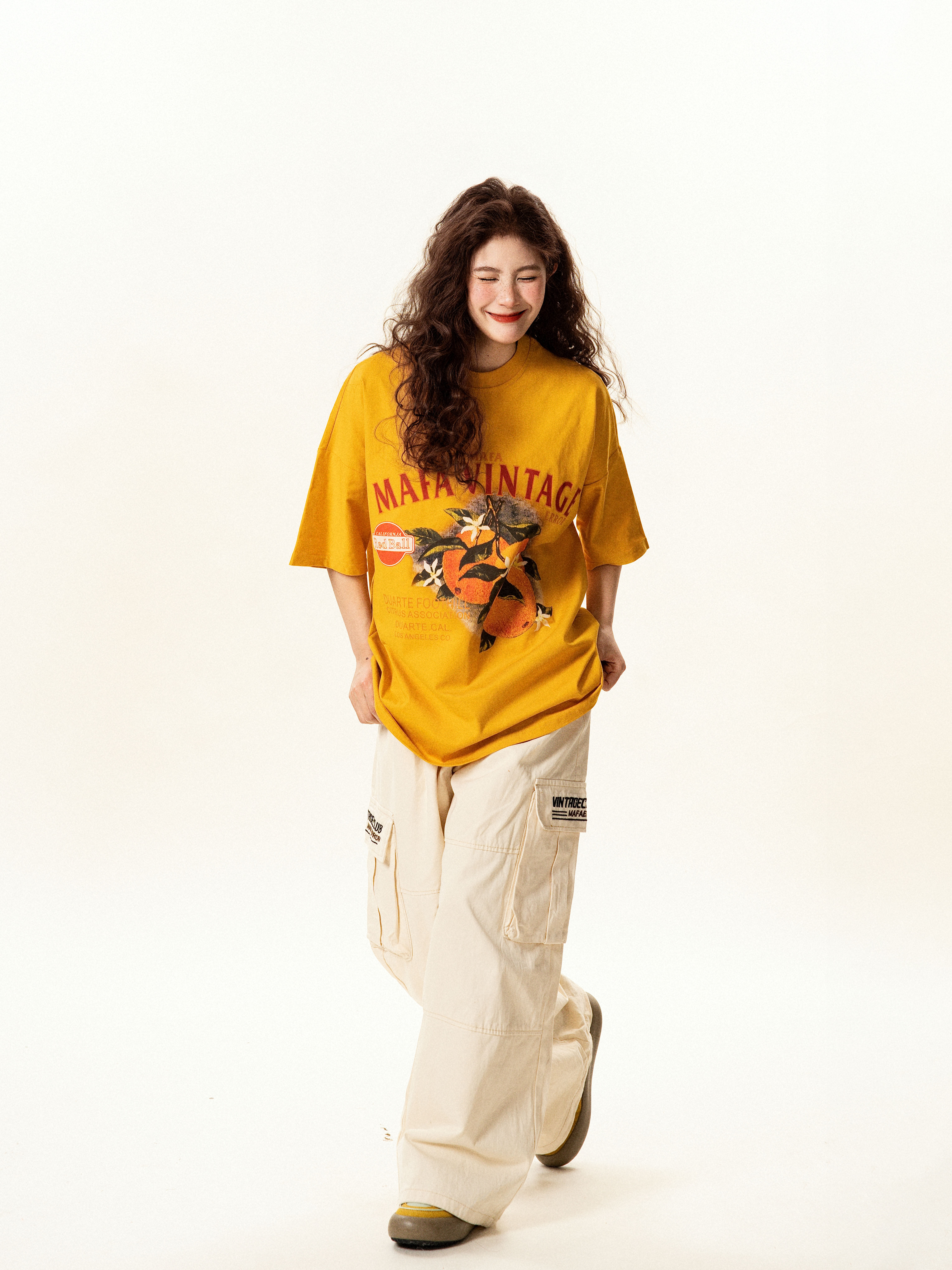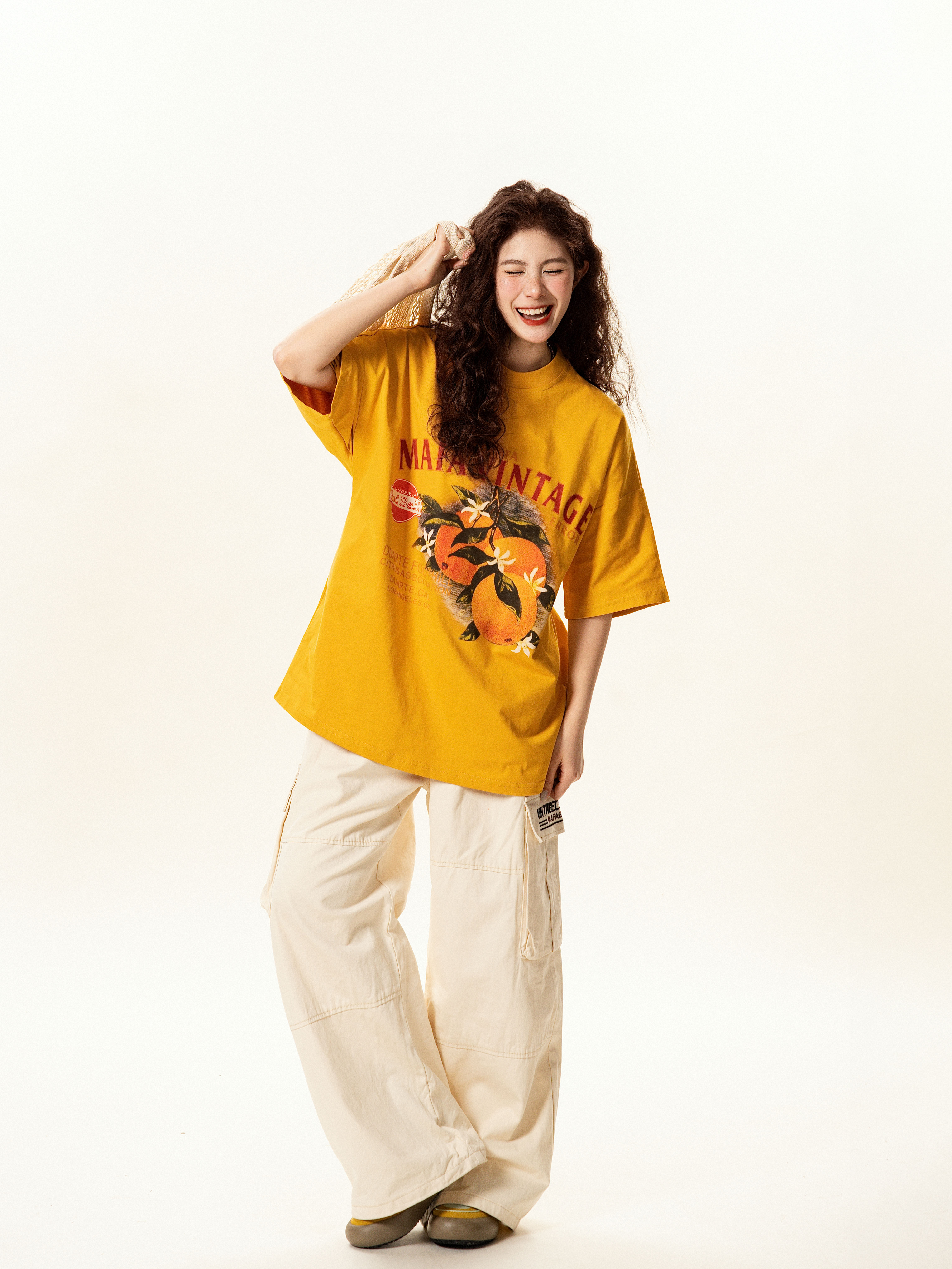 【トップス】レトロ趣味 フルーツ柄 半袖Tシャツ レディース 夏 ゆったり カジュアル【FCシリーズ】【15〜20日発送】