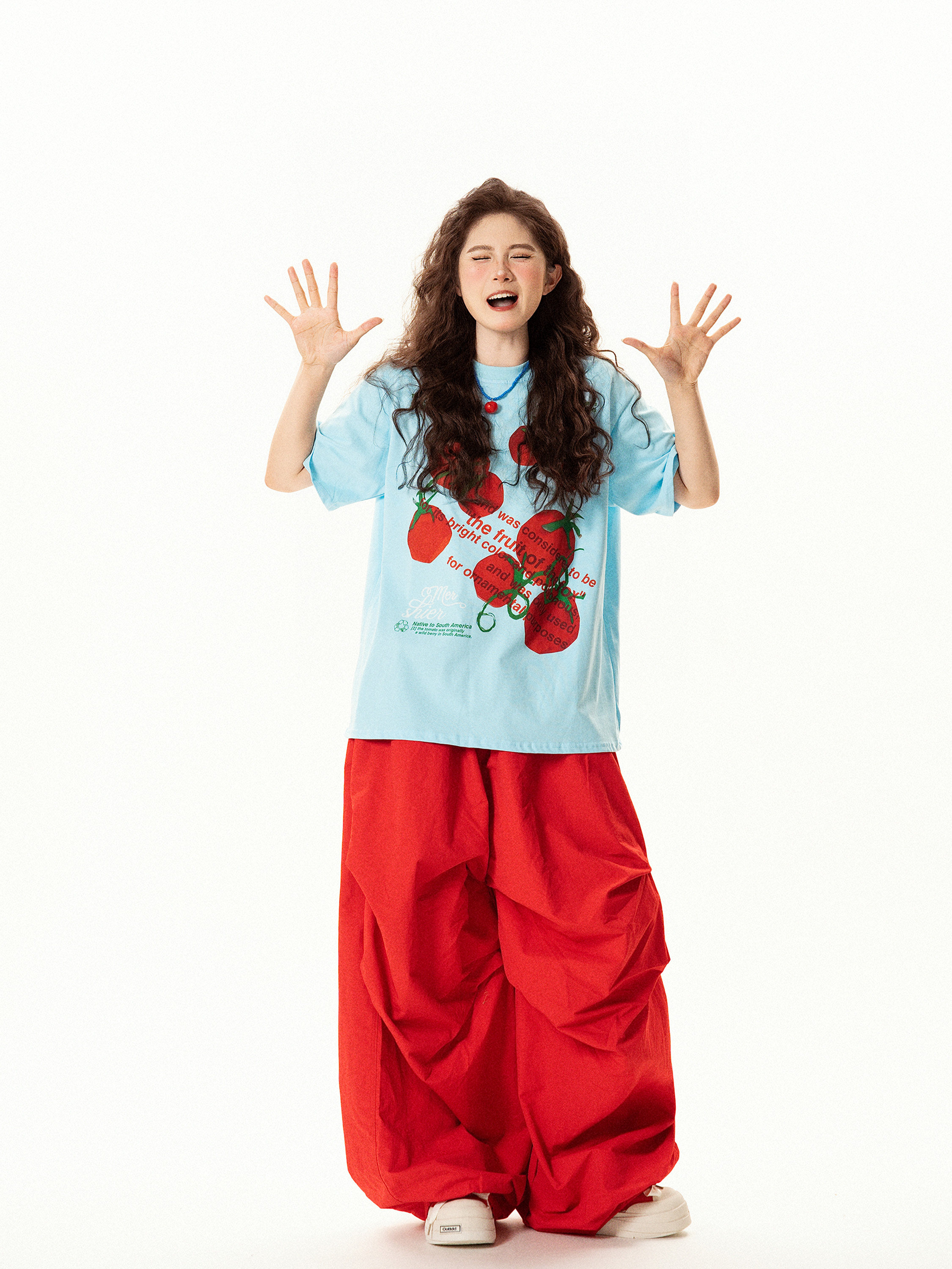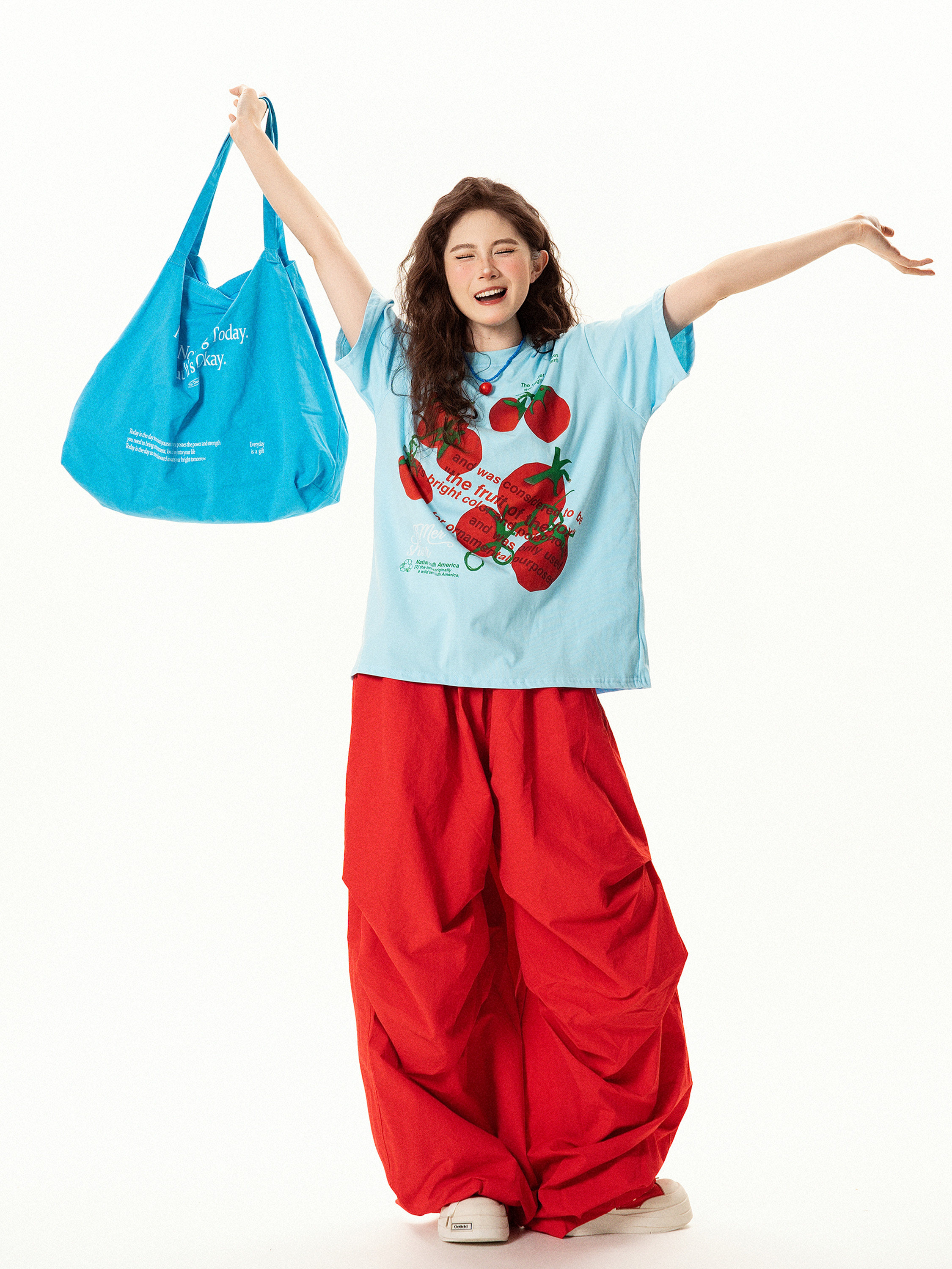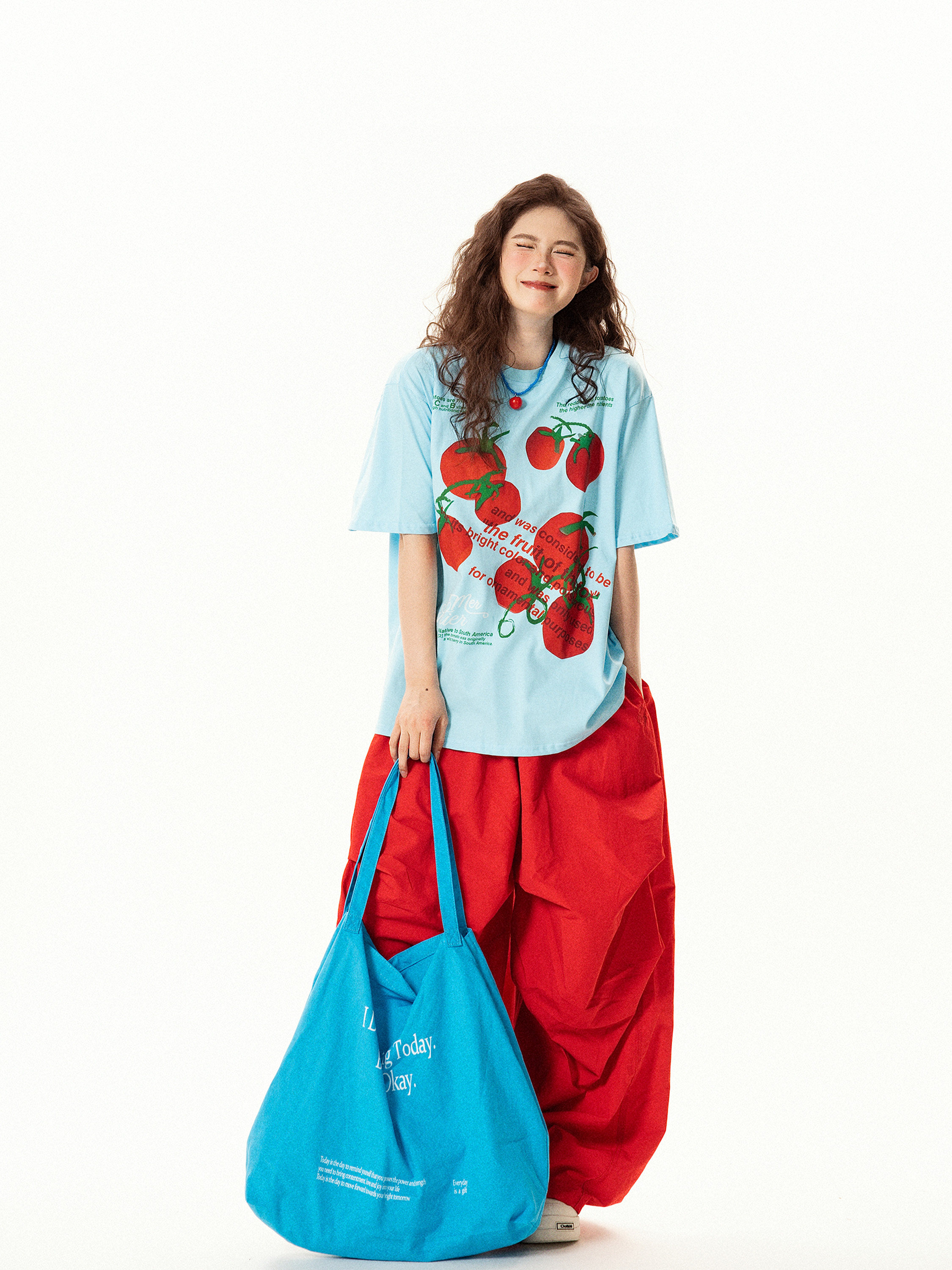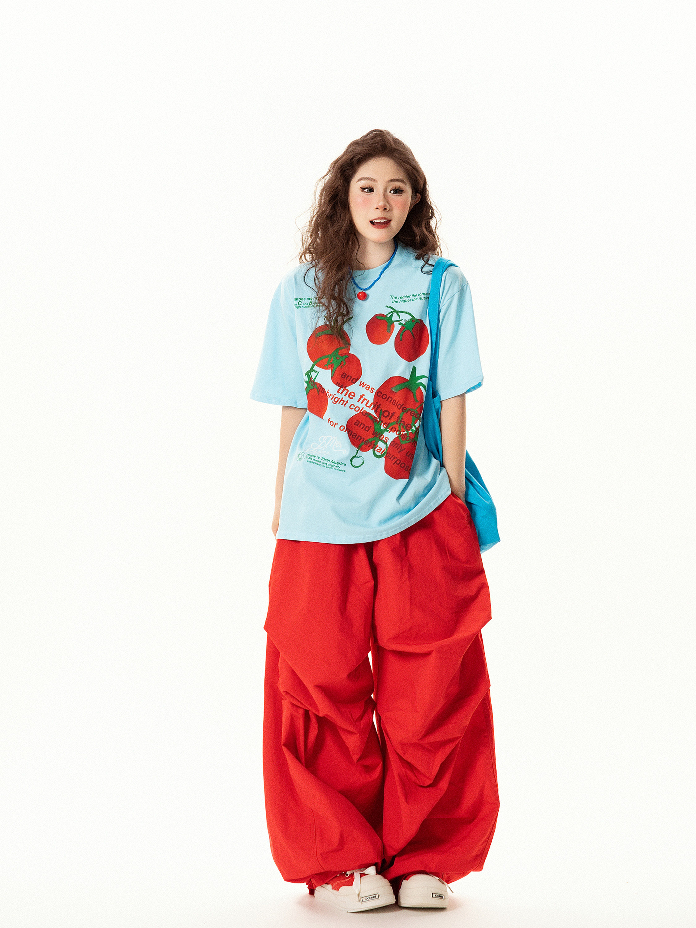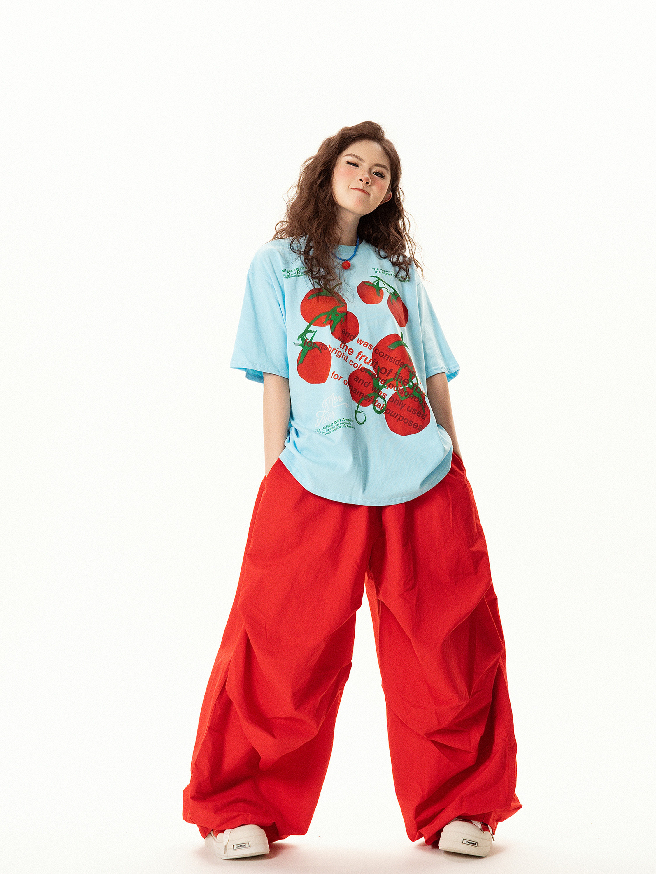 【商品名】【トップス】レトロ趣味 トマト&ロゴプリント 半袖Tシャツ レディース 夏 ゆったり カジュアル【FCシリーズ】