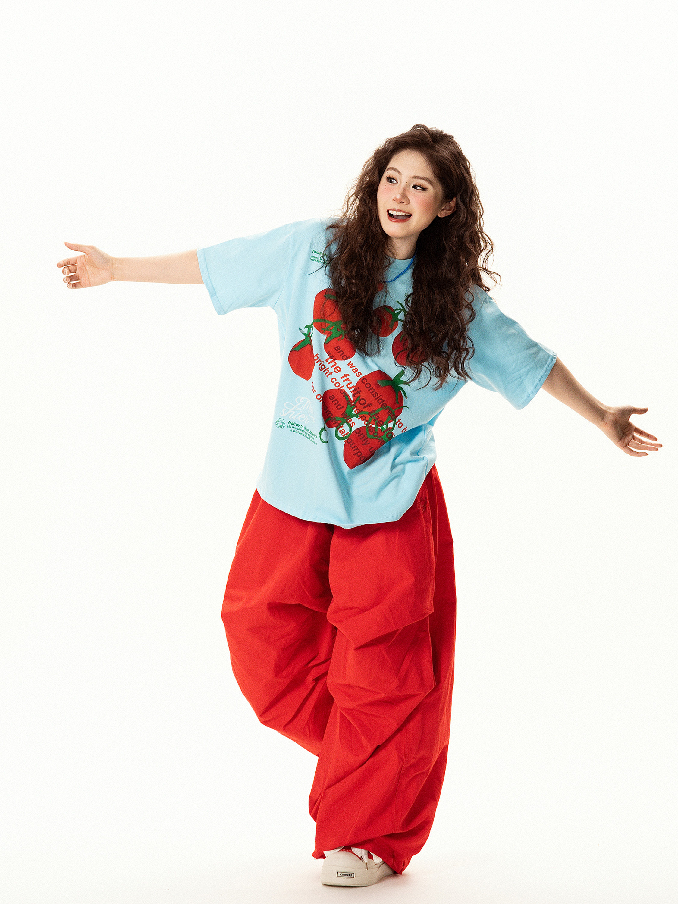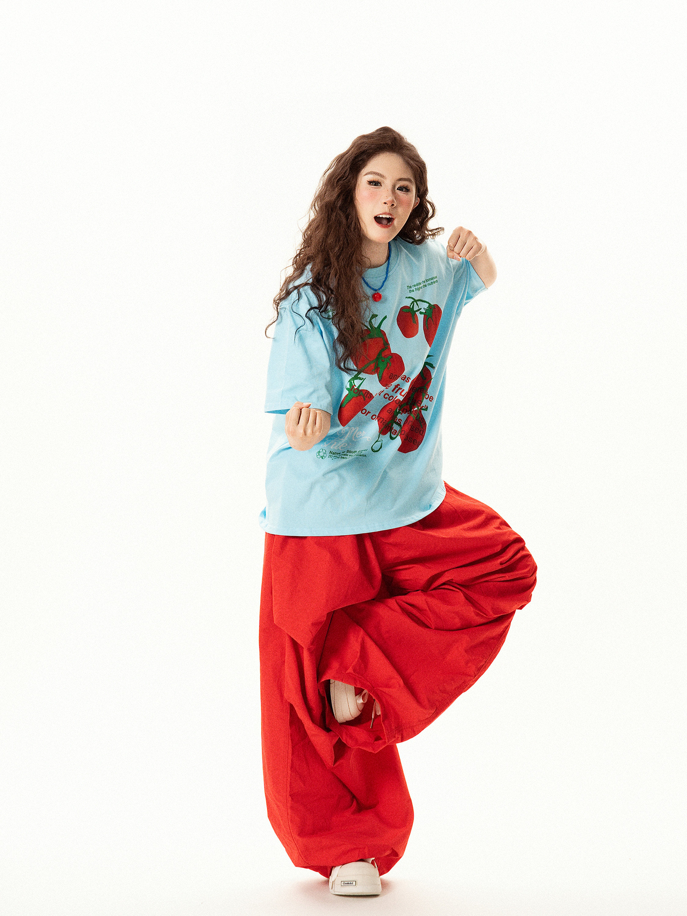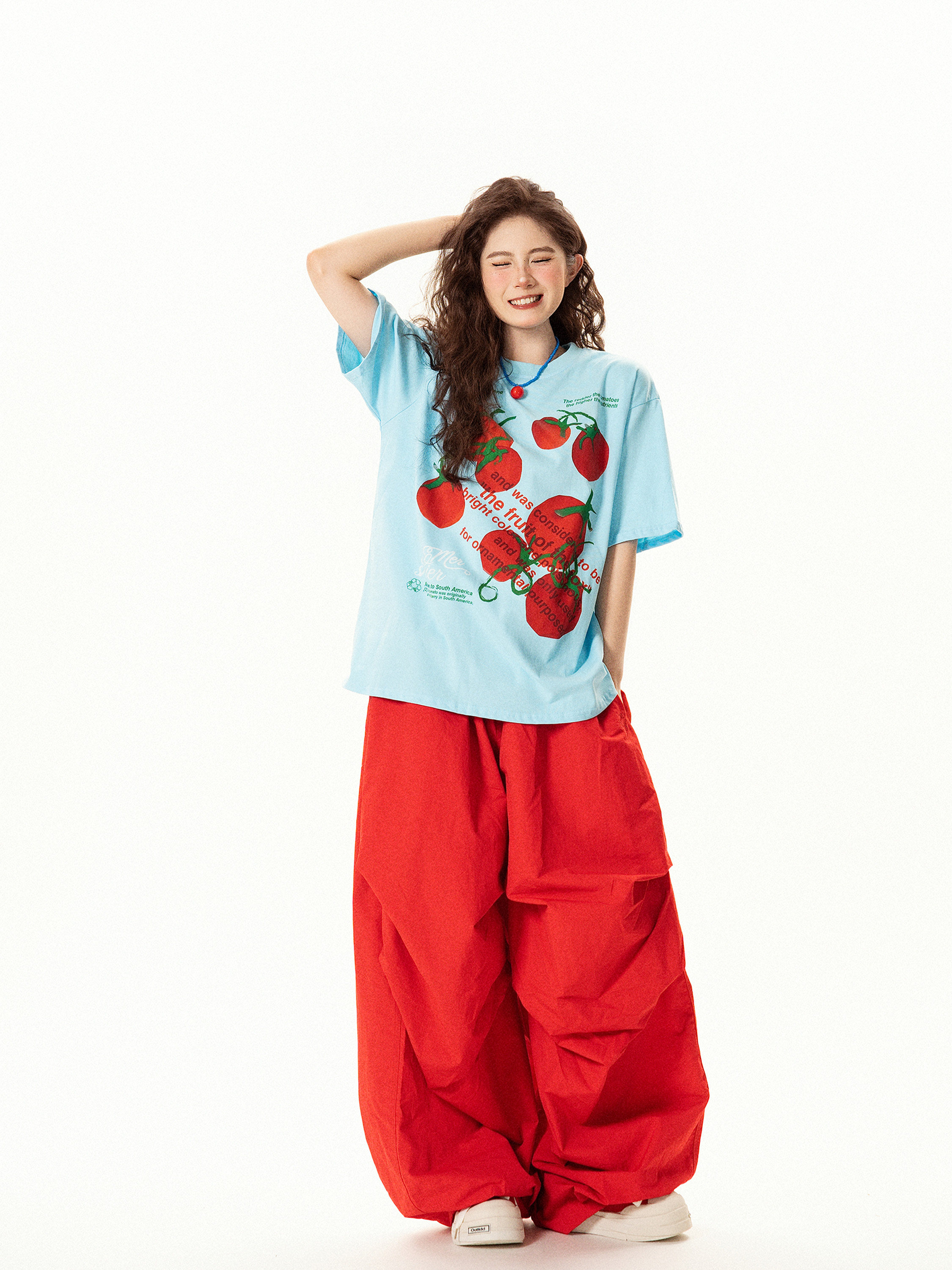 【トップス】レトロ趣味 トマト&ロゴプリント 半袖Tシャツ レディース 夏 ゆったり カジュアル【FCシリーズ】【15〜20日発送】