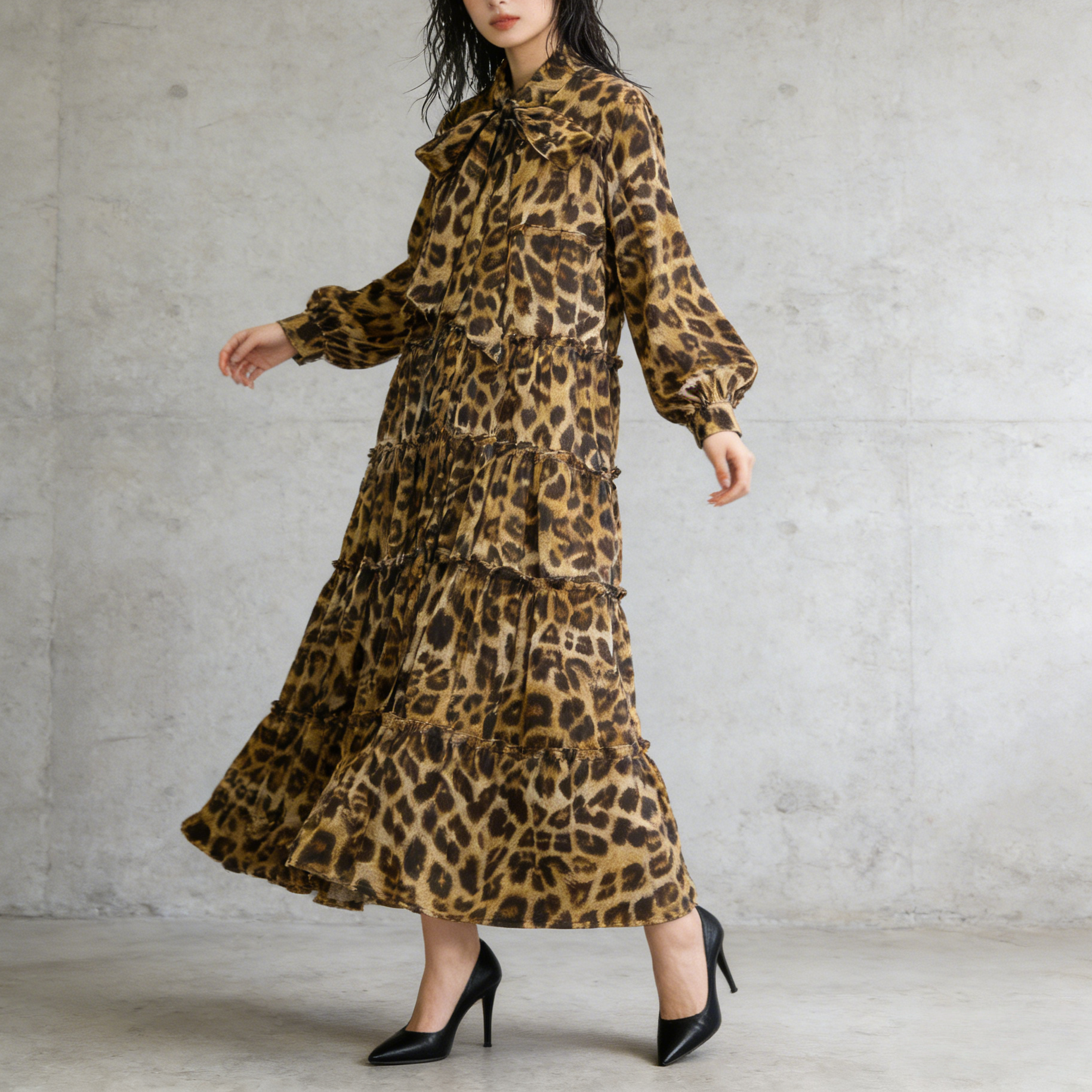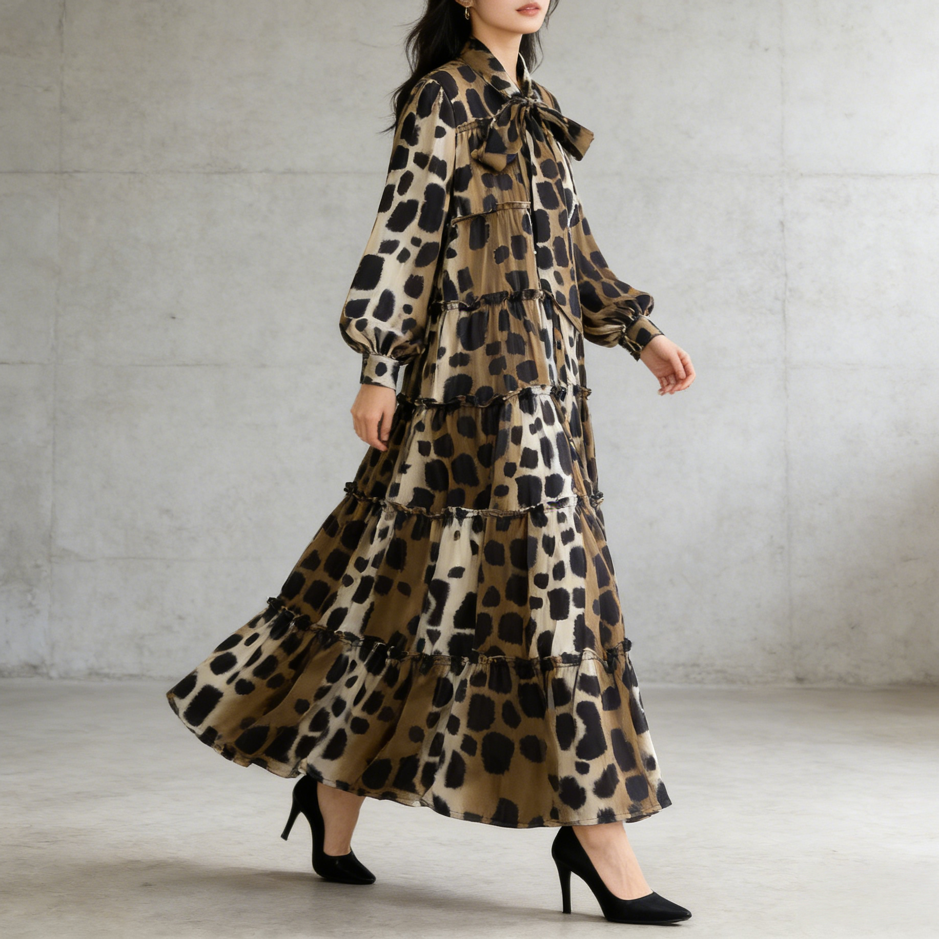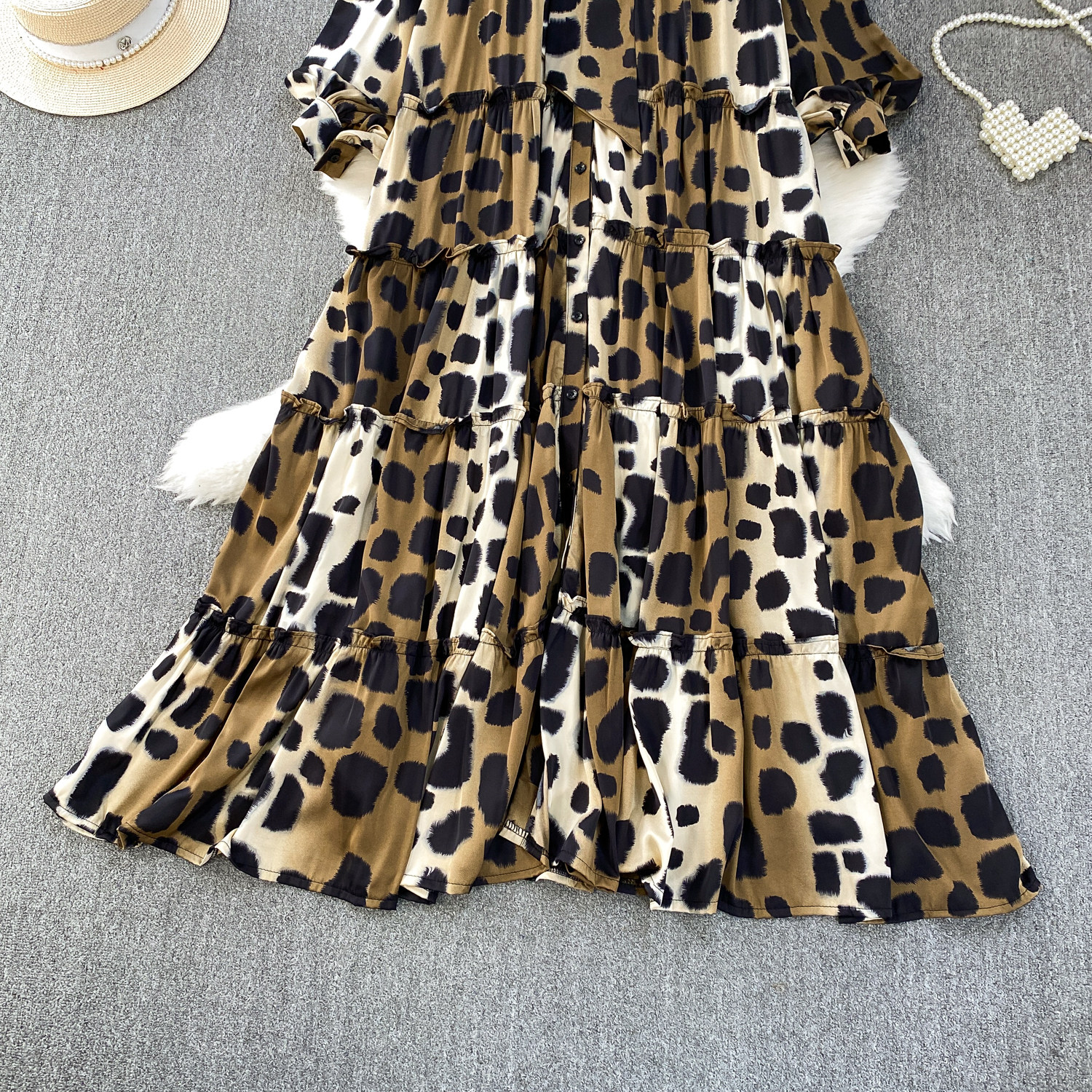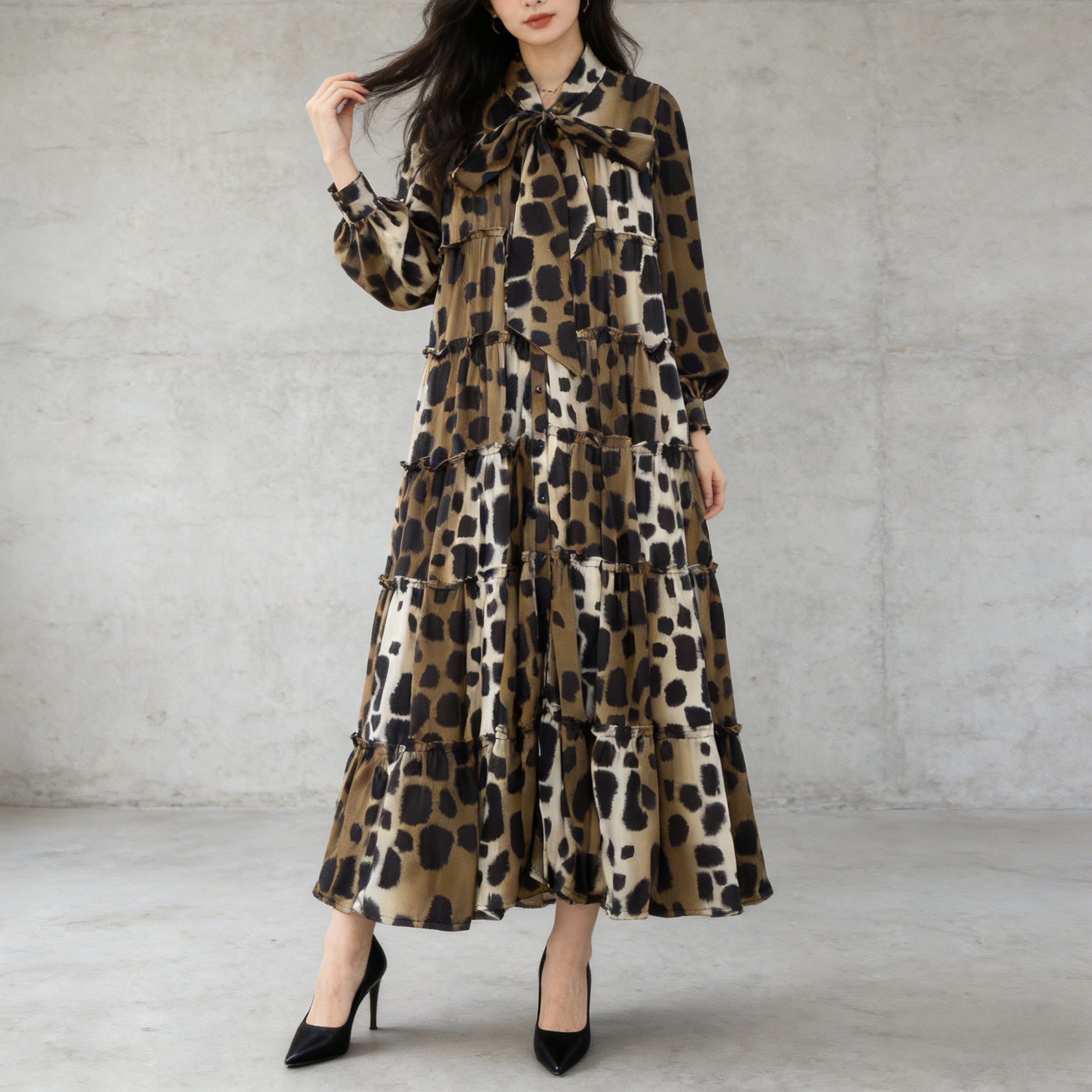 【60%OFF⭐️早い者勝ち】【ワンピース】春 秋 冬 フリル縁 アシンメトリーパッチワーク 長袖 ワンピース 【SHシリーズ】