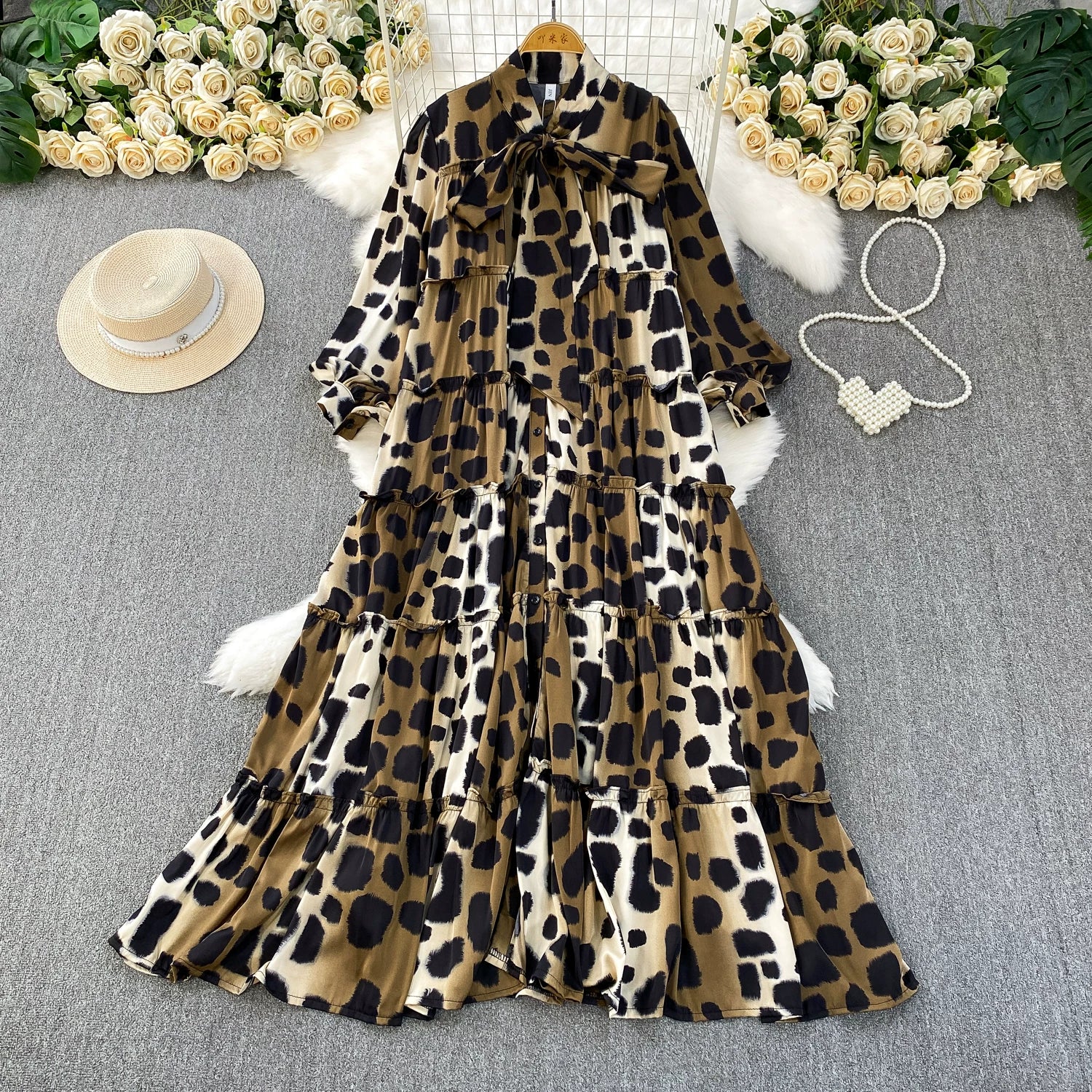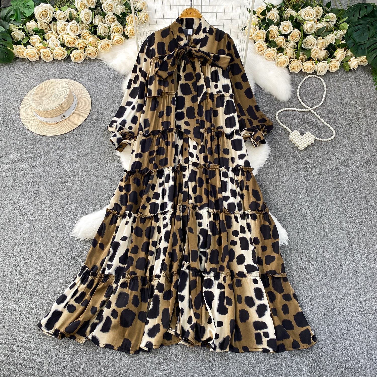 【60%OFF⭐️先行スタート!】【ワンピース】春 秋 冬 大きいサイズ プリント レトロ 長袖 ワンピース【SHシリーズ】
