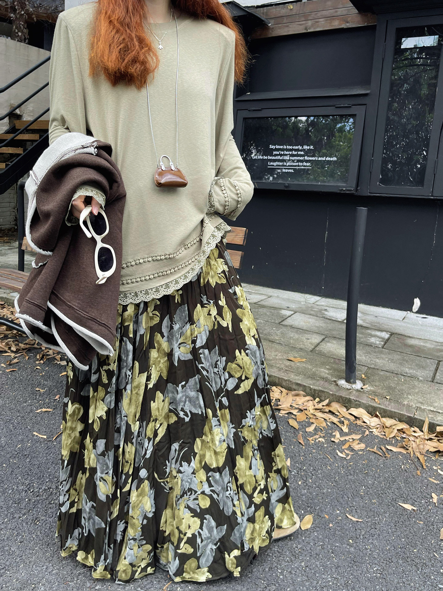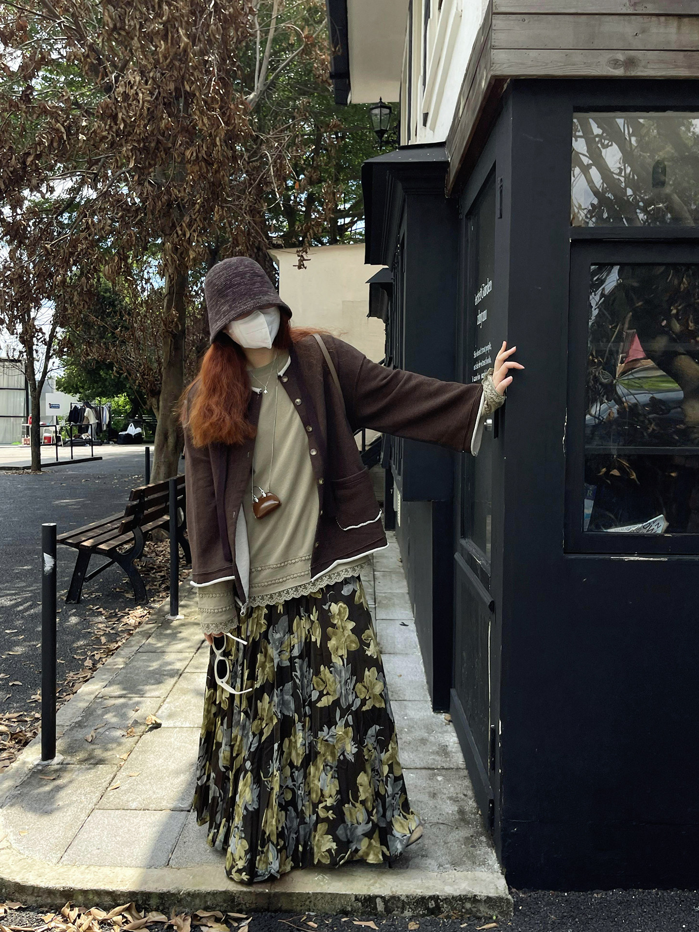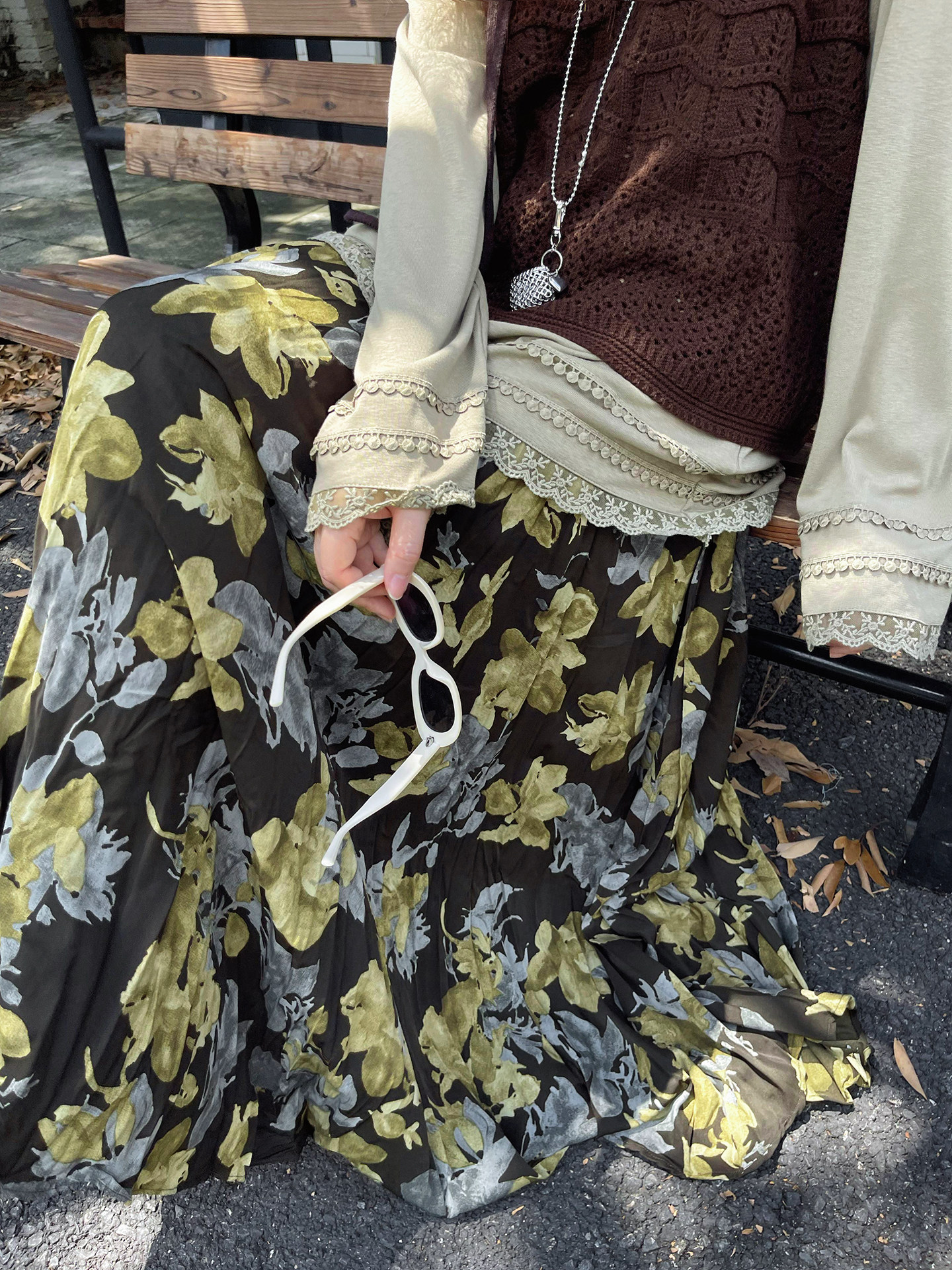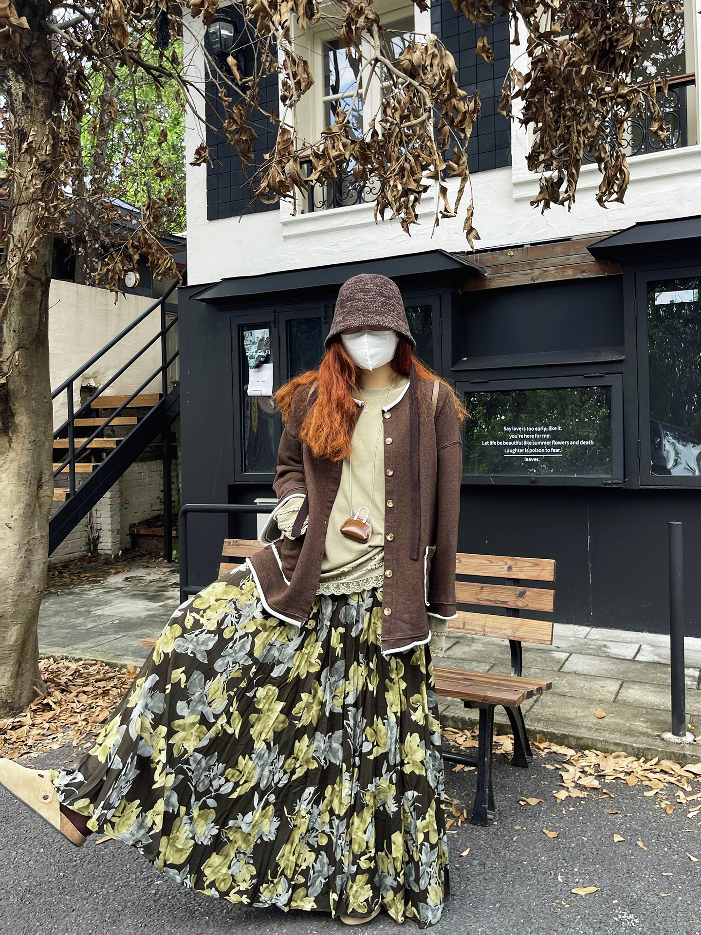 【ボトムス】ブラック花柄 ロングスカート 秋冬 ハイウエスト 体型カバー 小众デザイン【SHシリーズ】