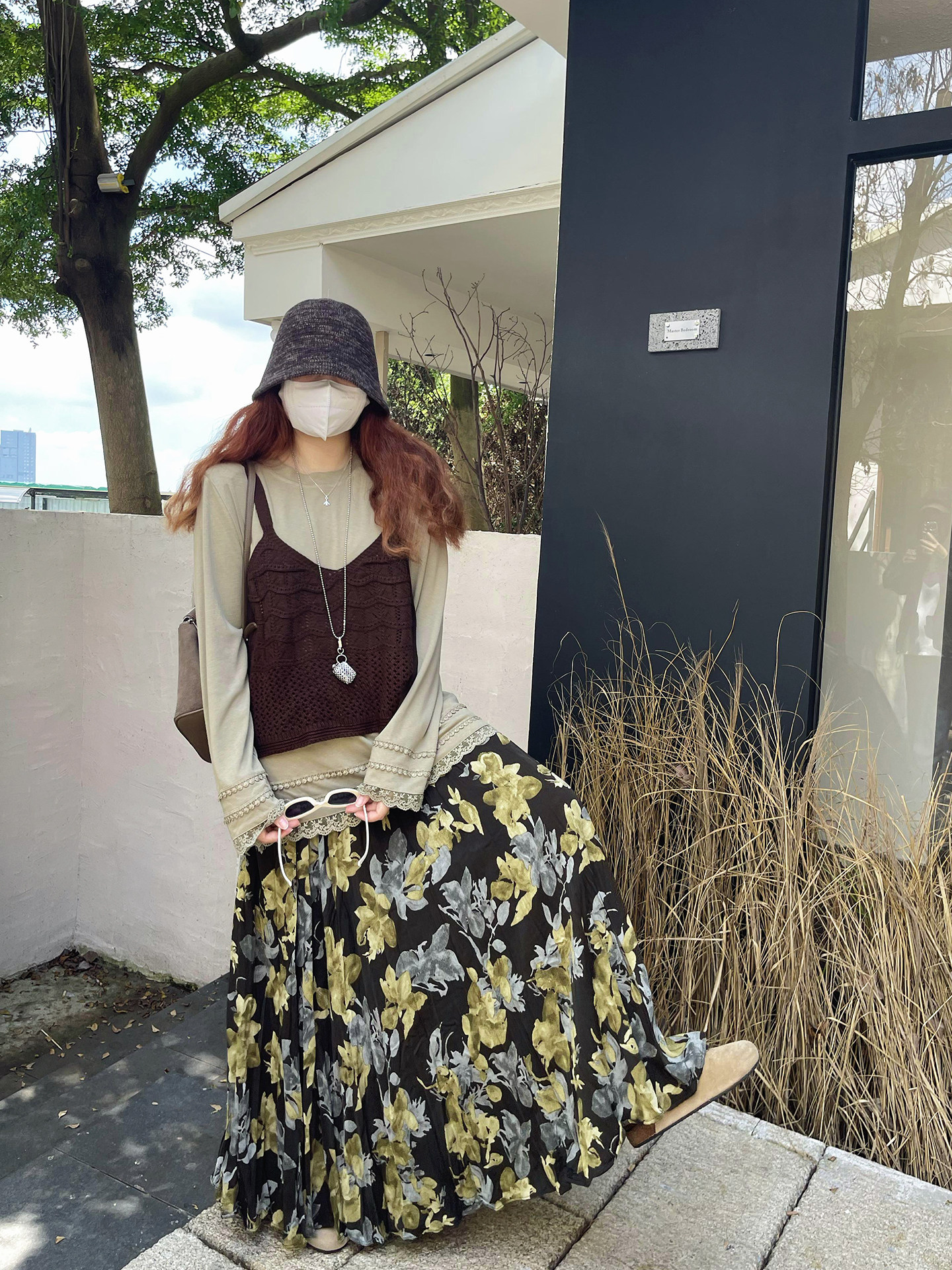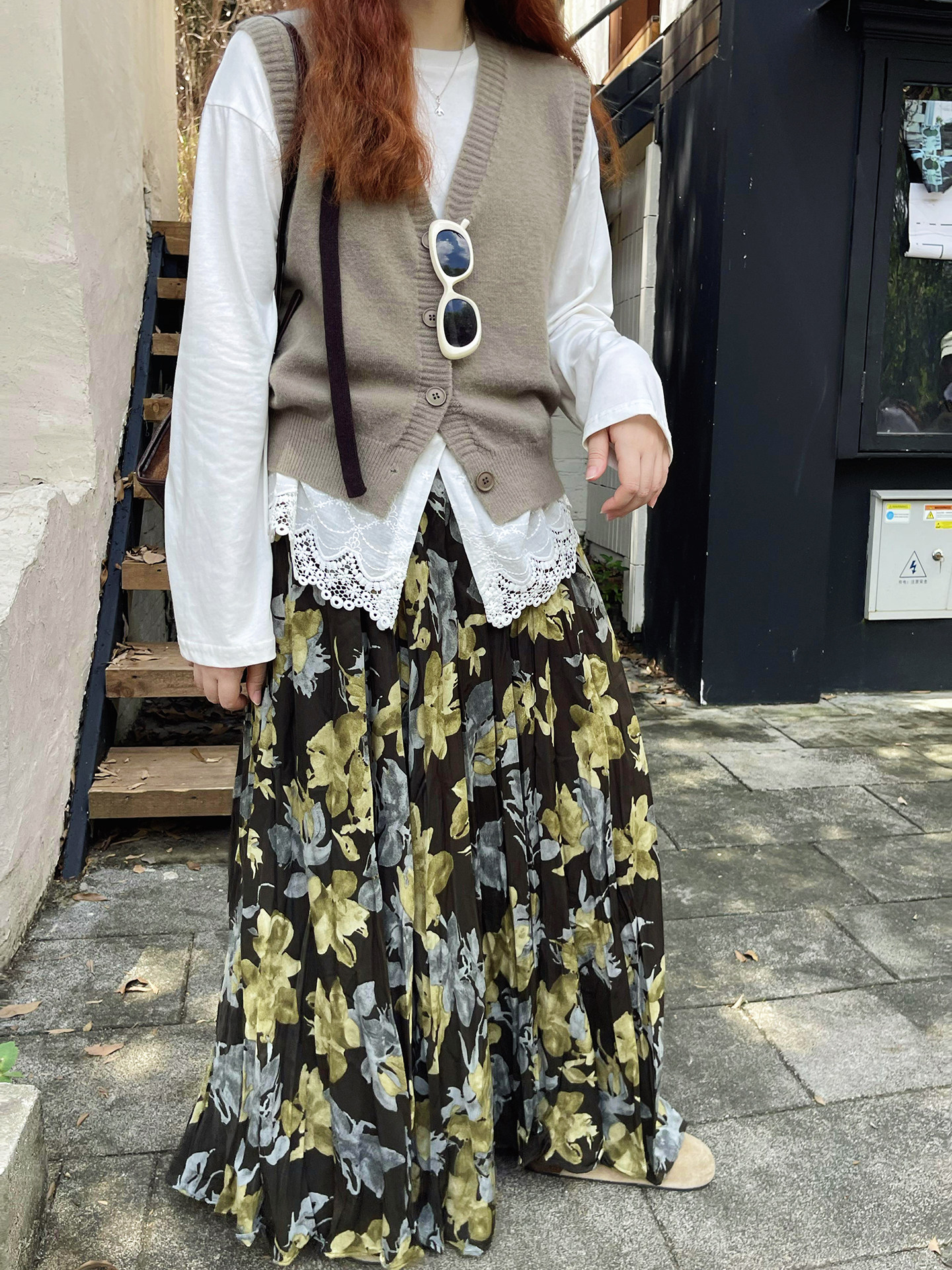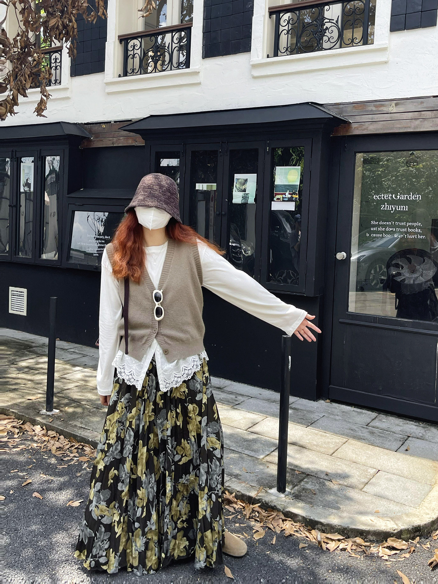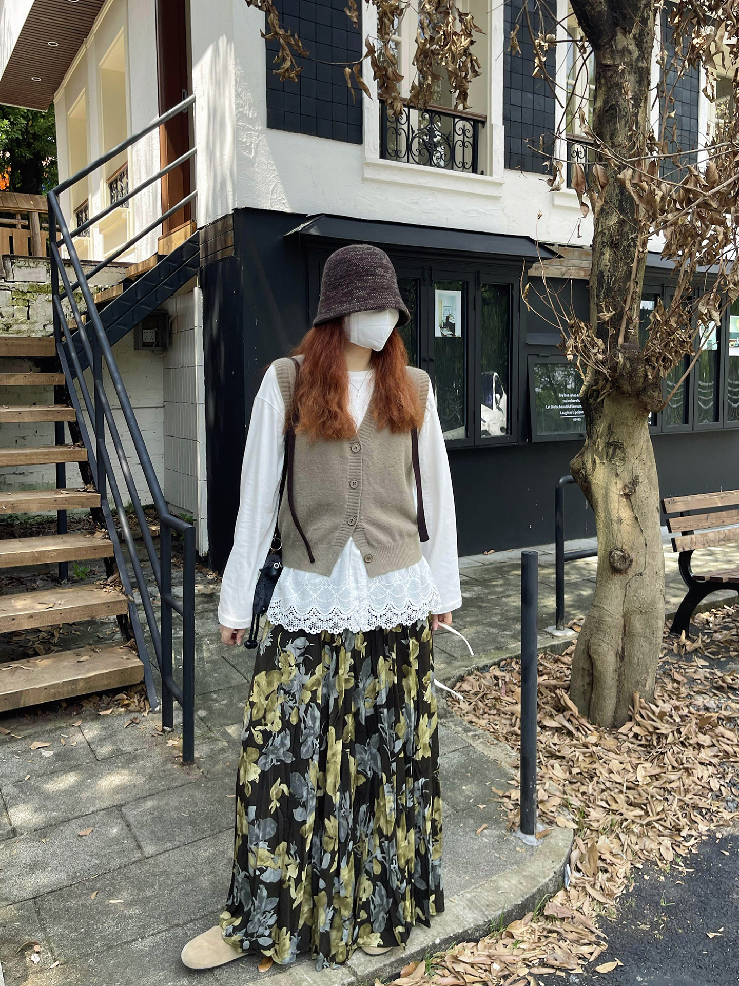 【ボトムス】ブラック花柄 ロングスカート 秋冬 ハイウエスト 体型カバー 小众デザイン【SHシリーズ】