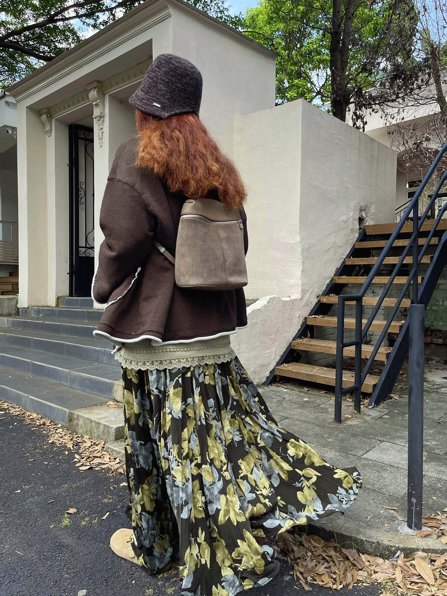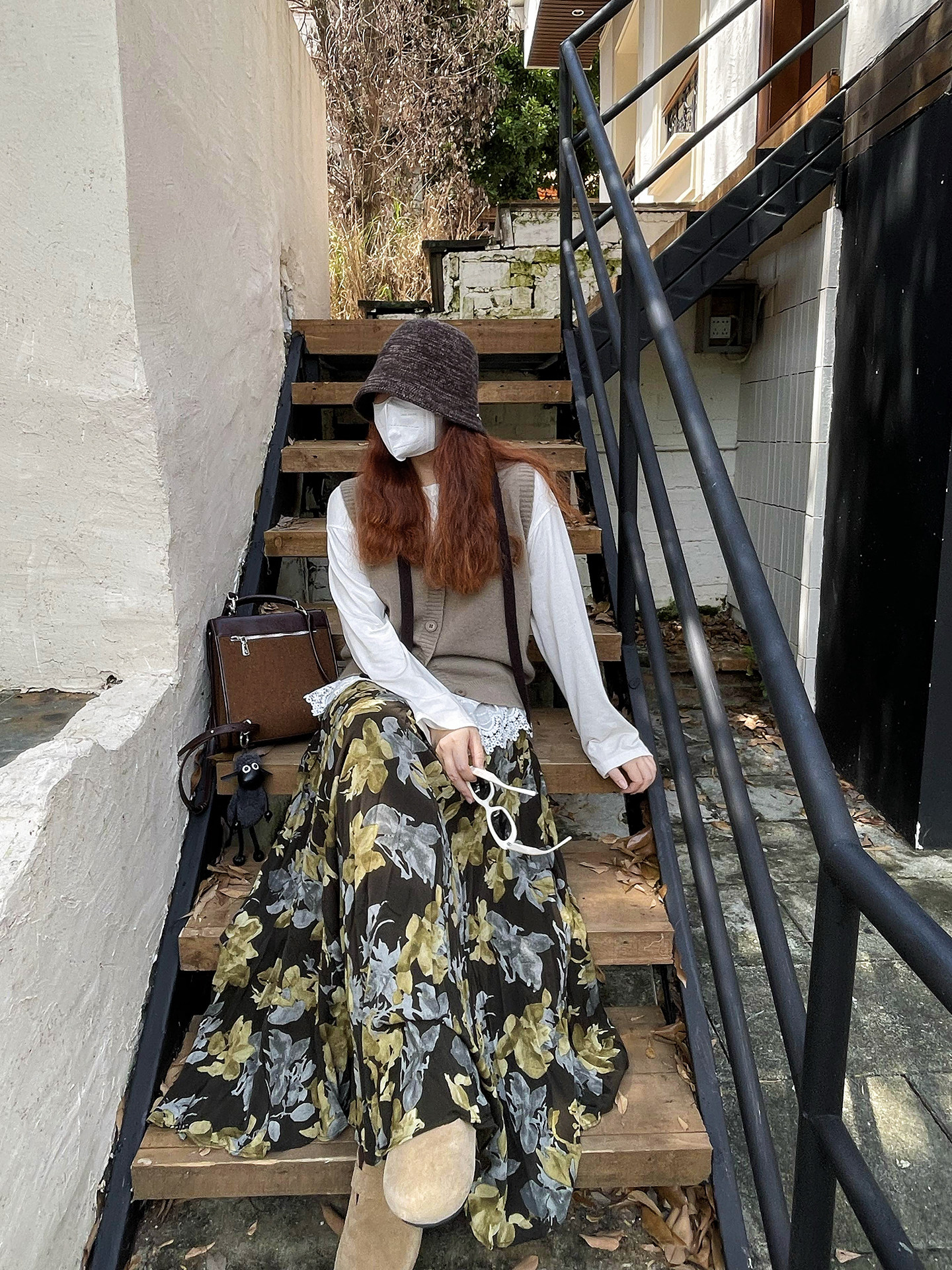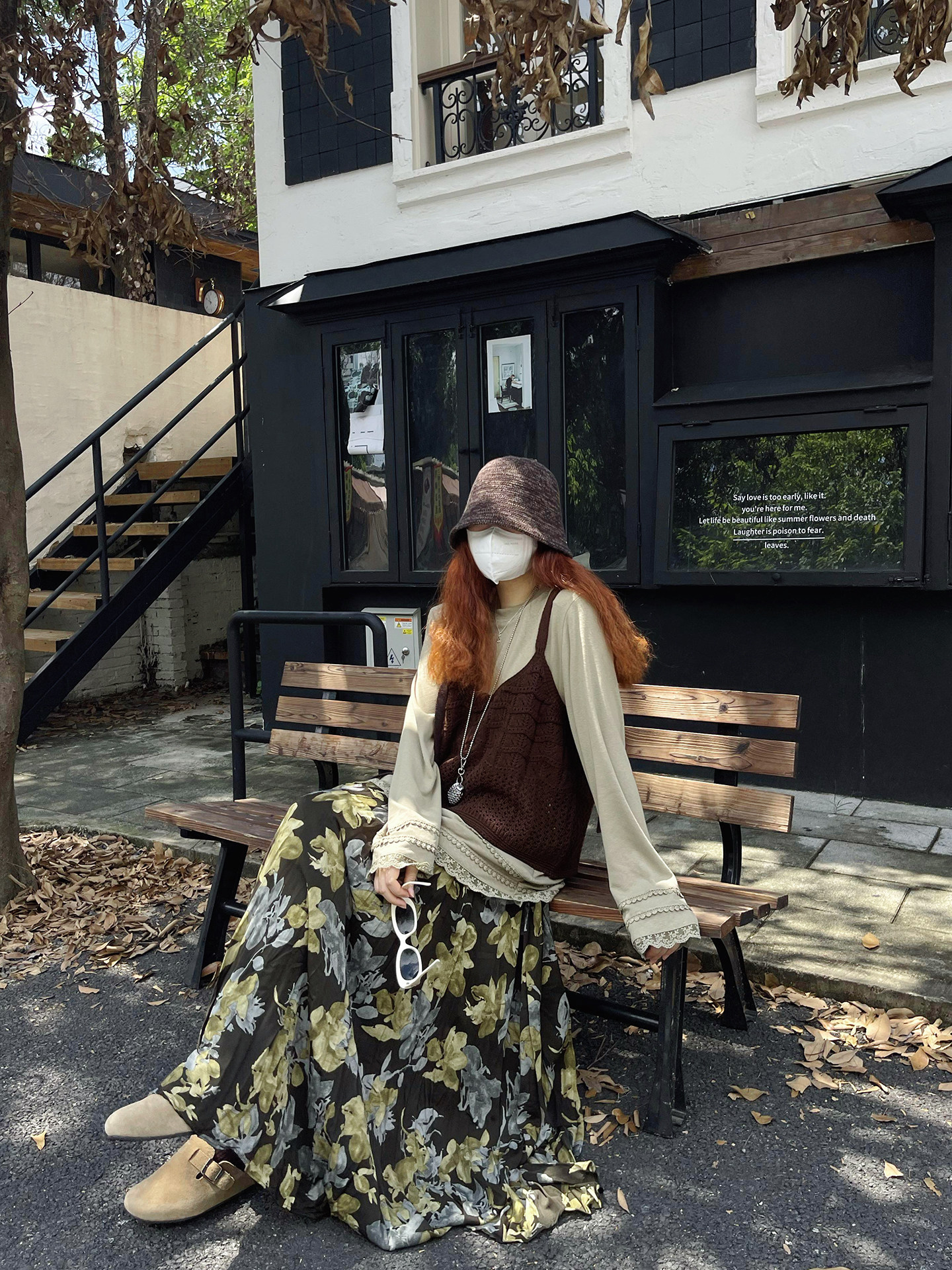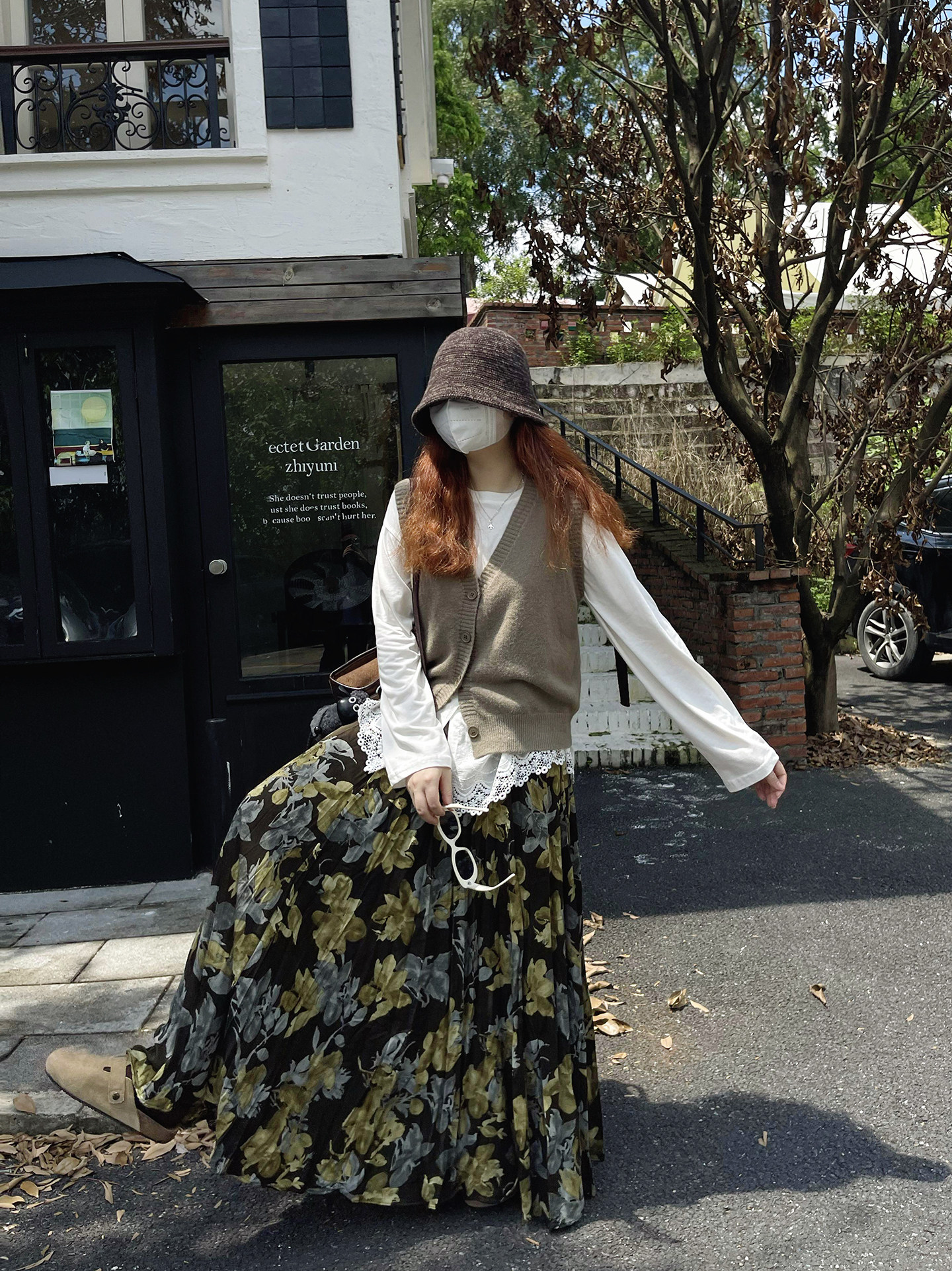【ボトムス】ブラック花柄 ロングスカート 秋冬 ハイウエスト 体型カバー 小众デザイン【SHシリーズ】